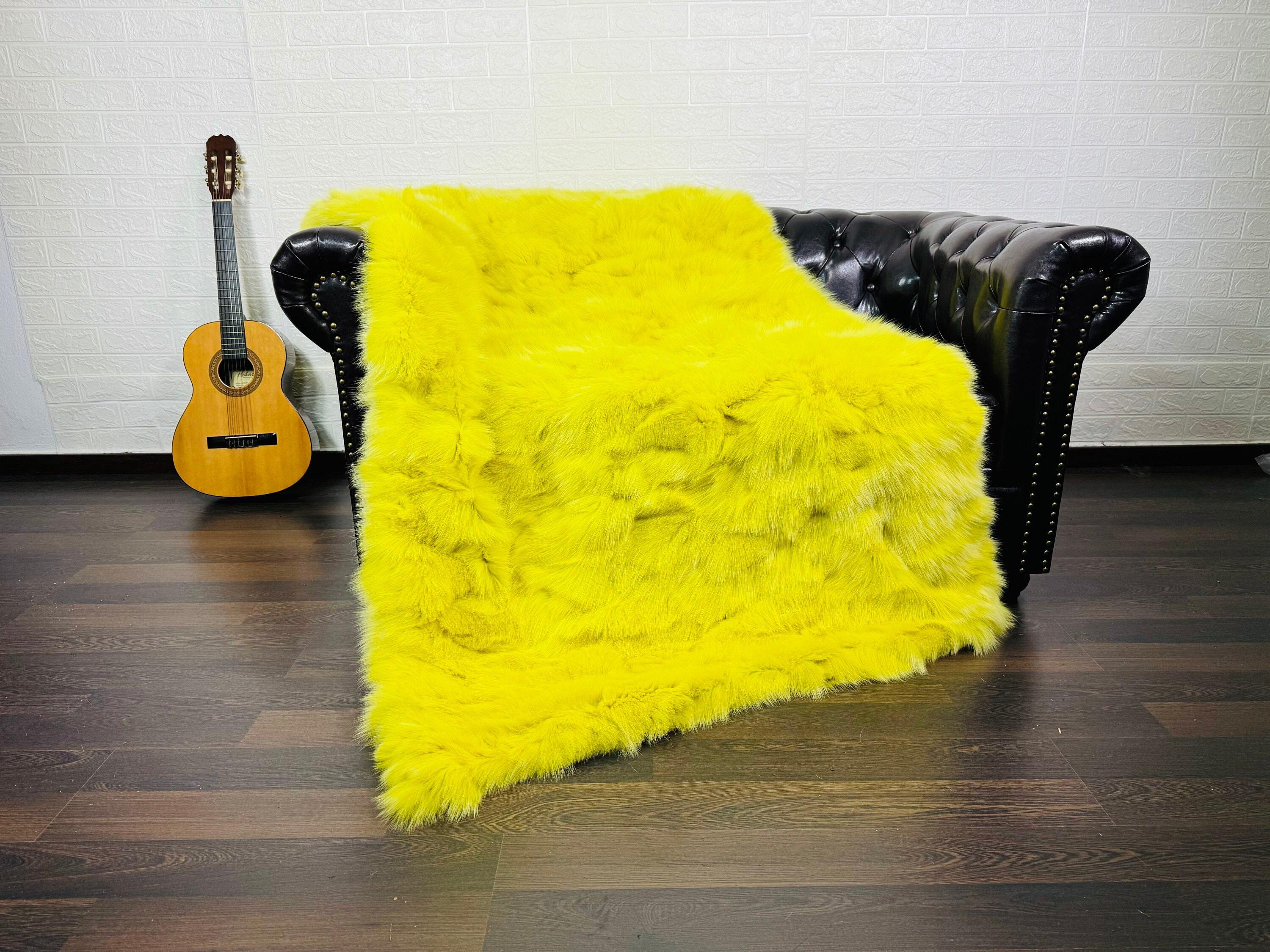 ● 1x Genuine Fox Fur Fur Blanket In Yellow Color