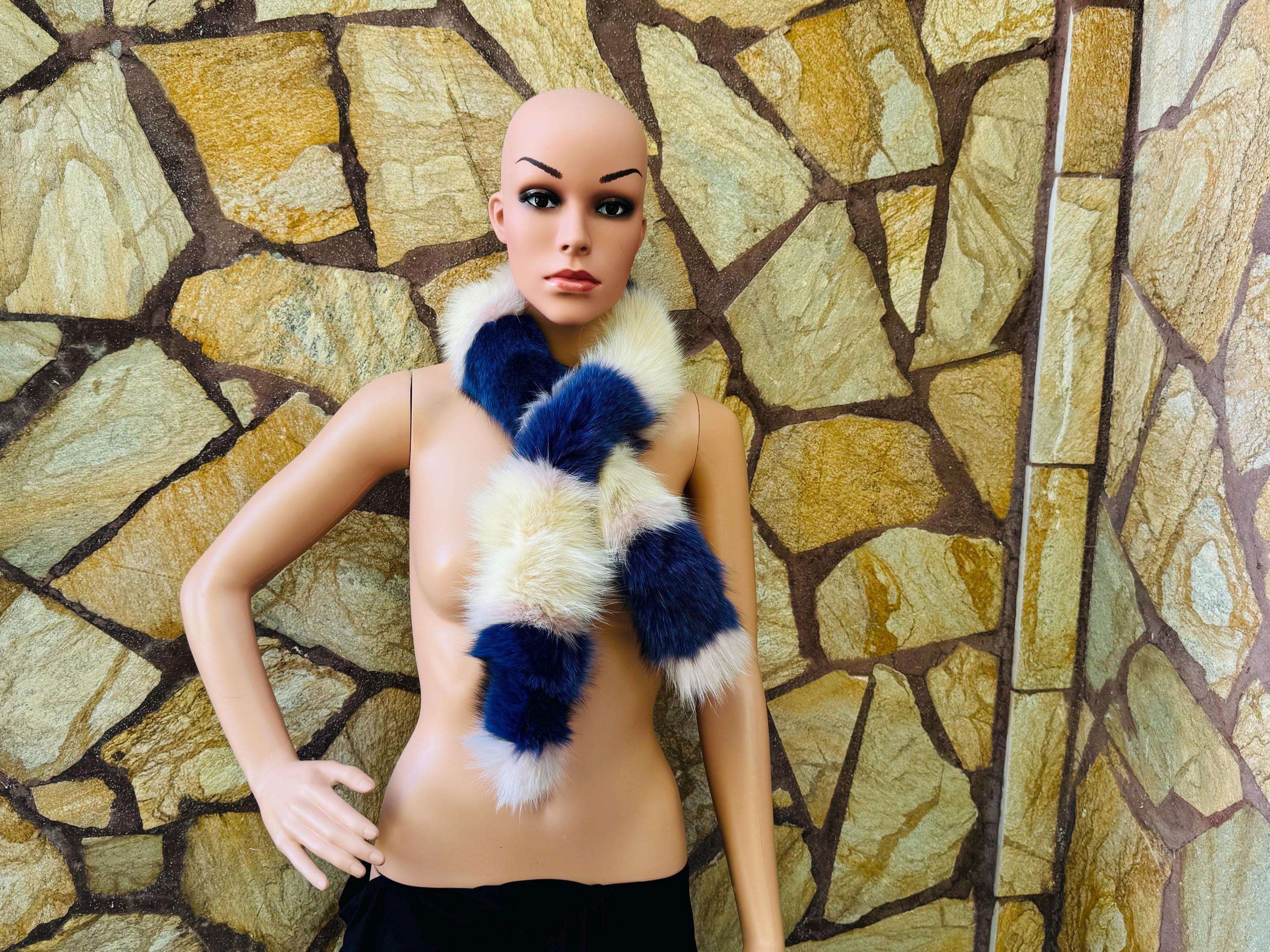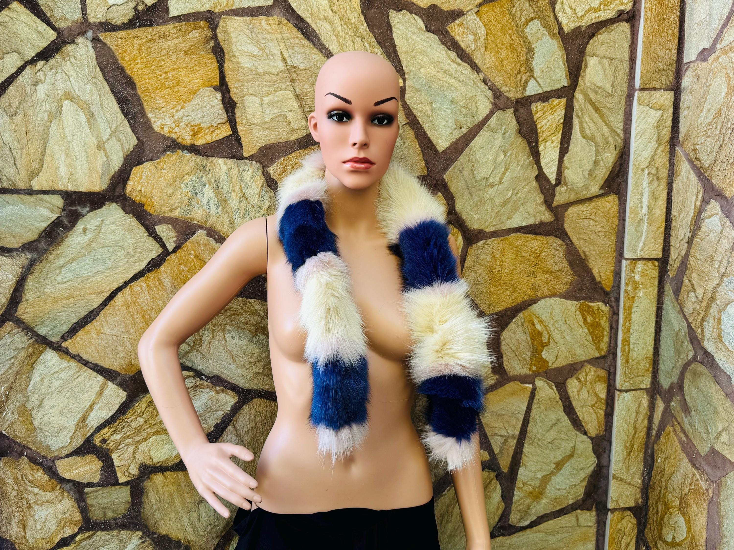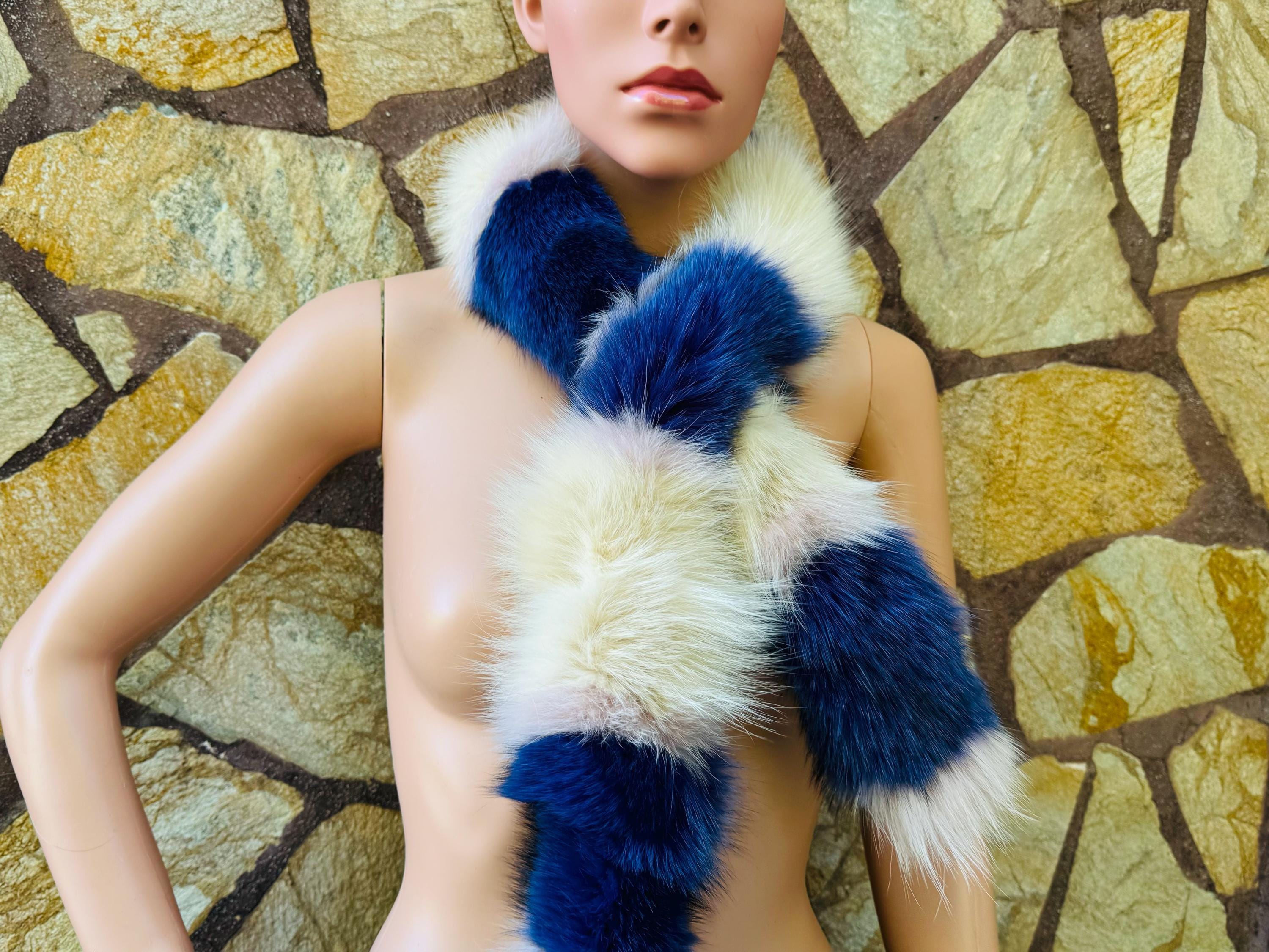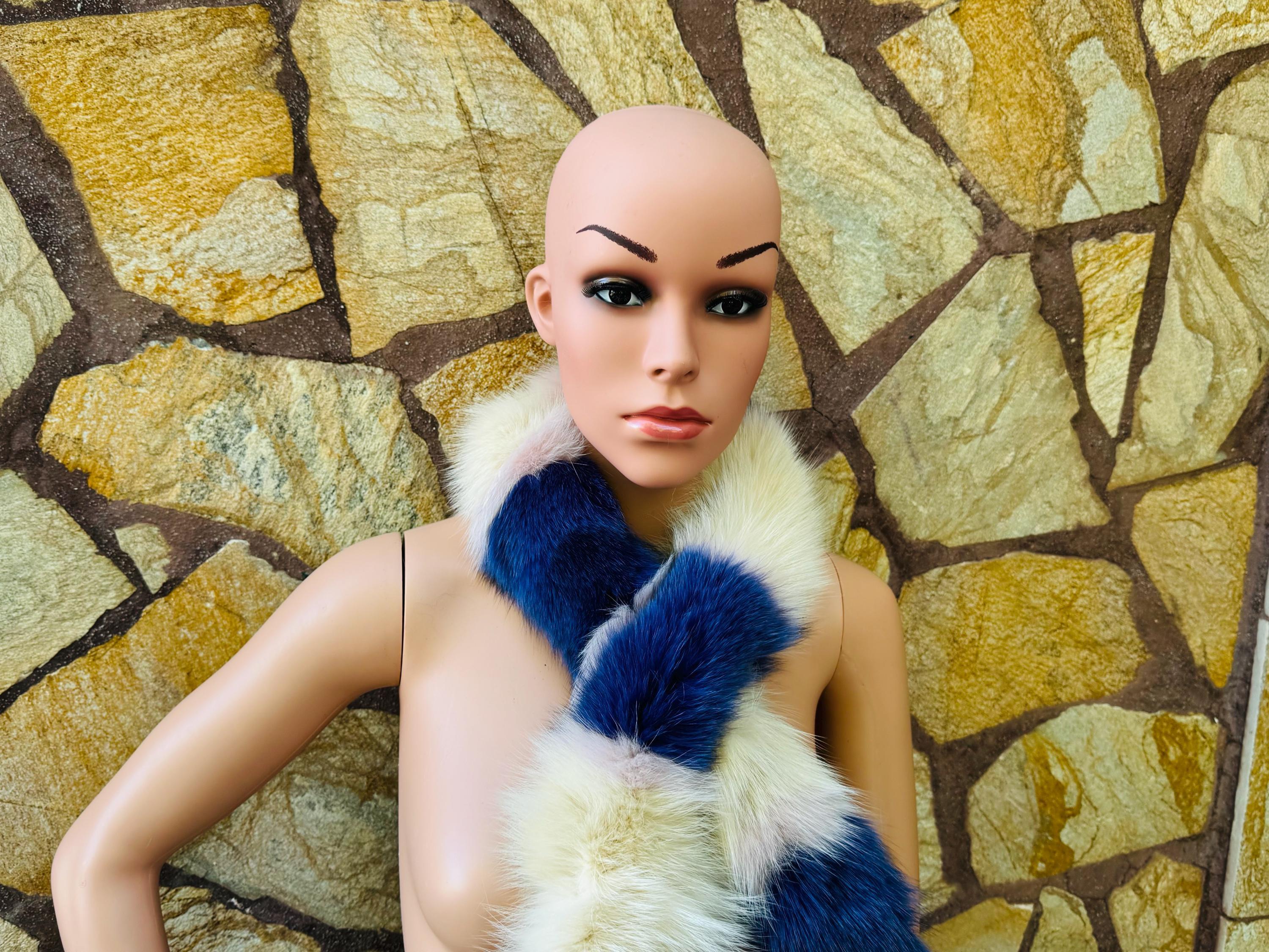 Real Fox Fur Scarf from Farmed Fox Fur eligible to global policies. Color Blue Beige.