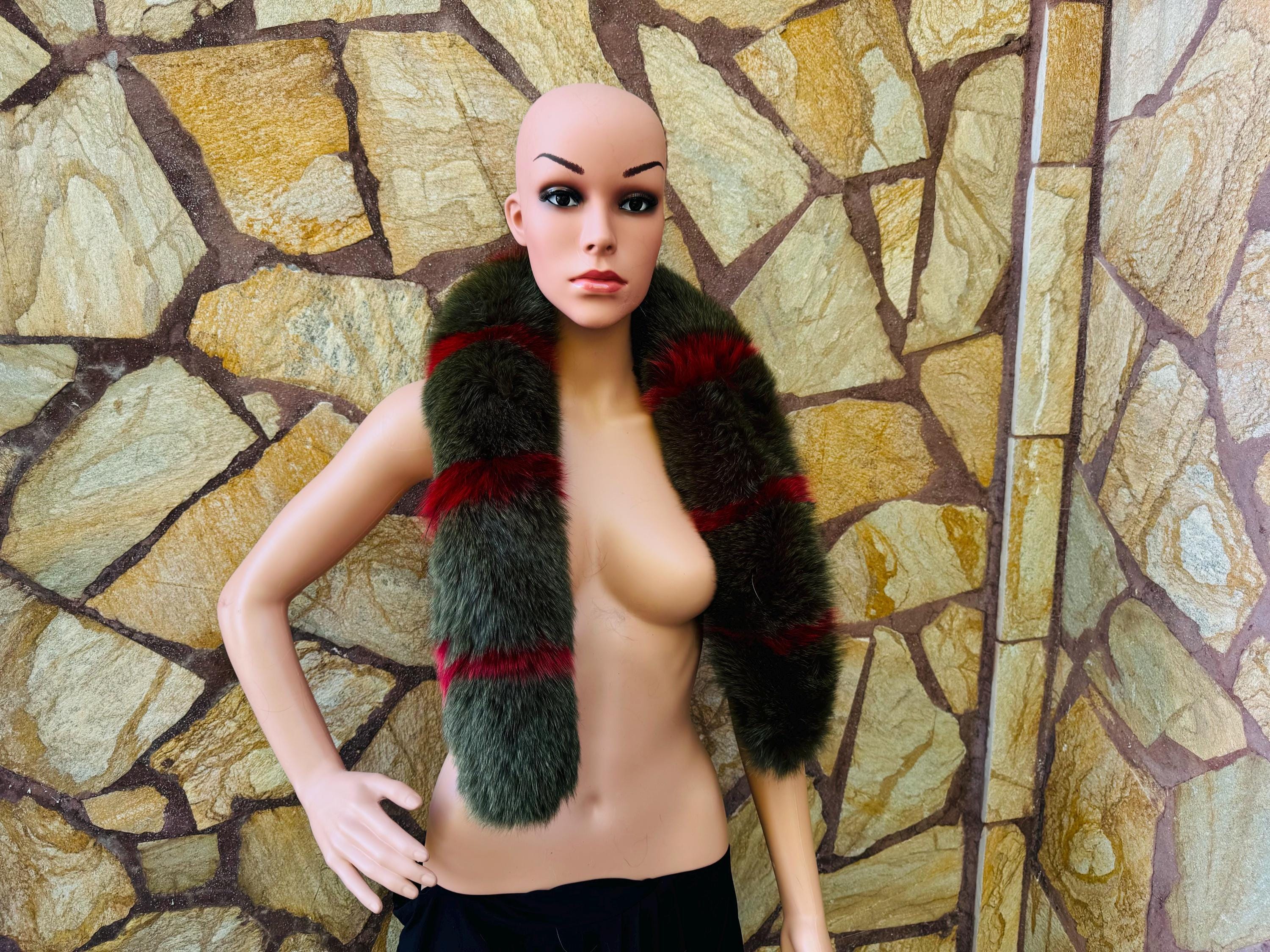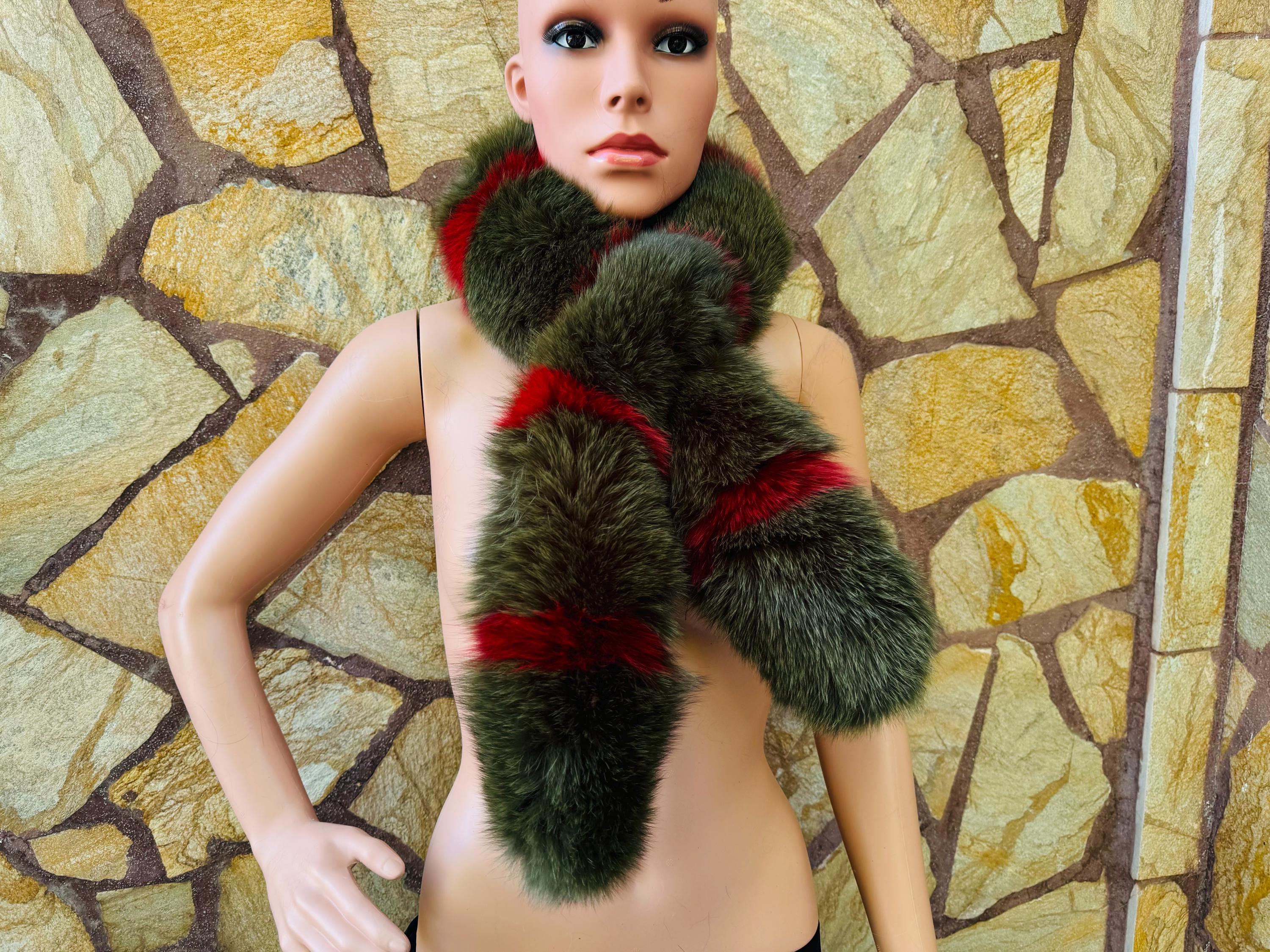 Real Fox Fur Scarf from Farmed Fox Fur eligible to global policies. Green Red Color