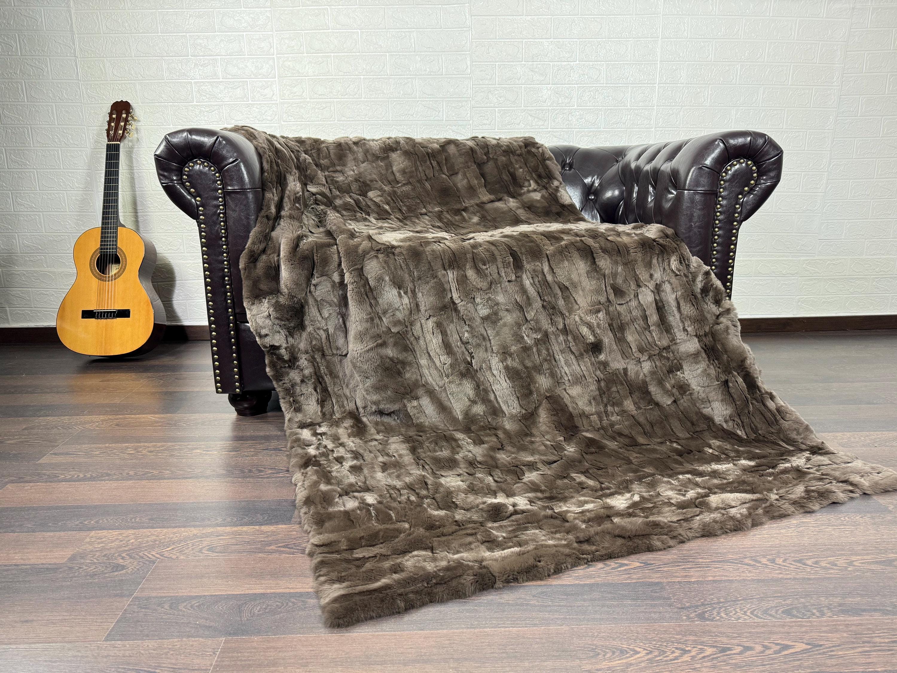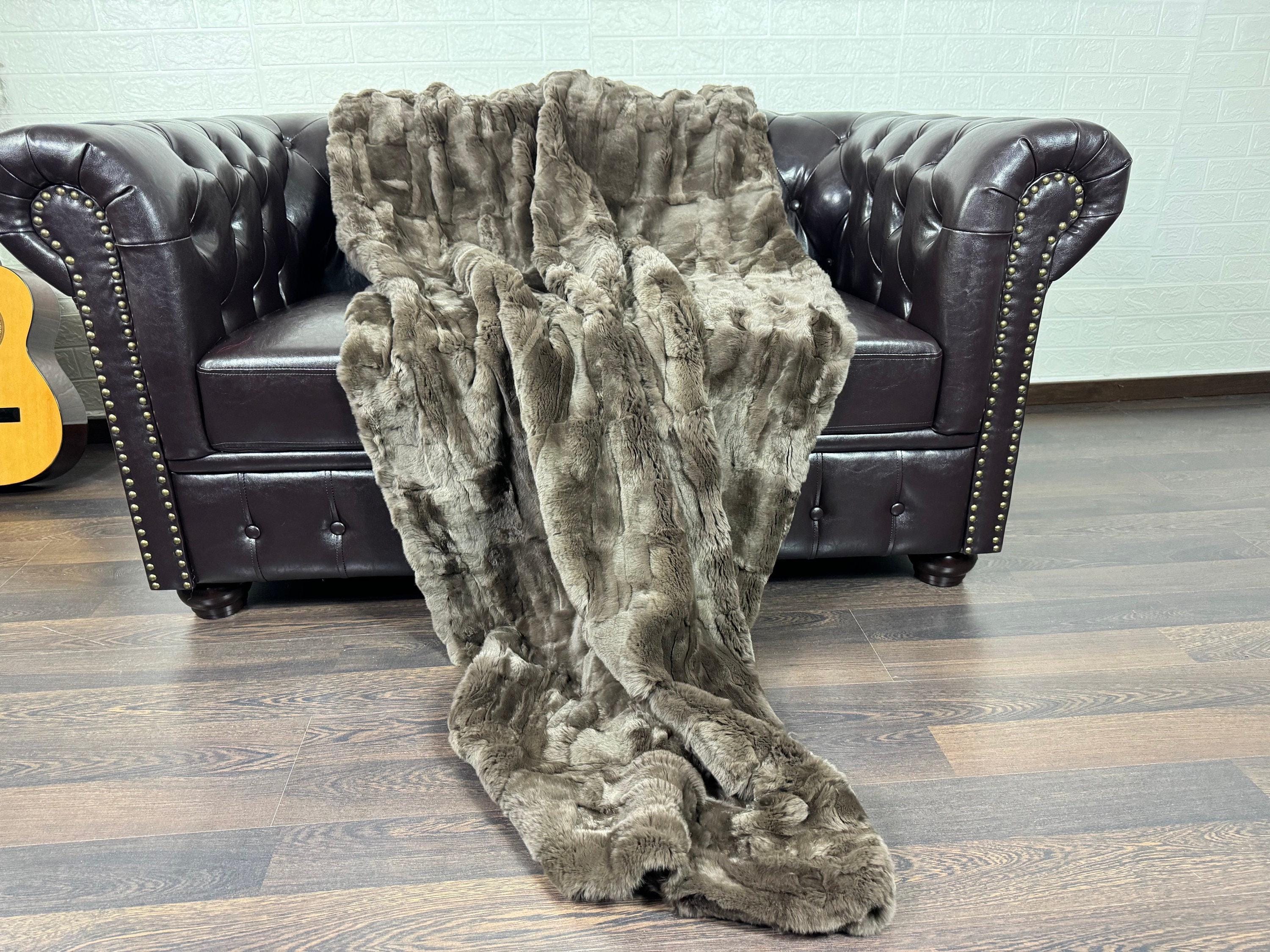 Lovingly crafted by hand, this silver real rex rabbit fur blanket throw was created with chilly days in mind.