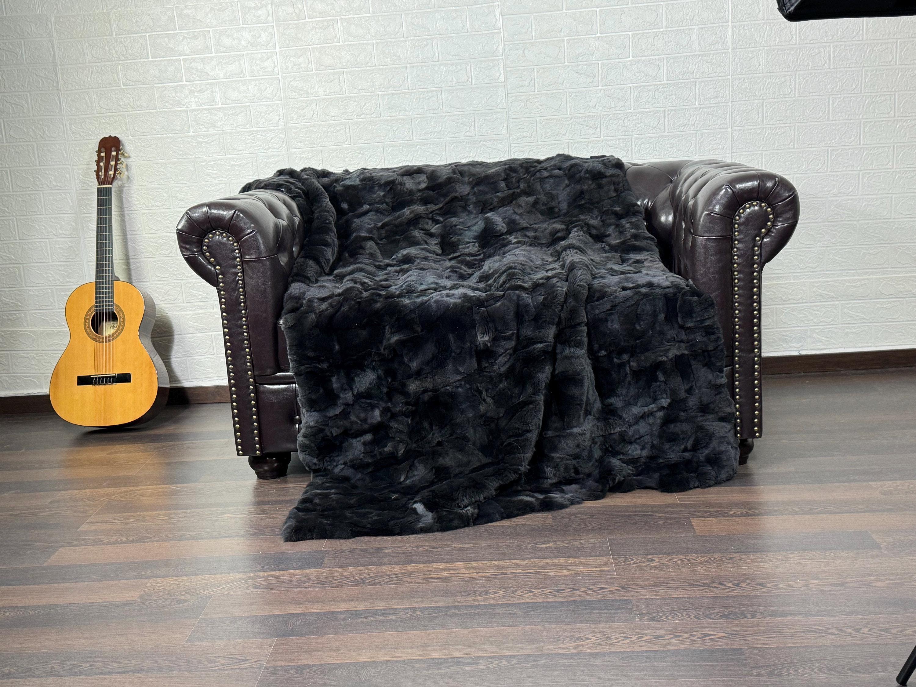 ● 1x Genuine Rex Rabbit Fur Blanket In Black Colour