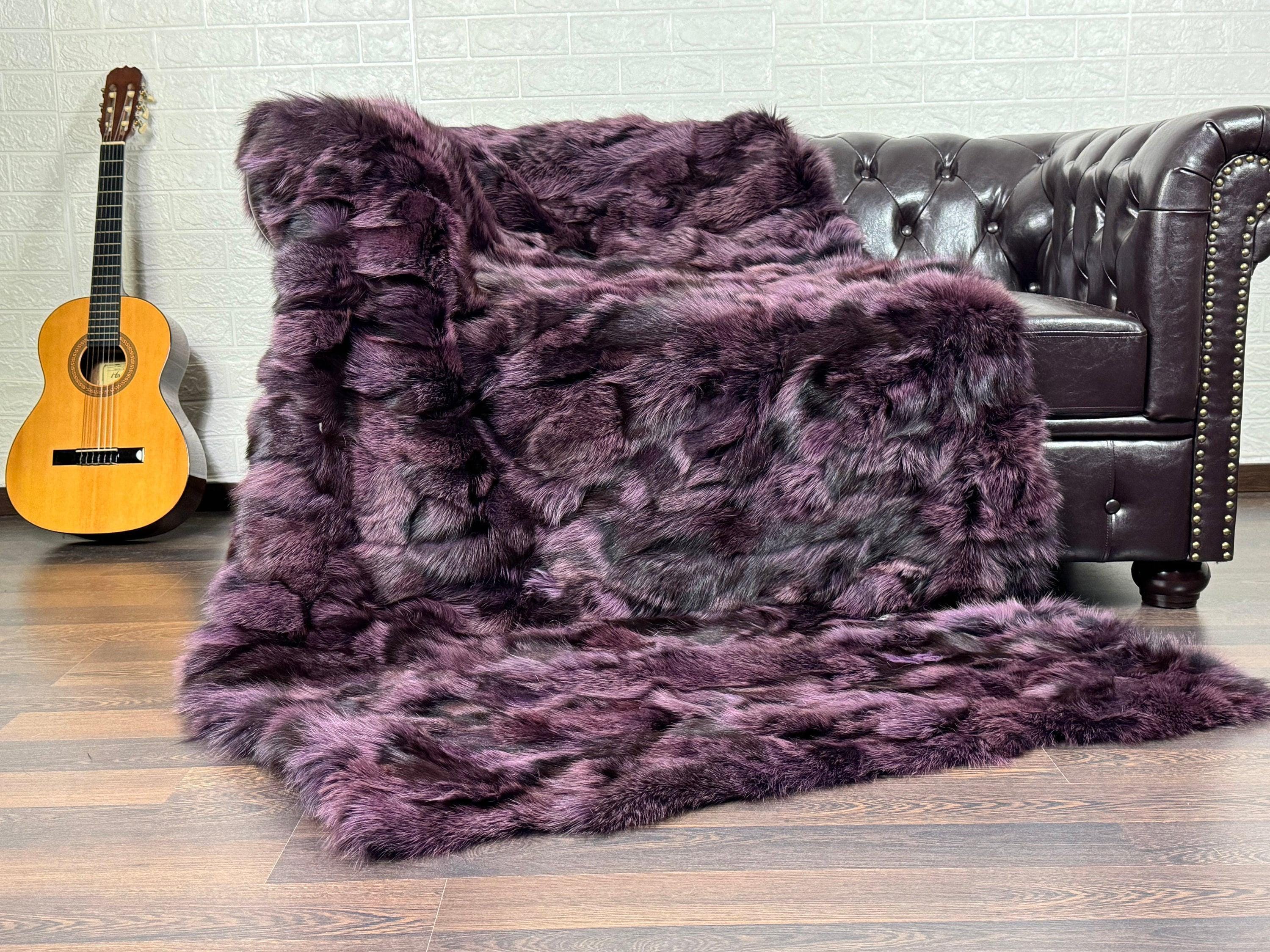 Lovingly crafted by hand, this black purple real fox fur fur blanket throw was created with chilly days in mind.