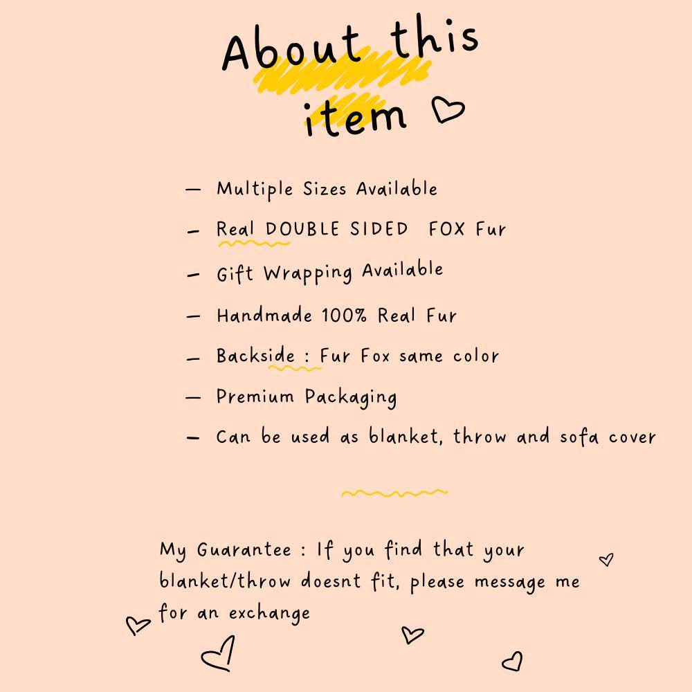 Natural fur fox possesses numerous health benefits: it promotes restful sleep, is soothing, thanks to warmth promotes blood circulation, provides relief to pressure points and achy limbs, is safe for kids and pets, is kind to skin, and is bacteria repellent. Also serves as a great pet bed and throw.