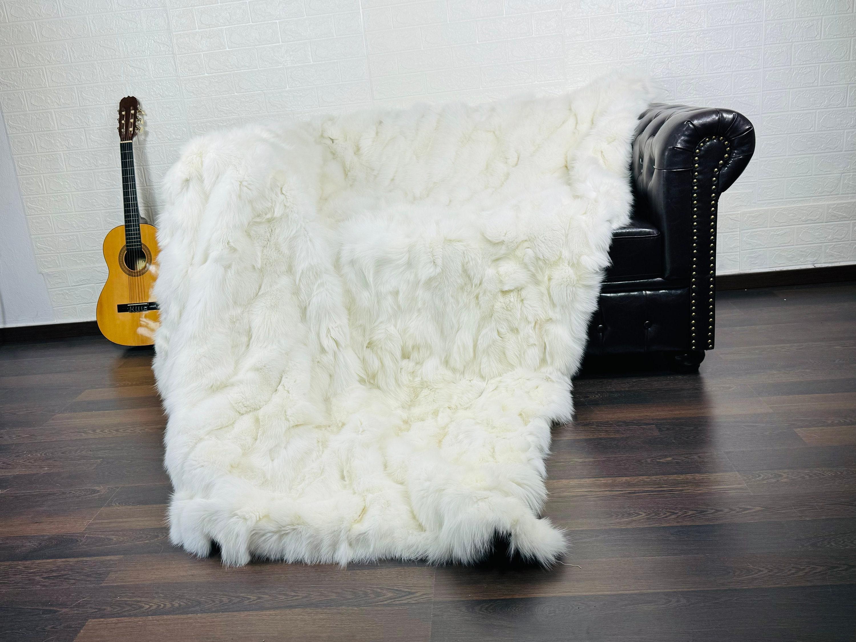 Lovingly crafted by hand, this White real fox fur fur blanket throw was created with chilly days in mind.