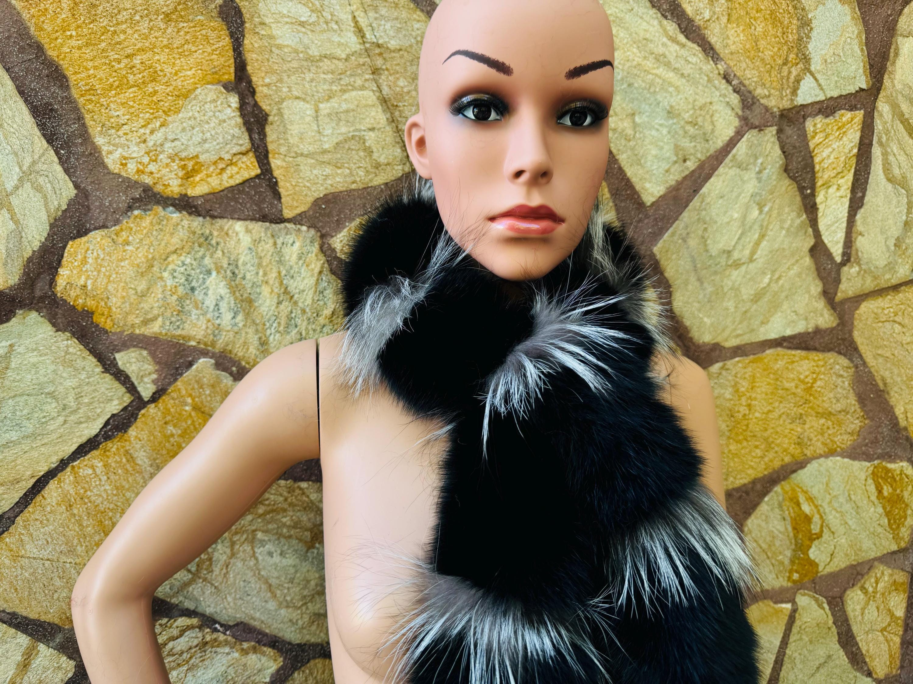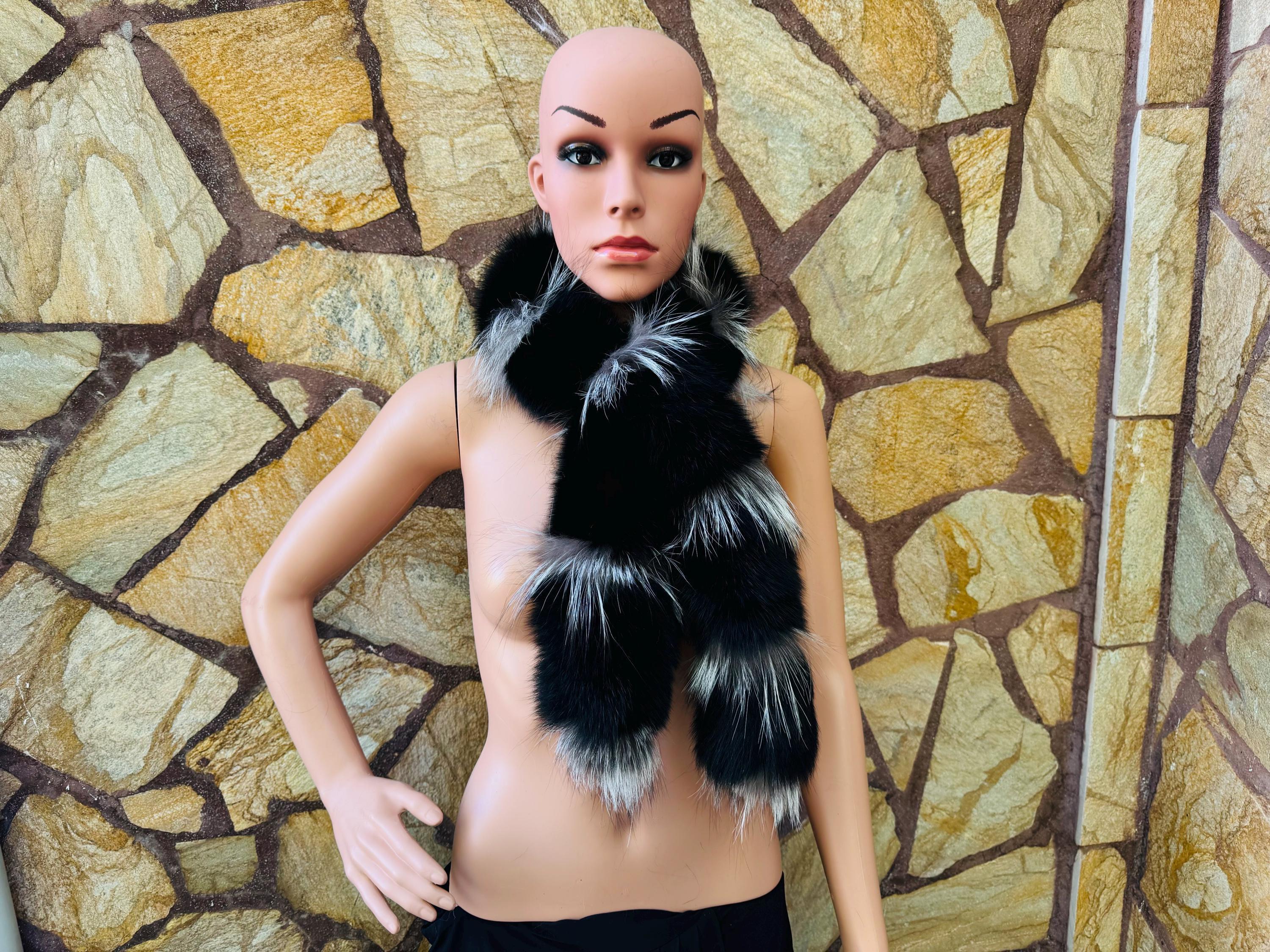Real Fox Fur Scarf from Farmed Fox Fur eligible to global policies. Colorful with different variations like Black & Silver Natural