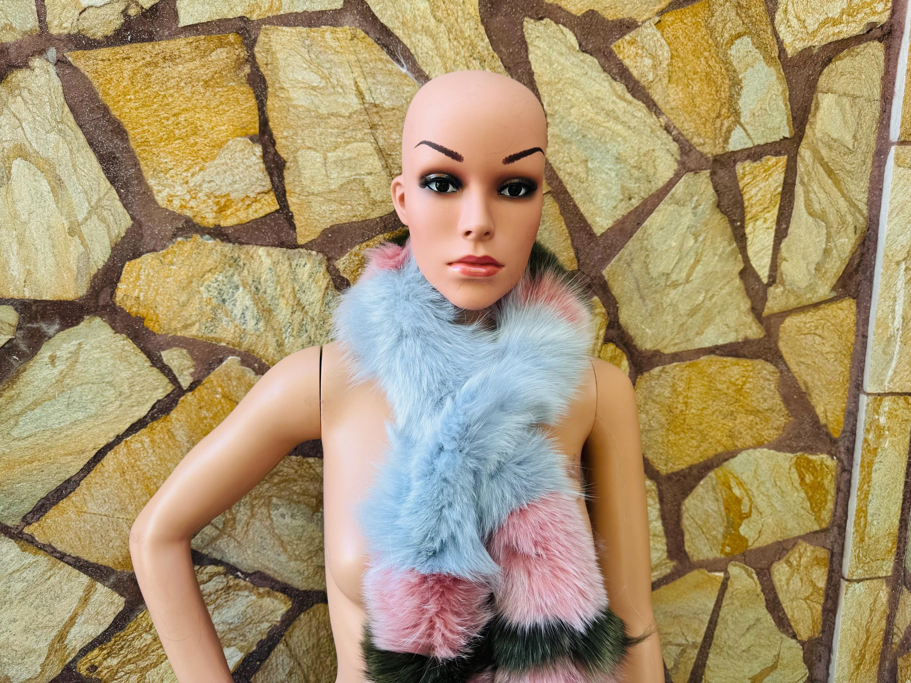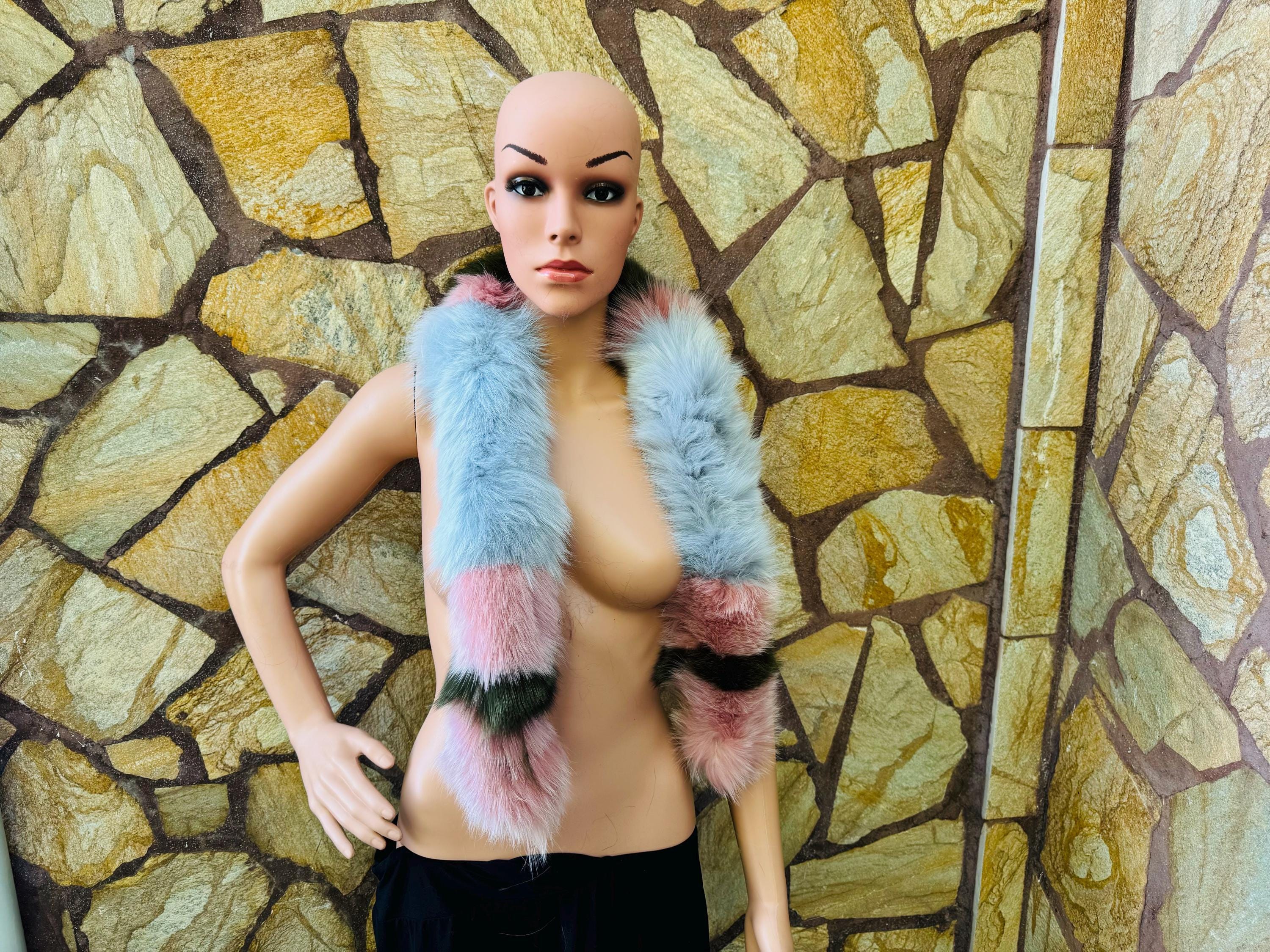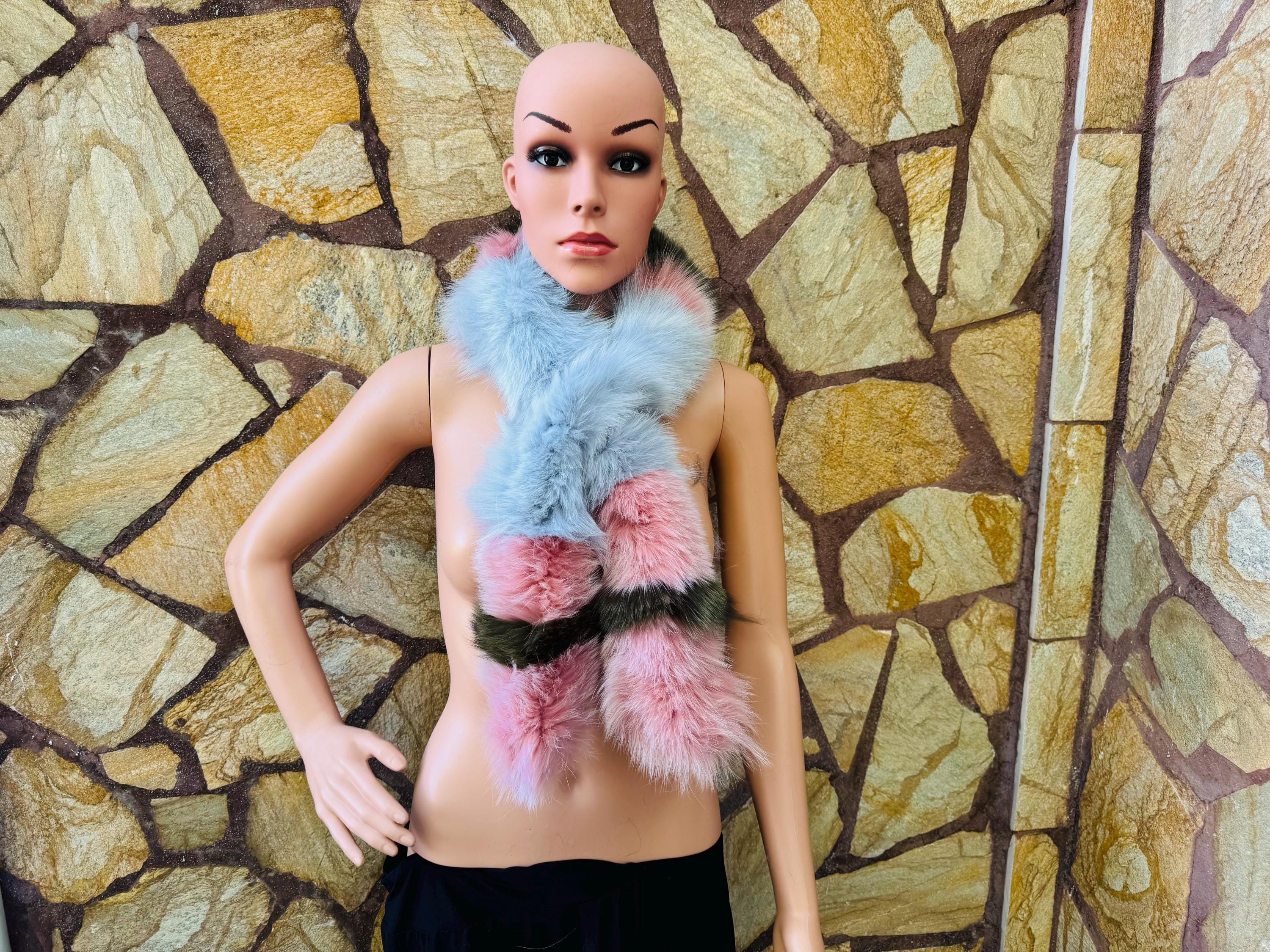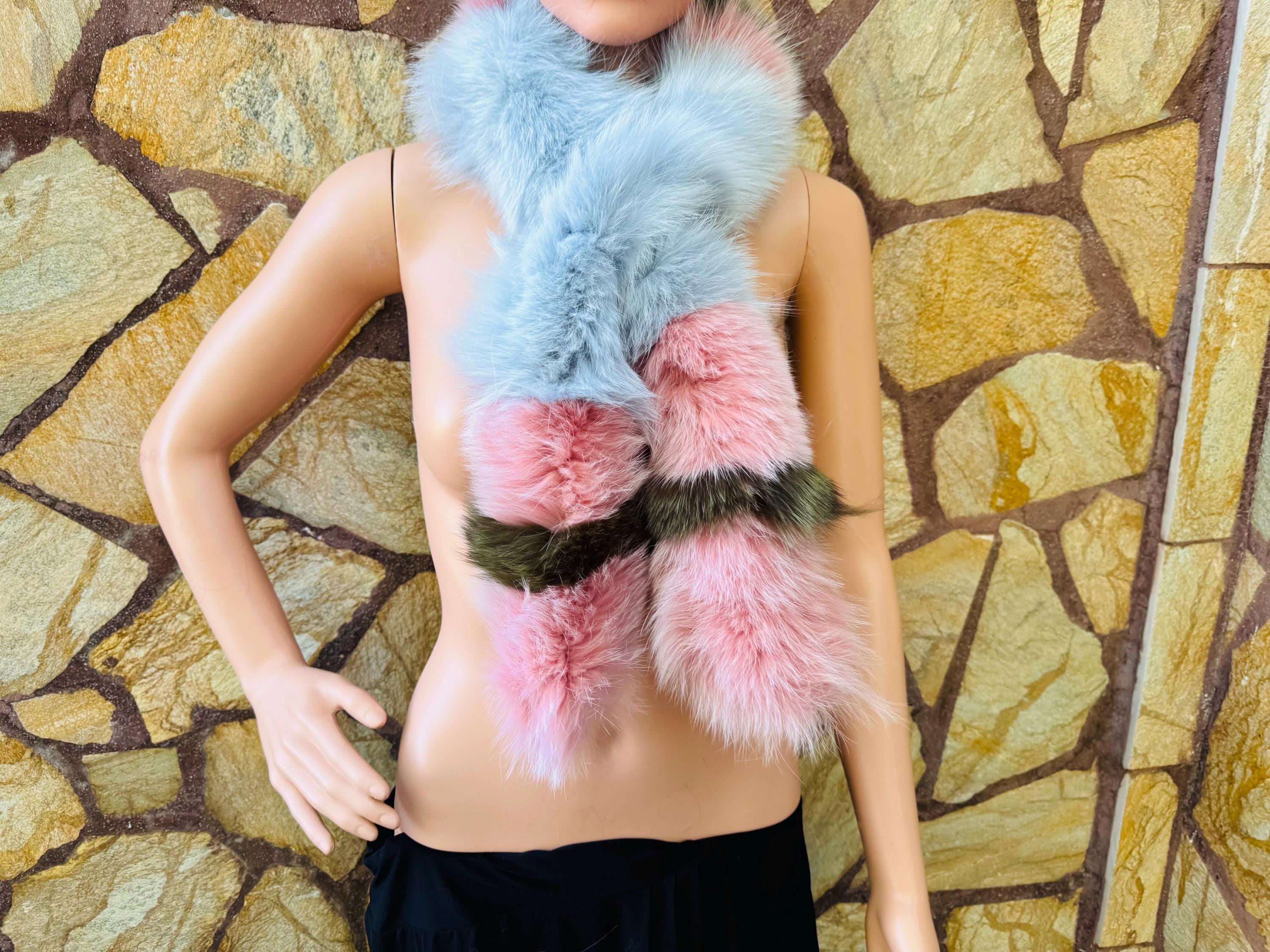 Real Fox Fur Scarf from Farmed Fox Fur eligible to global policies. Colorful with different variations like Light Blue, Pink and Green