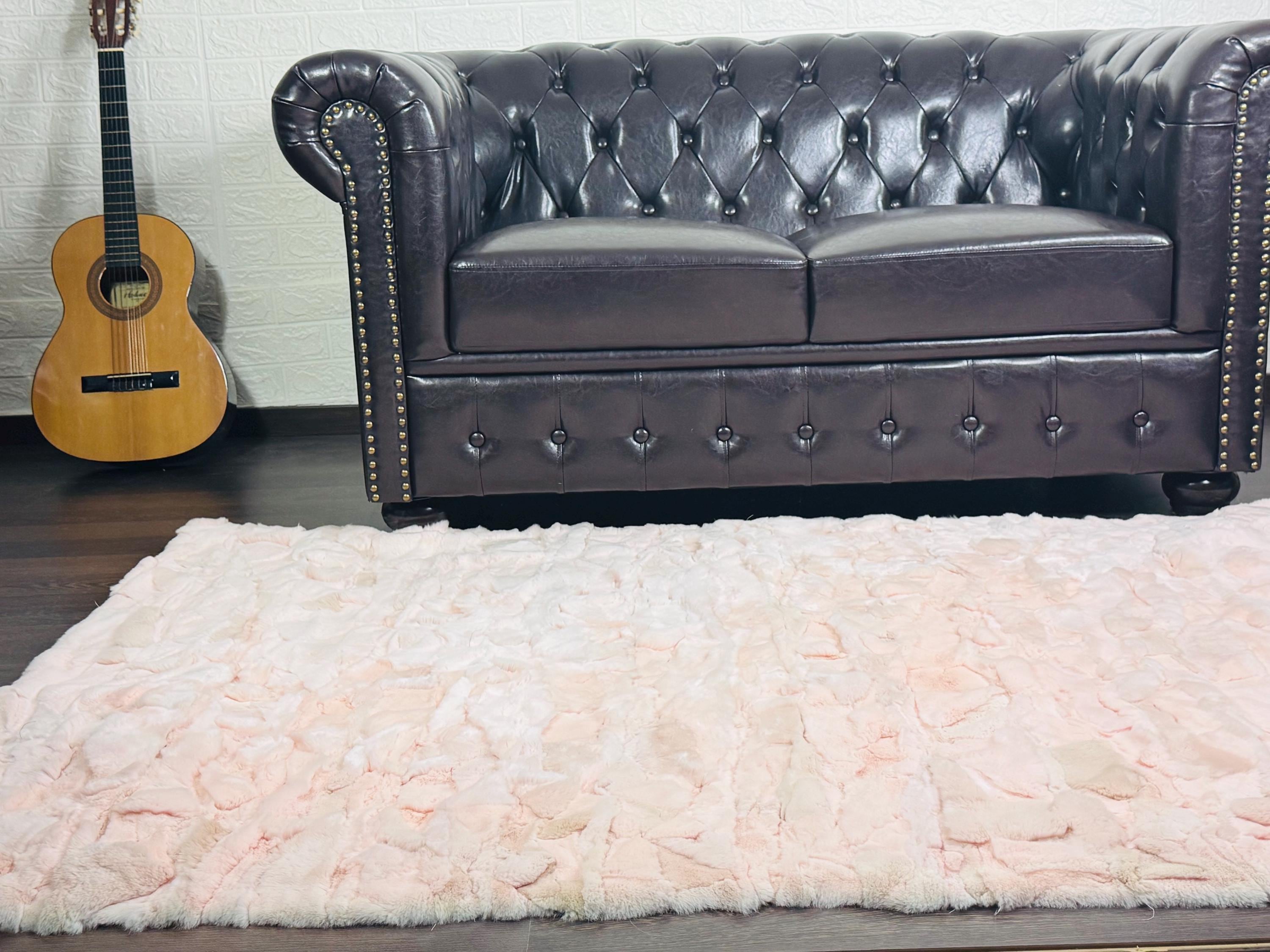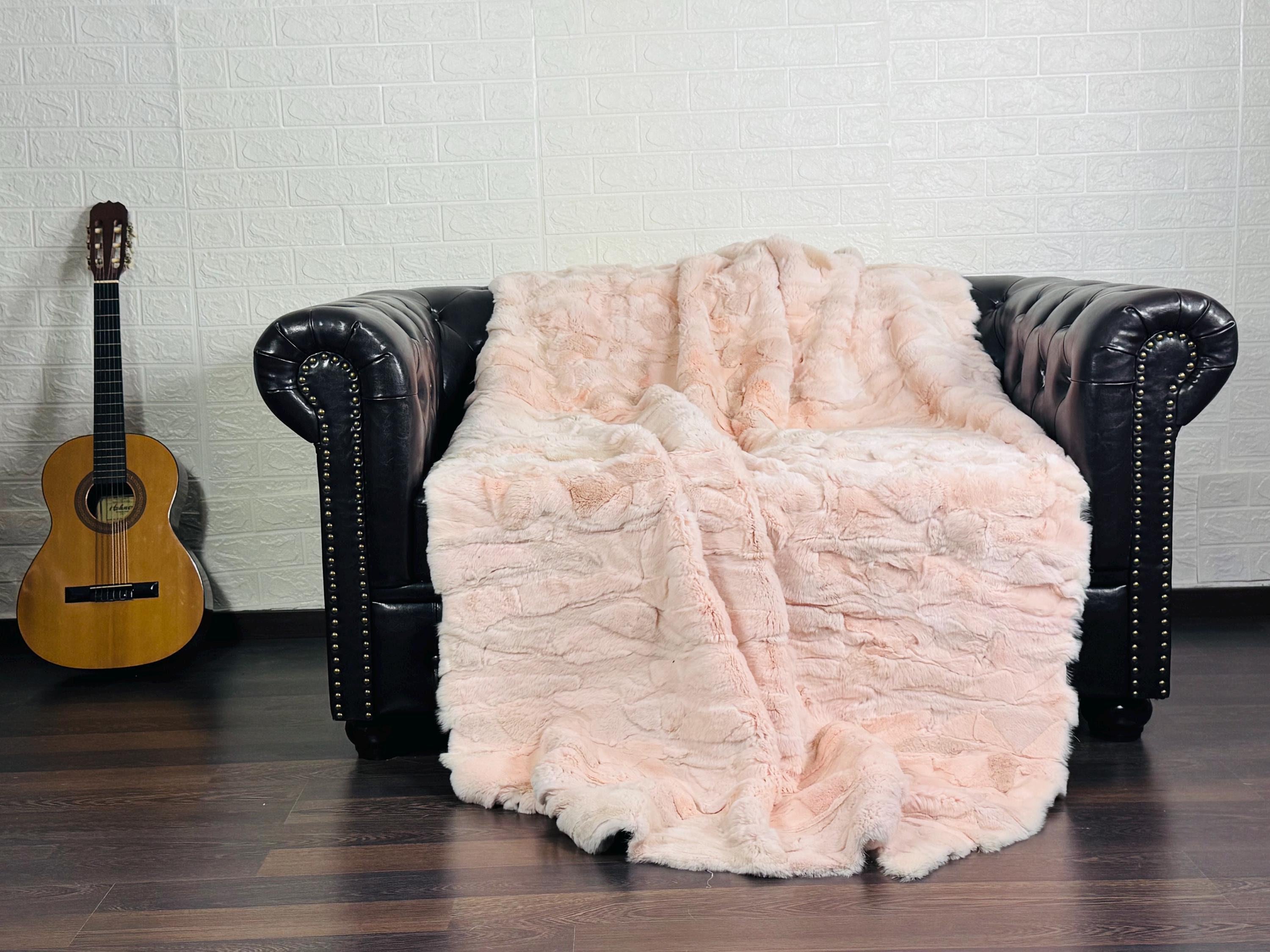 Luxurious Rex Rabbit Fur Blanket Throw Baby Pink • Personalized Handmade Fur Sofa Cover n Bedspread • Vintage Rabbit fur Throw Blanket