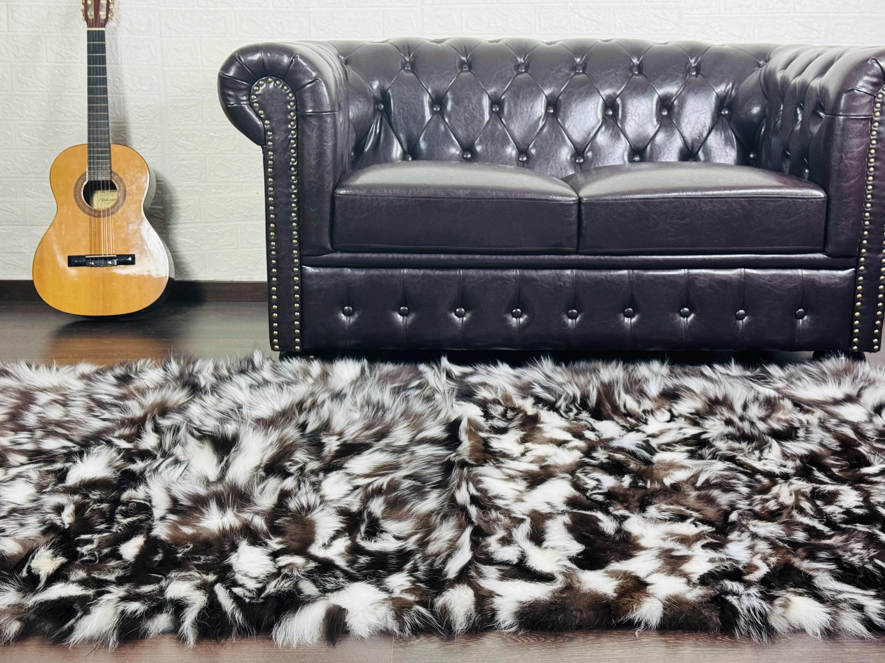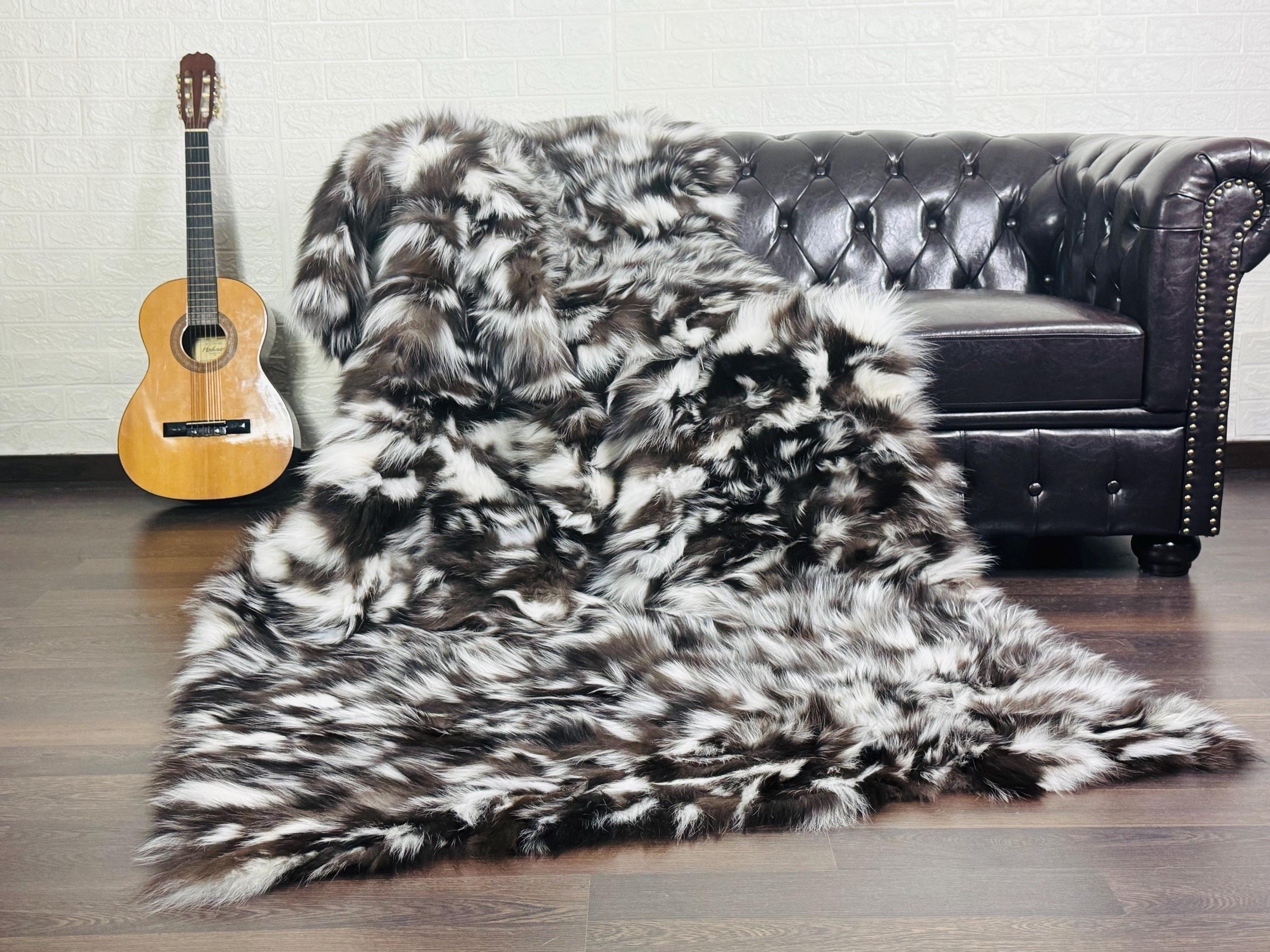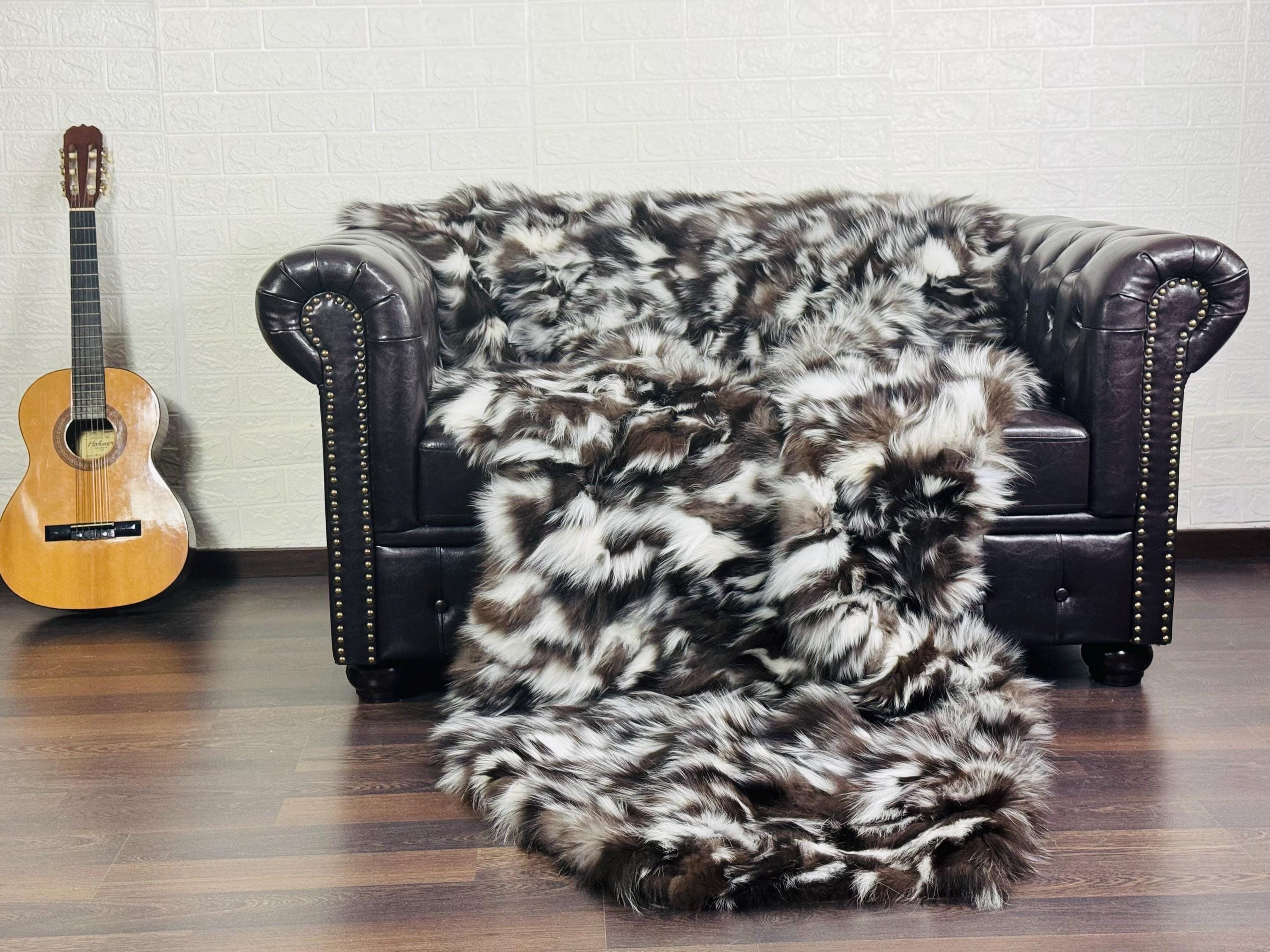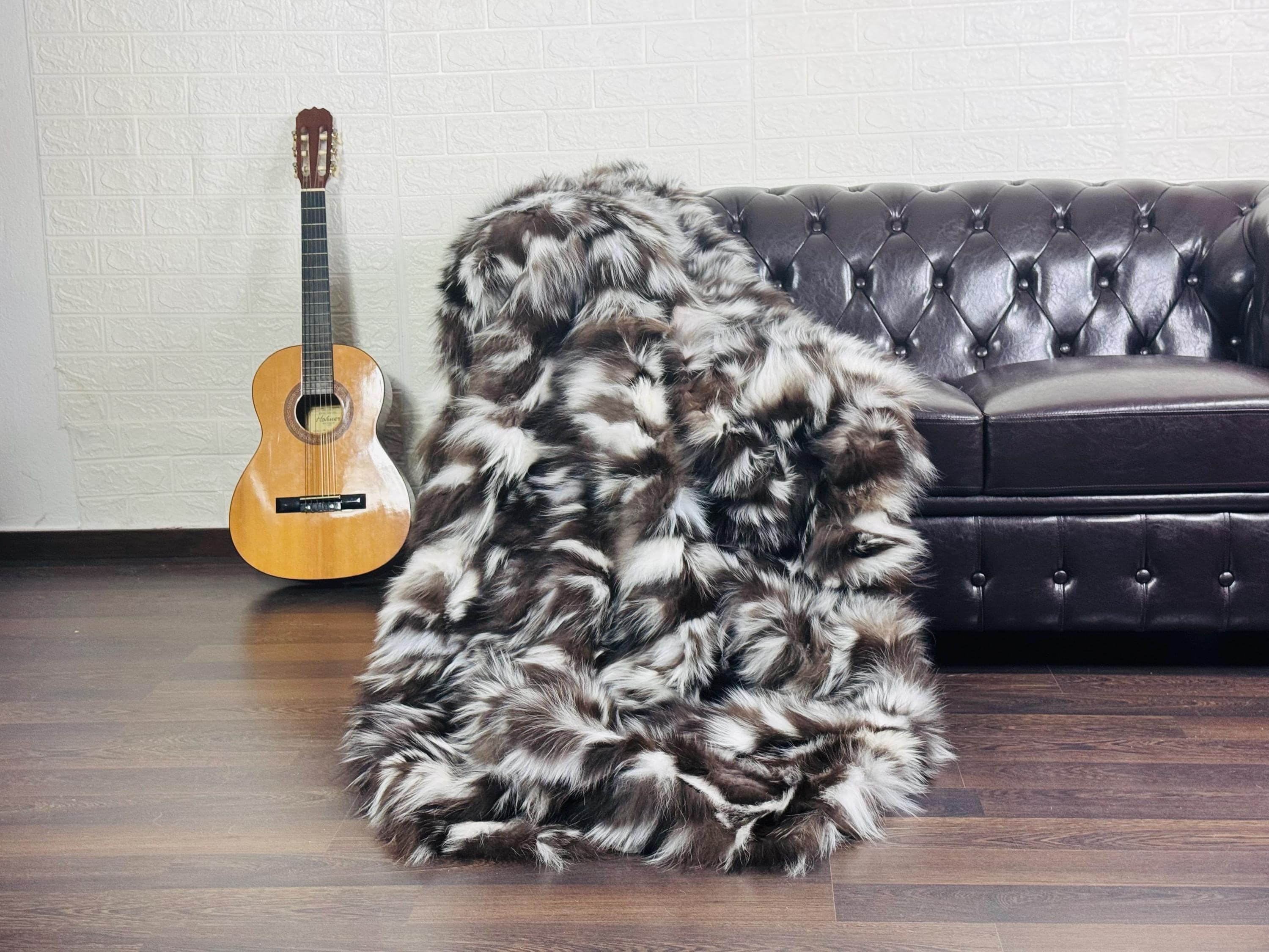 ● 1x Genuine Fox Fur Blanket In Black White & Brown shades