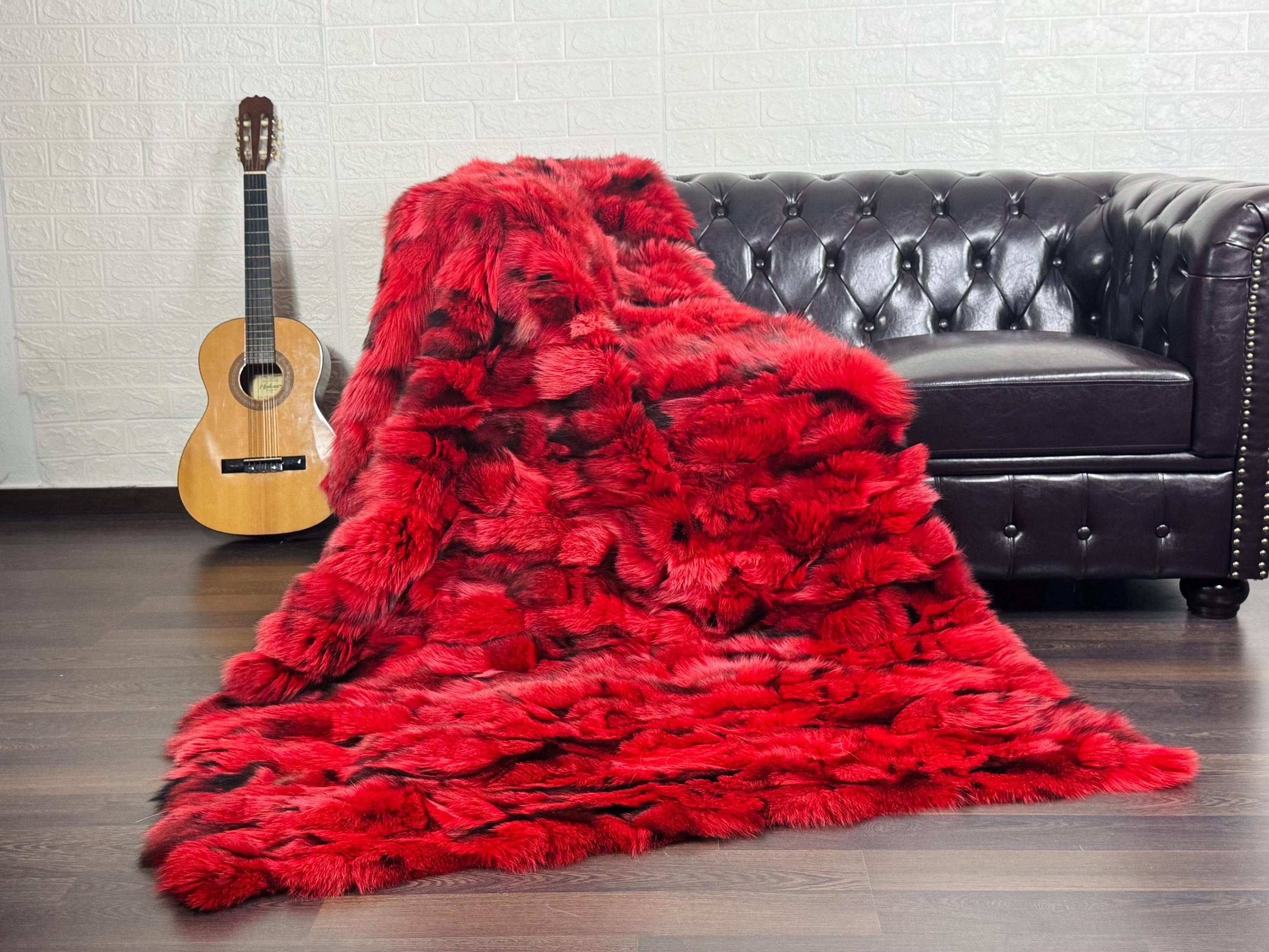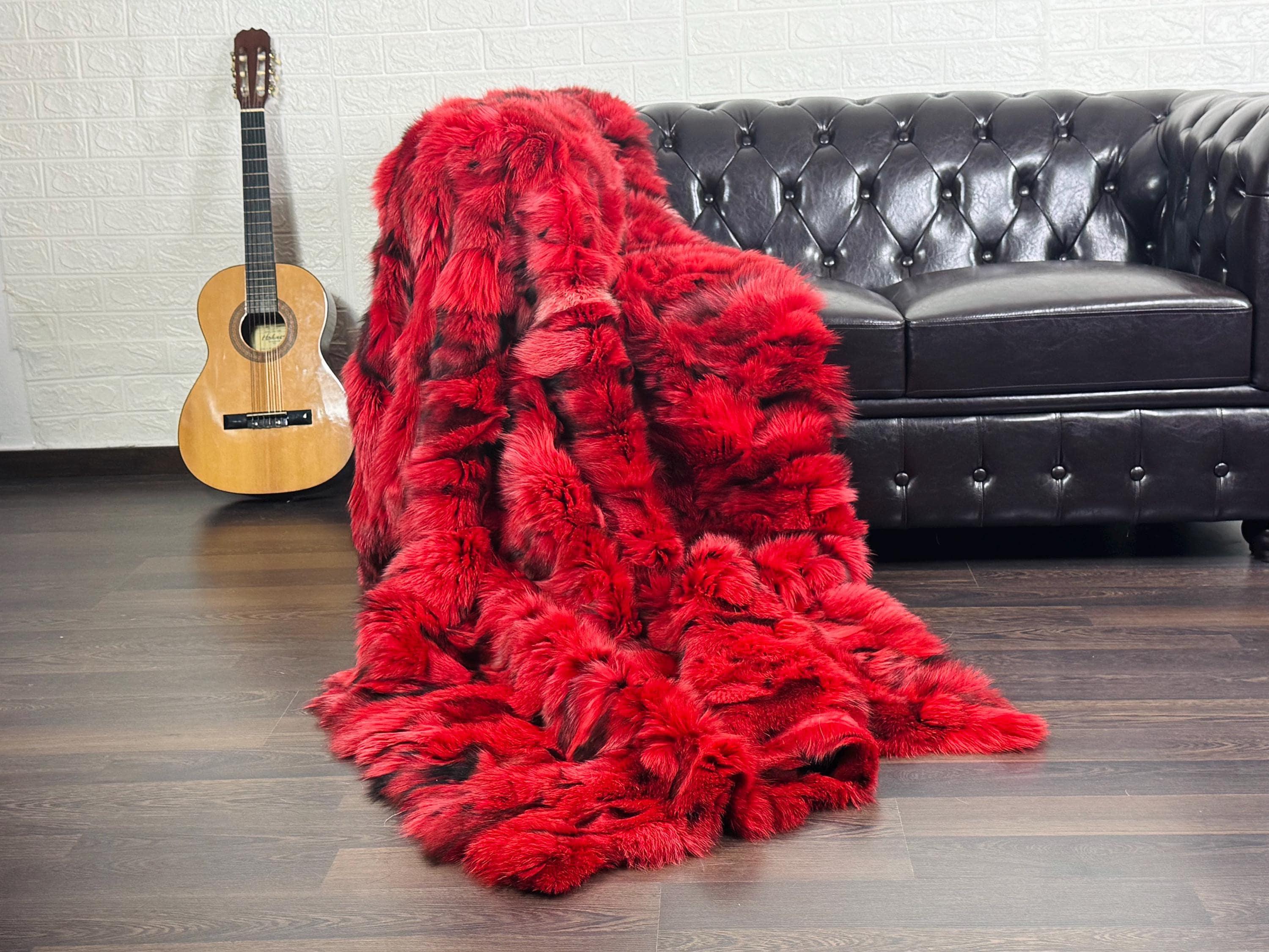 Handmade Real Red with black marks Fox Fur Blanket that can be used as a throw as well. Perfect for Bedspread or Sofa Cover.
