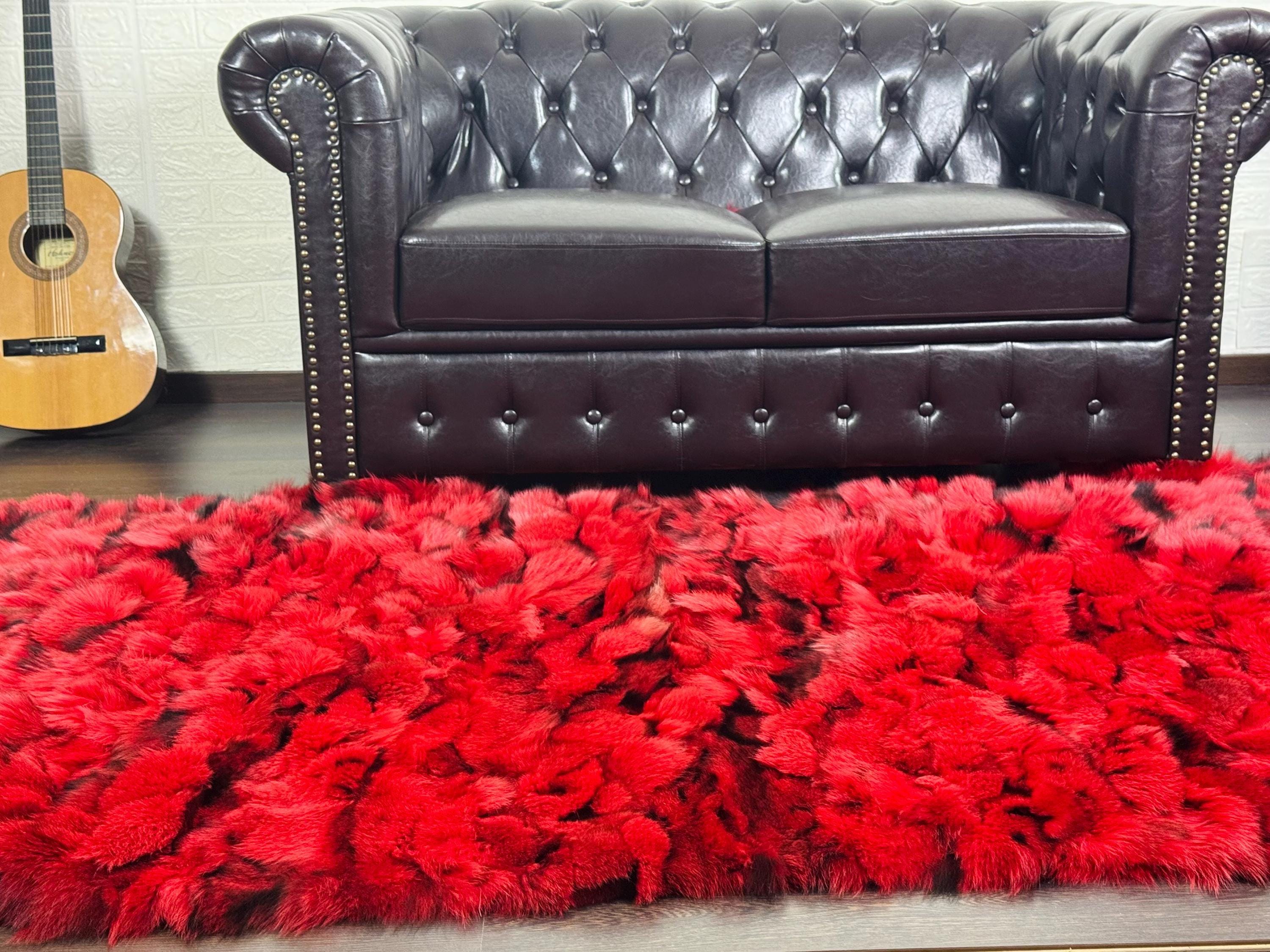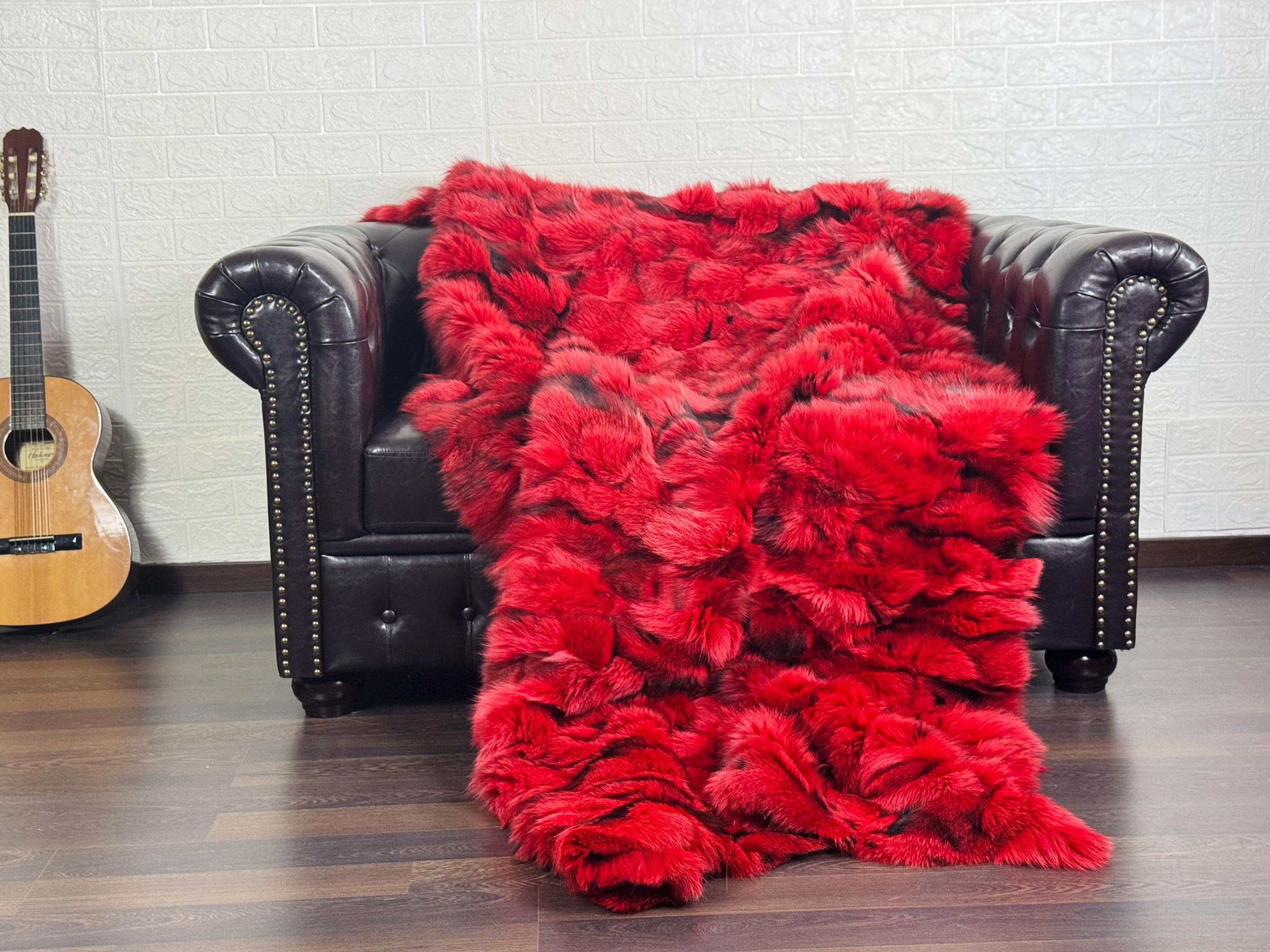 ● 1x Genuine Fox Fur Fur Blanket In Red with black marks