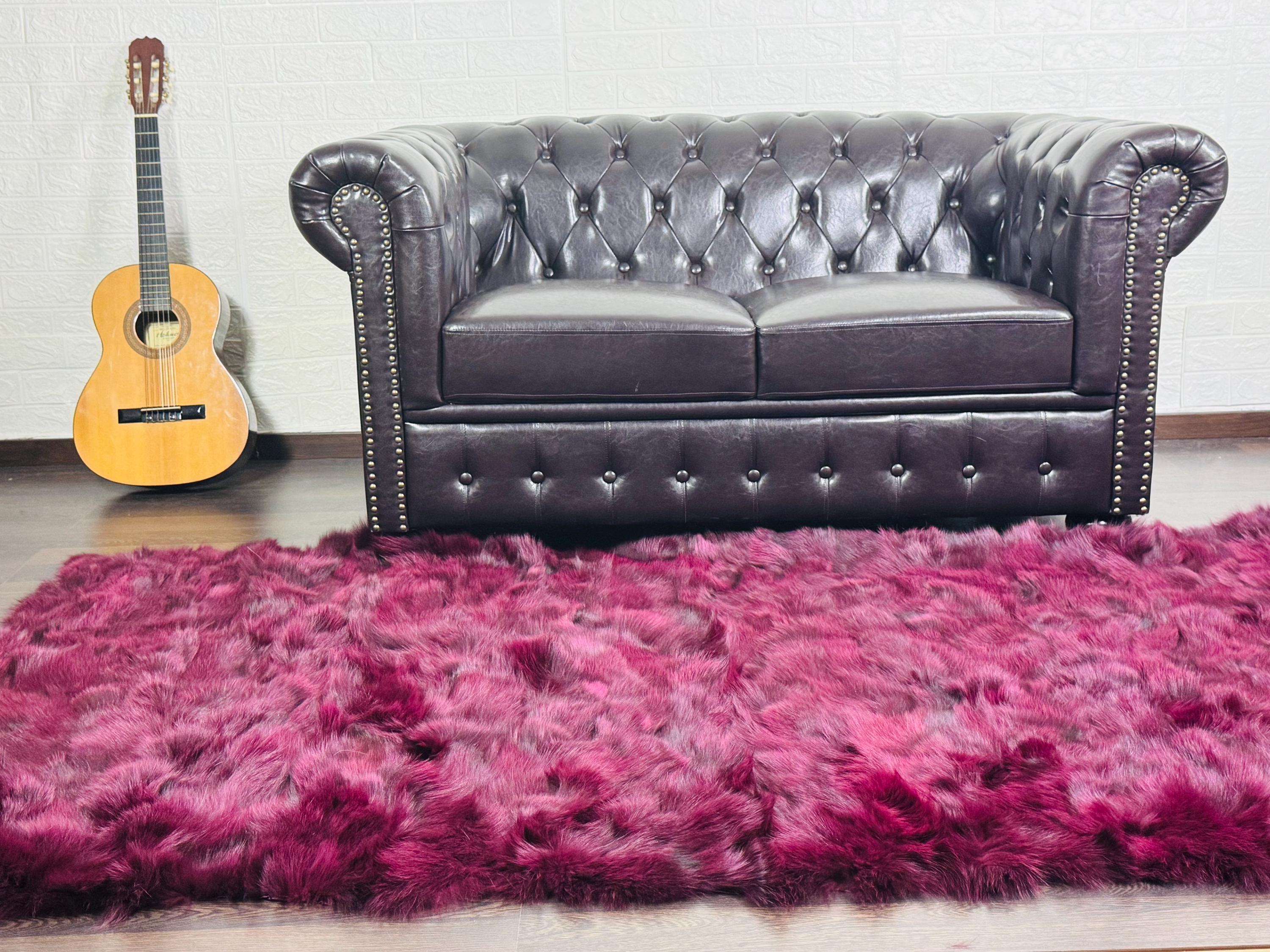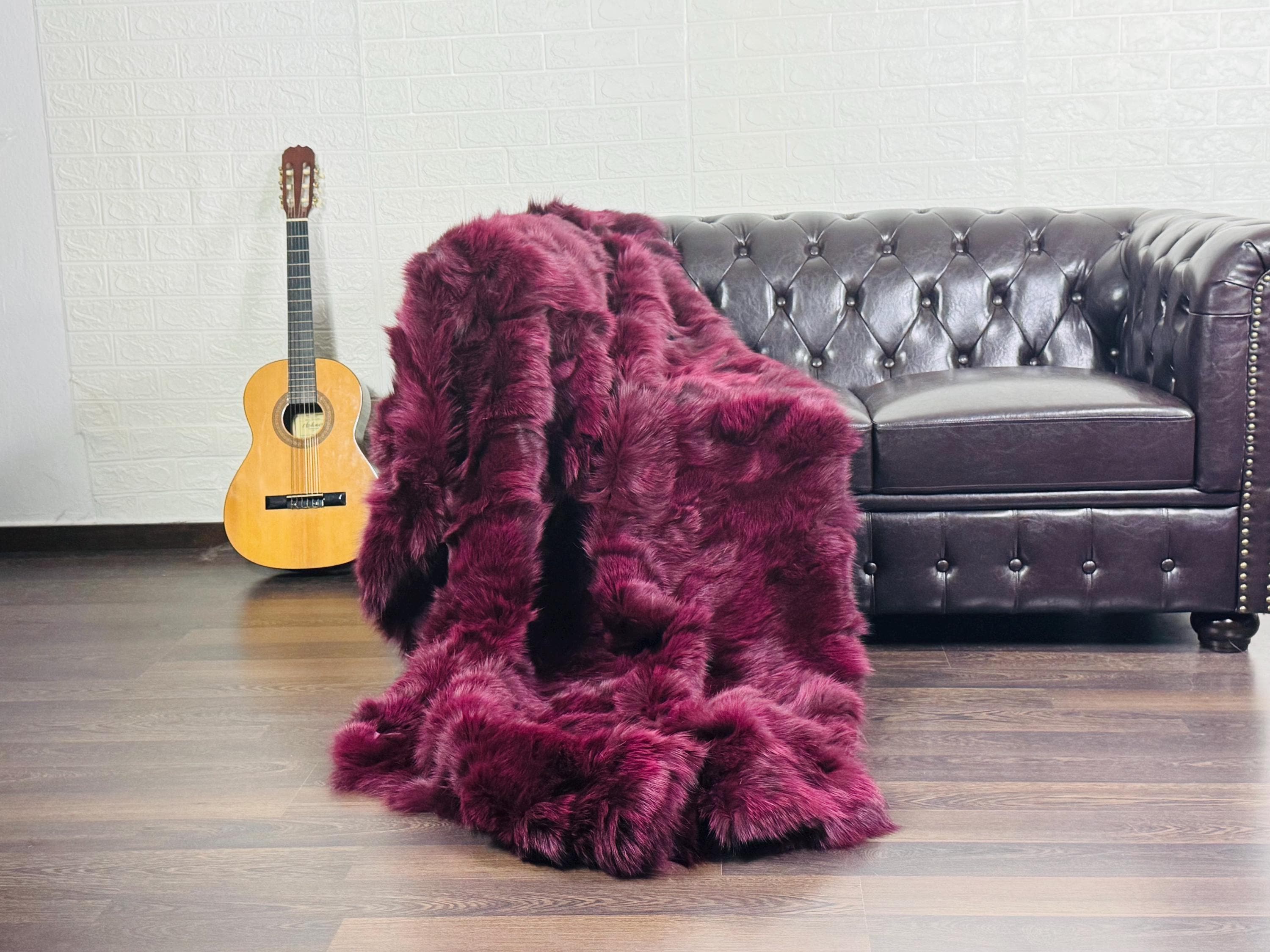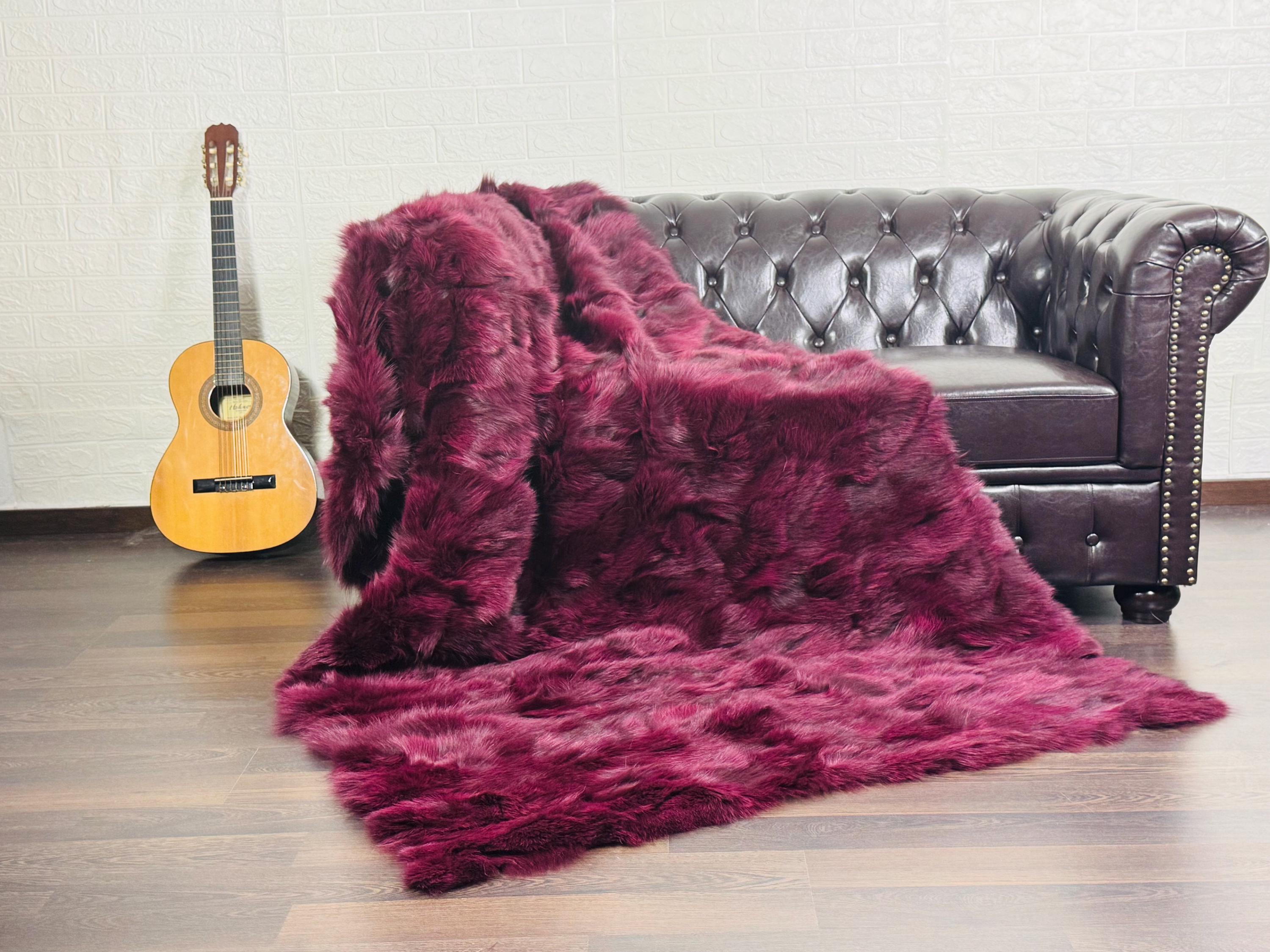 Handmade Real Purple Fox Fur Blanket that can be used as a throw as well. Perfect for Bedspread or Sofa Cover.