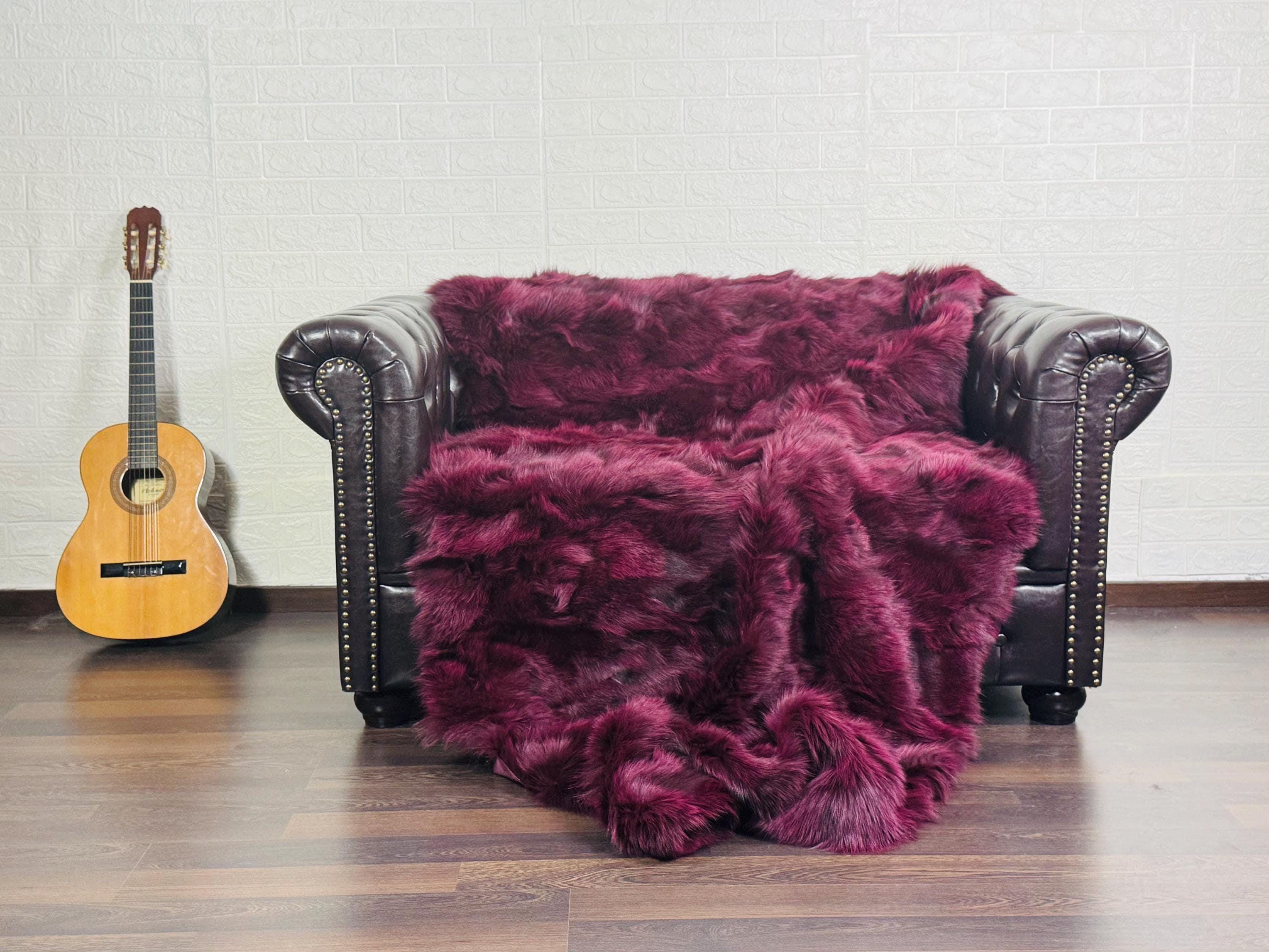 ● 1x Genuine Fox Fur Fur Blanket In Purple
