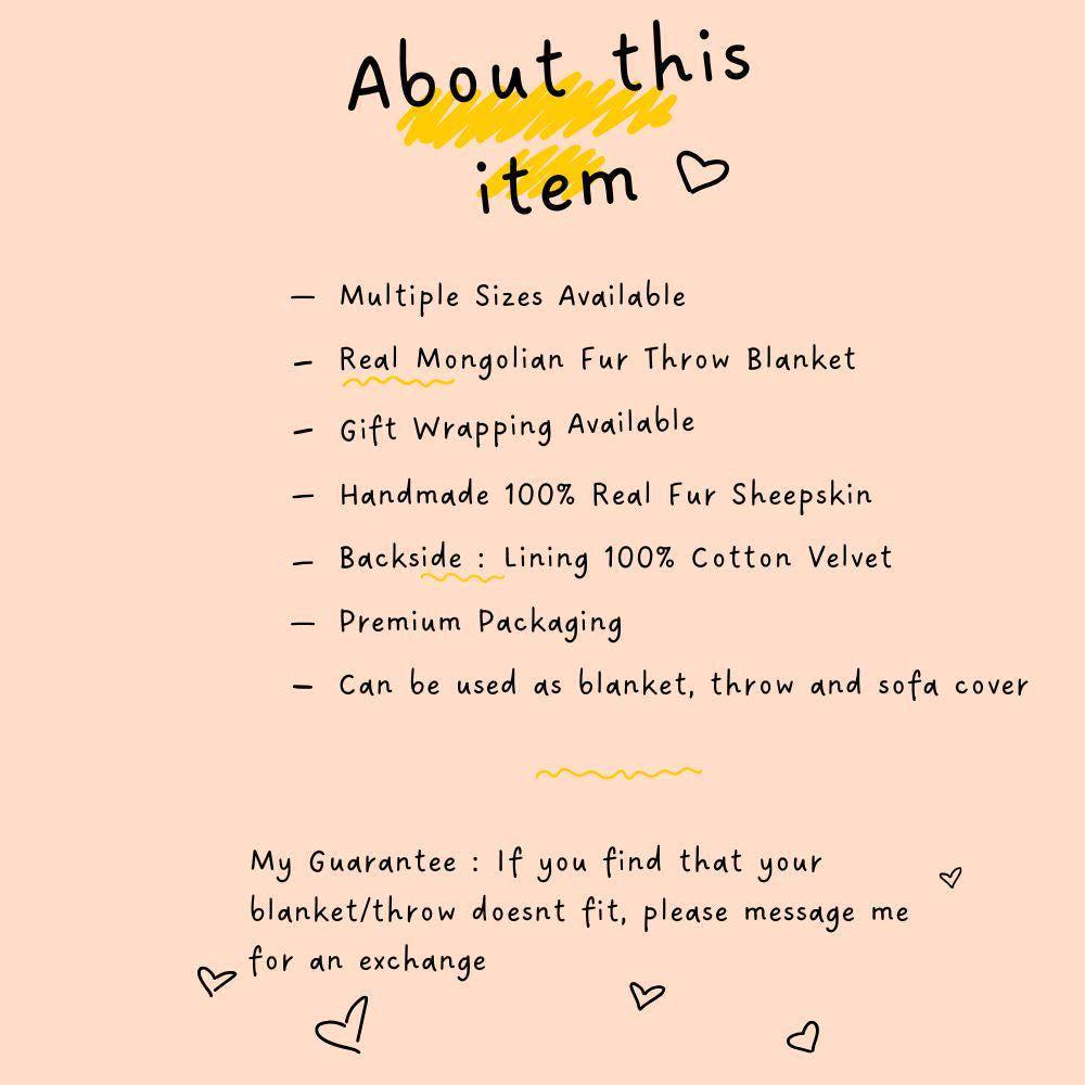 Lovingly crafted by hand, this real Sheepskin Mongolian fur blanket throw was created with chilly days in mind.
