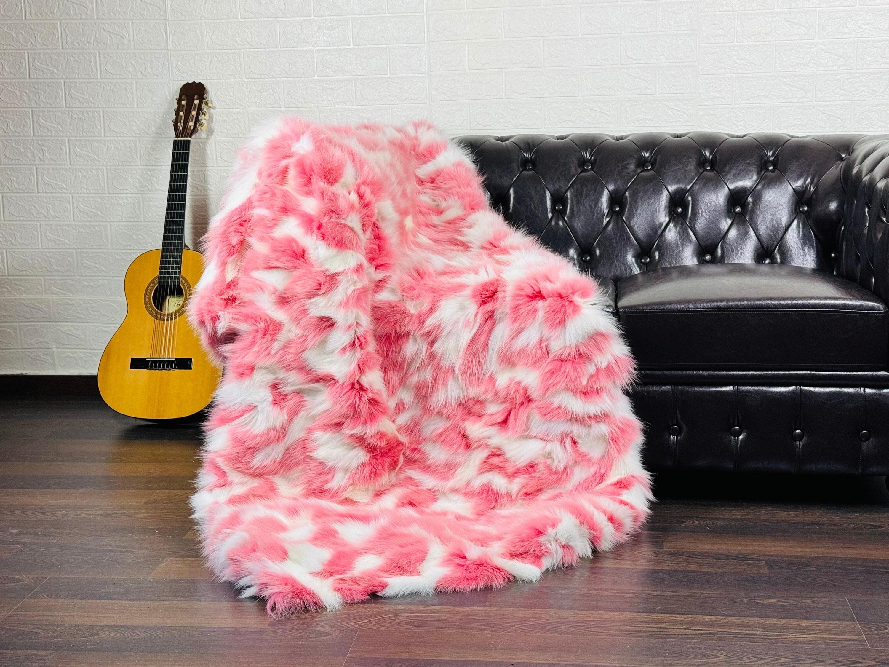 ● 1x Fox Fur Throw Blanket Pink White Combination