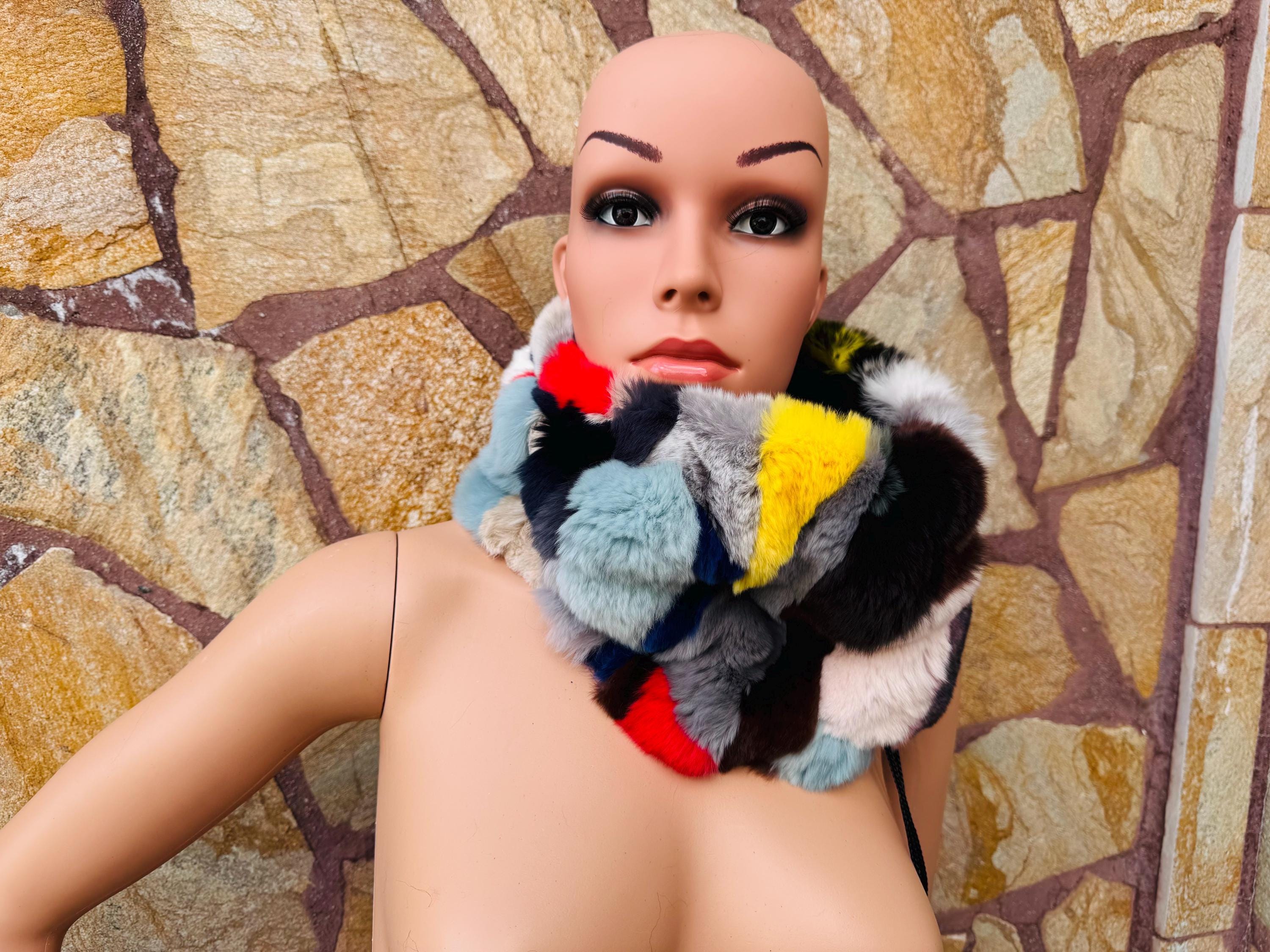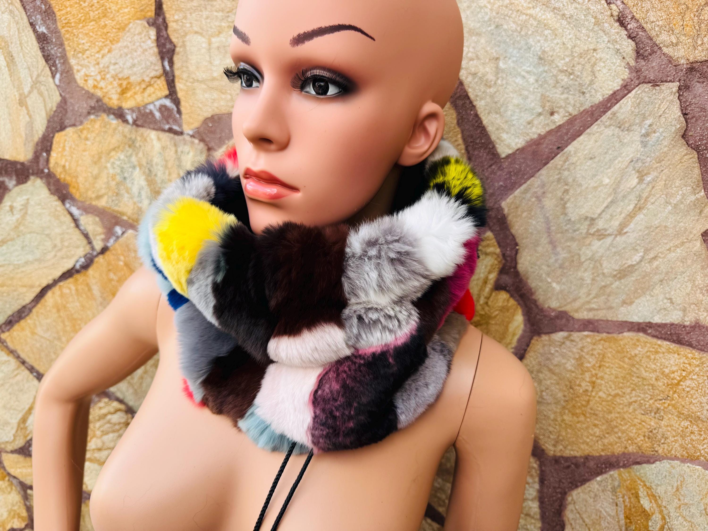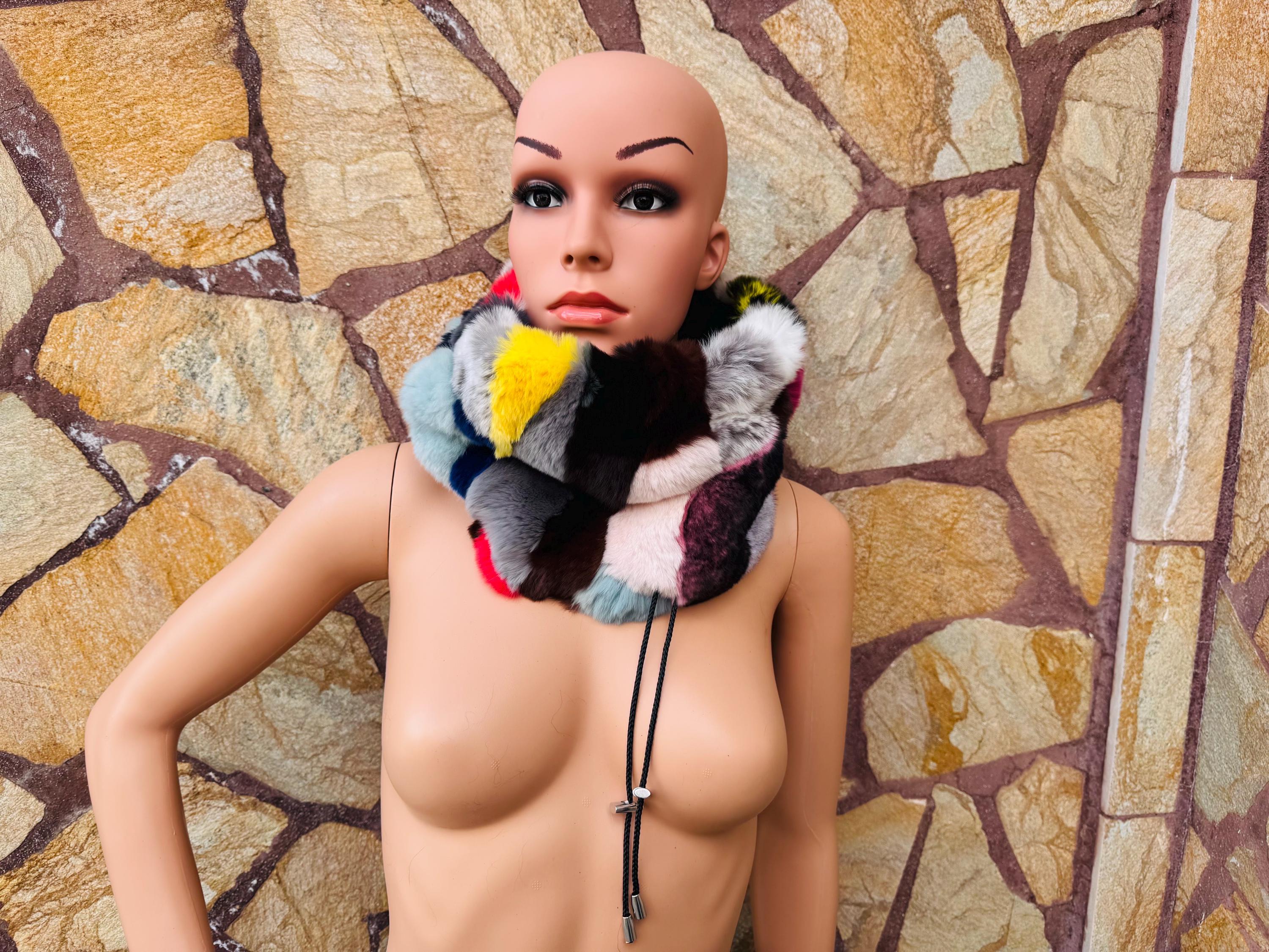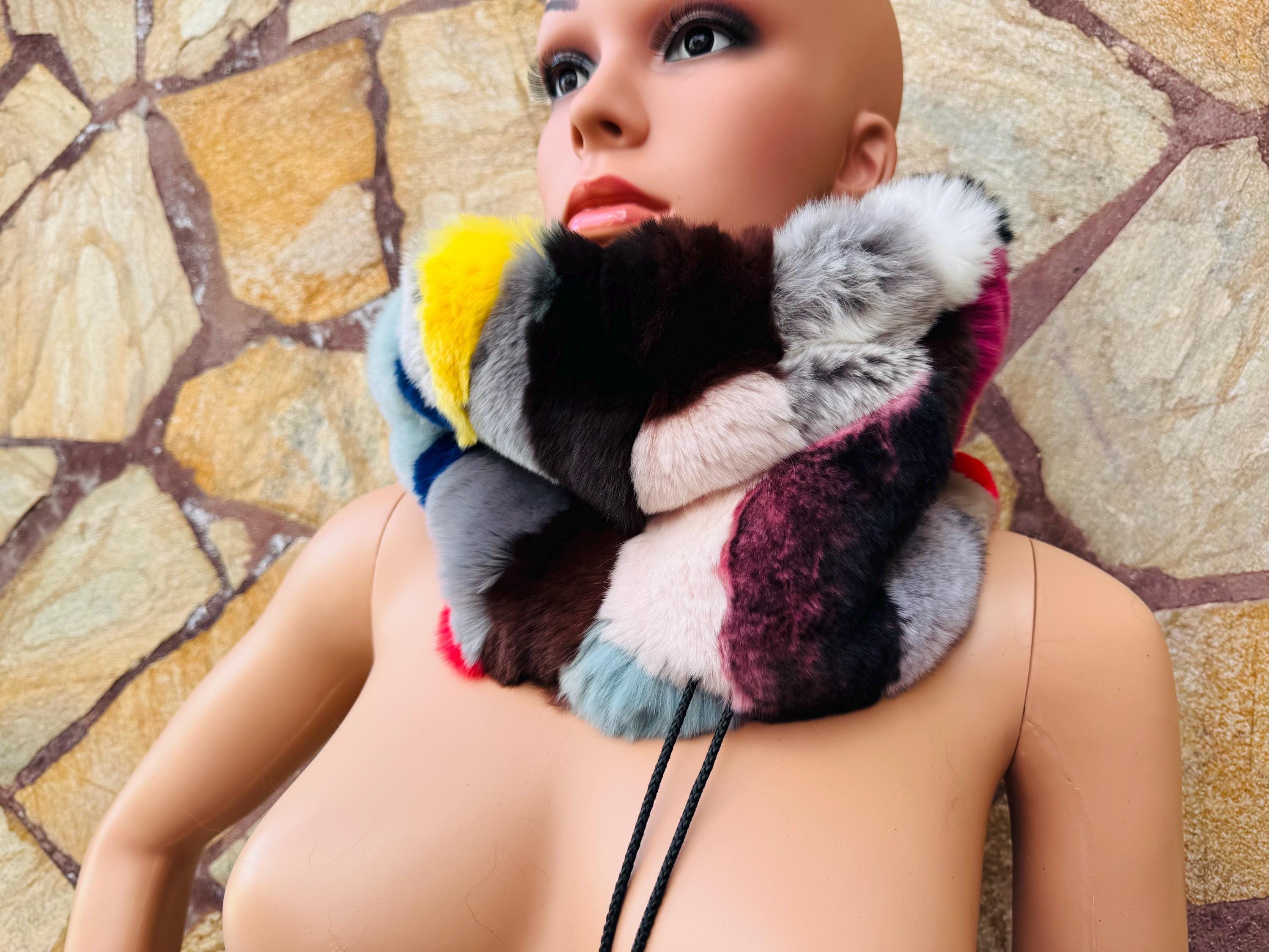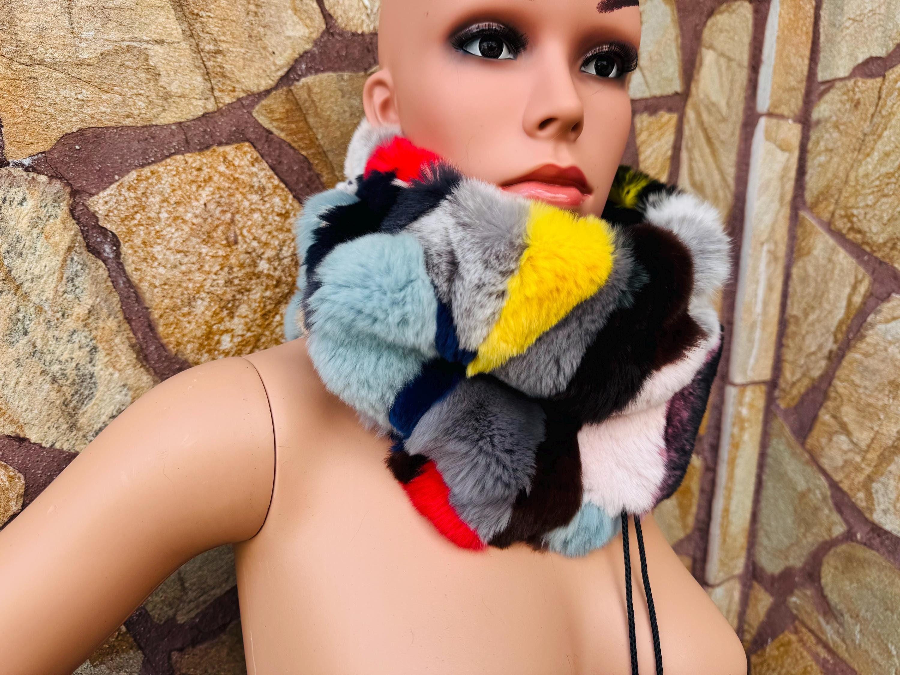 Luxury Multicolor Rex Rabbit Fur Scarf Neck Warmer