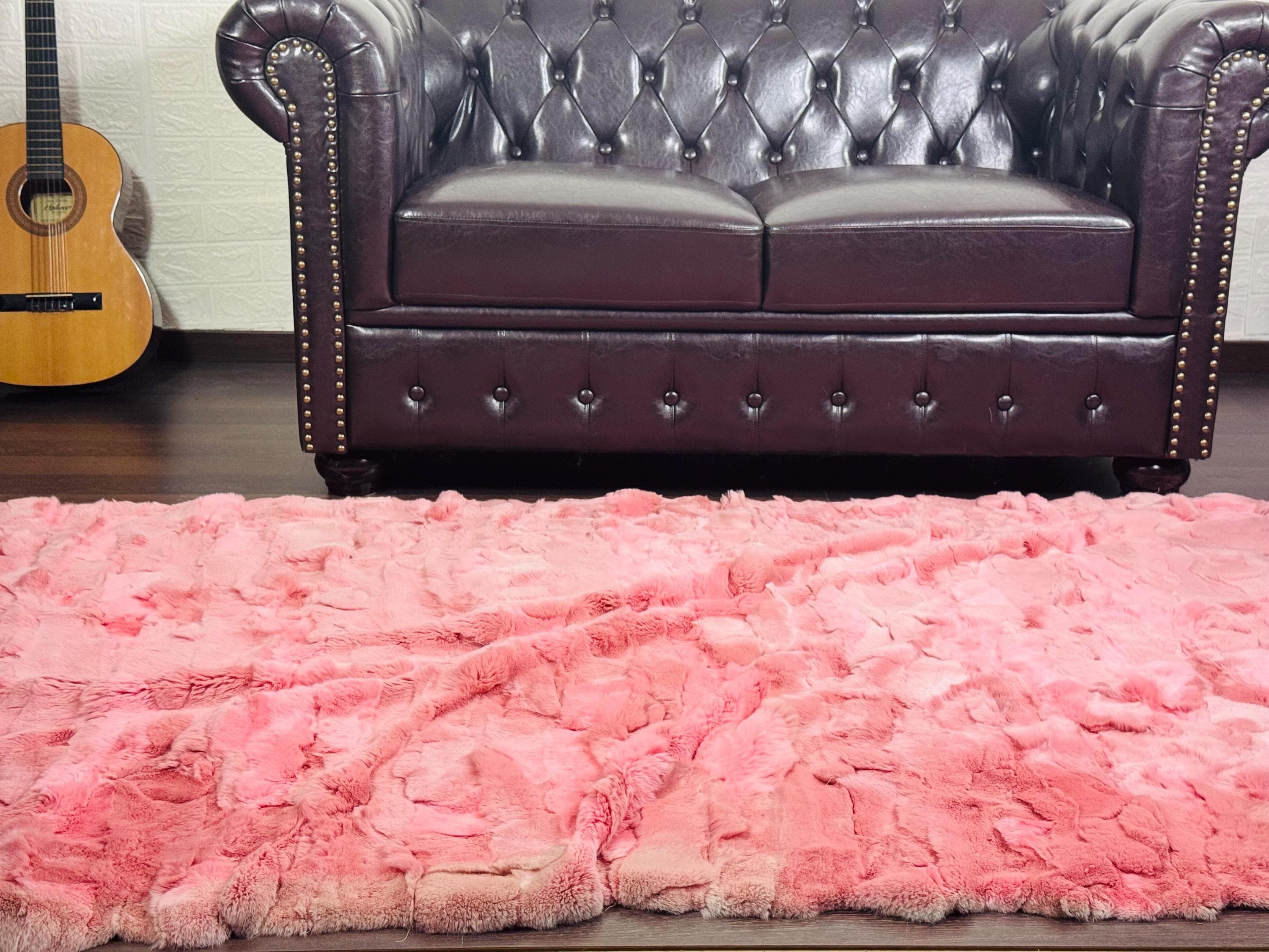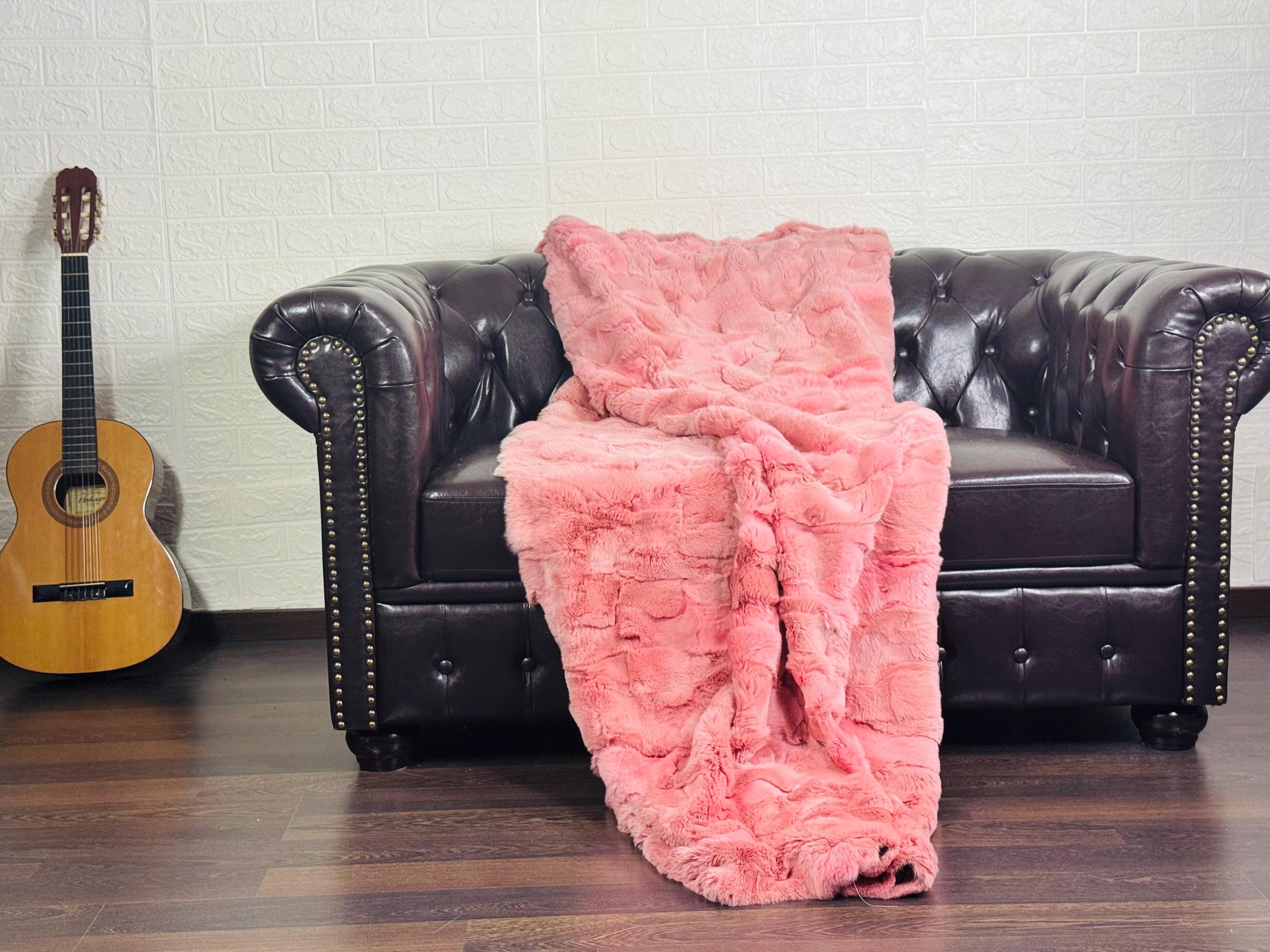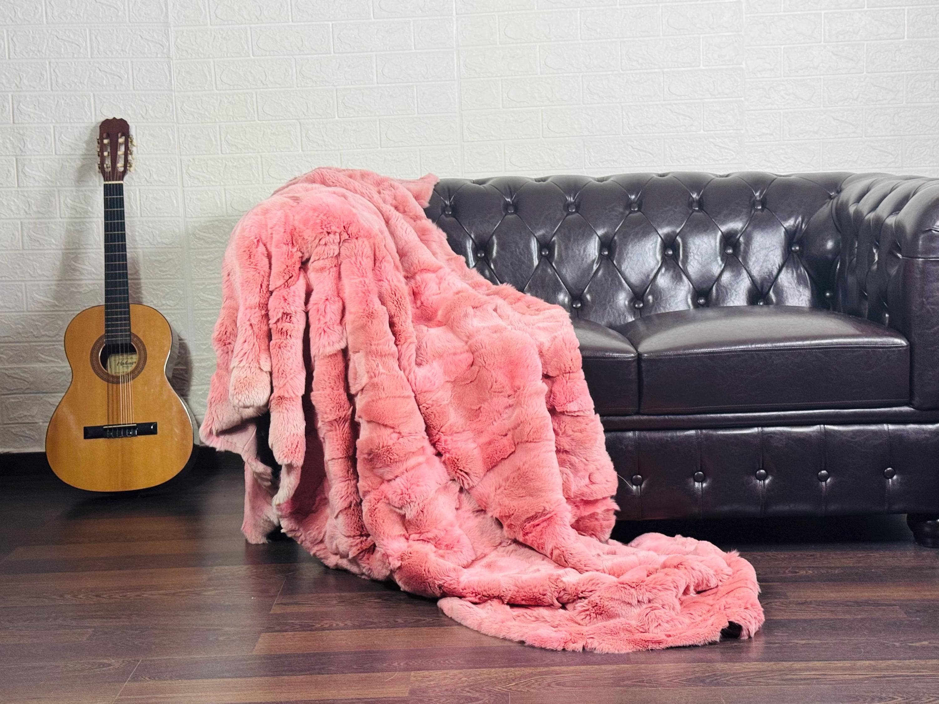 Luxurious Rex Rabbit Fur Blanket Throw Pink • Personalized Handmade Fur Sofa Cover n Bedspread • Vintage Rabbit fur Throw Blanket