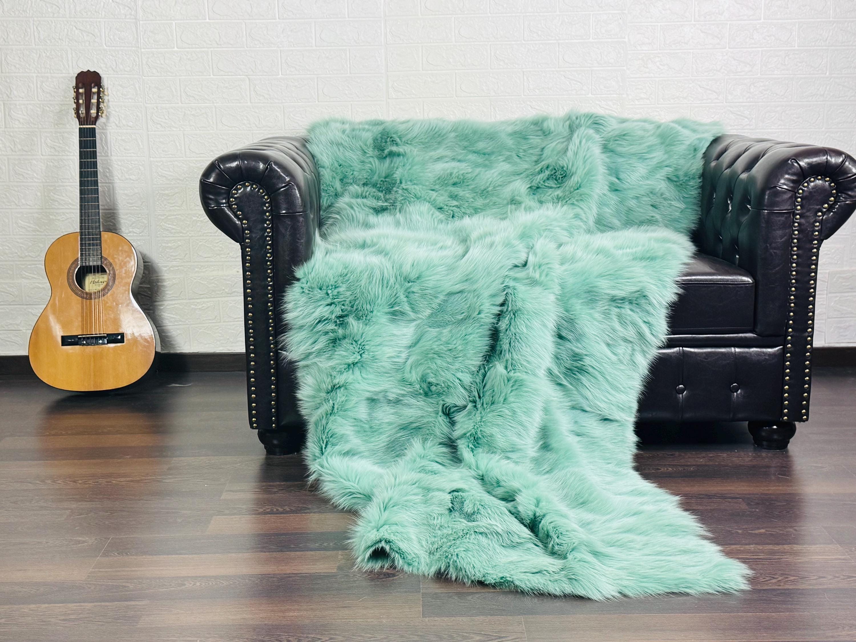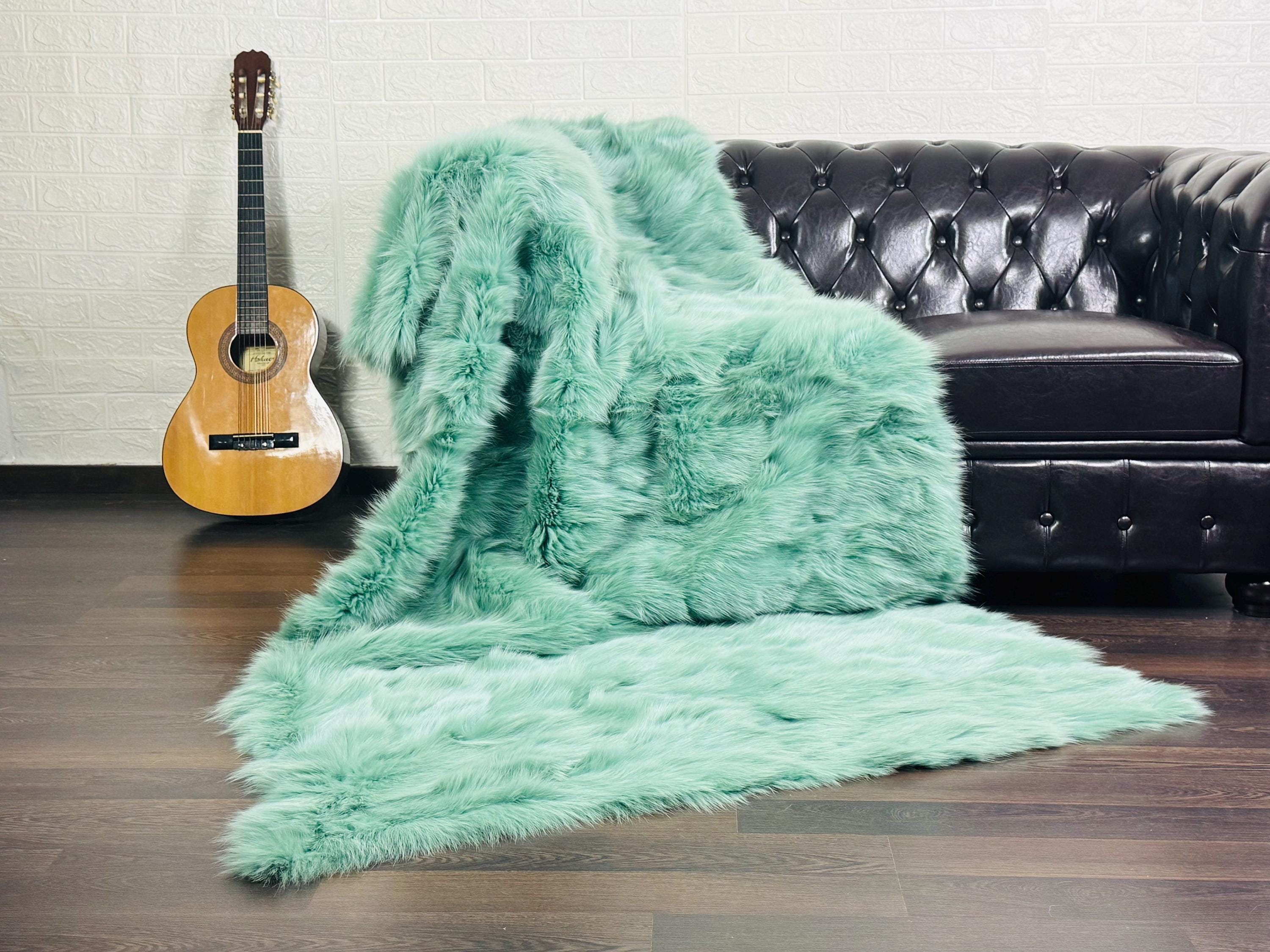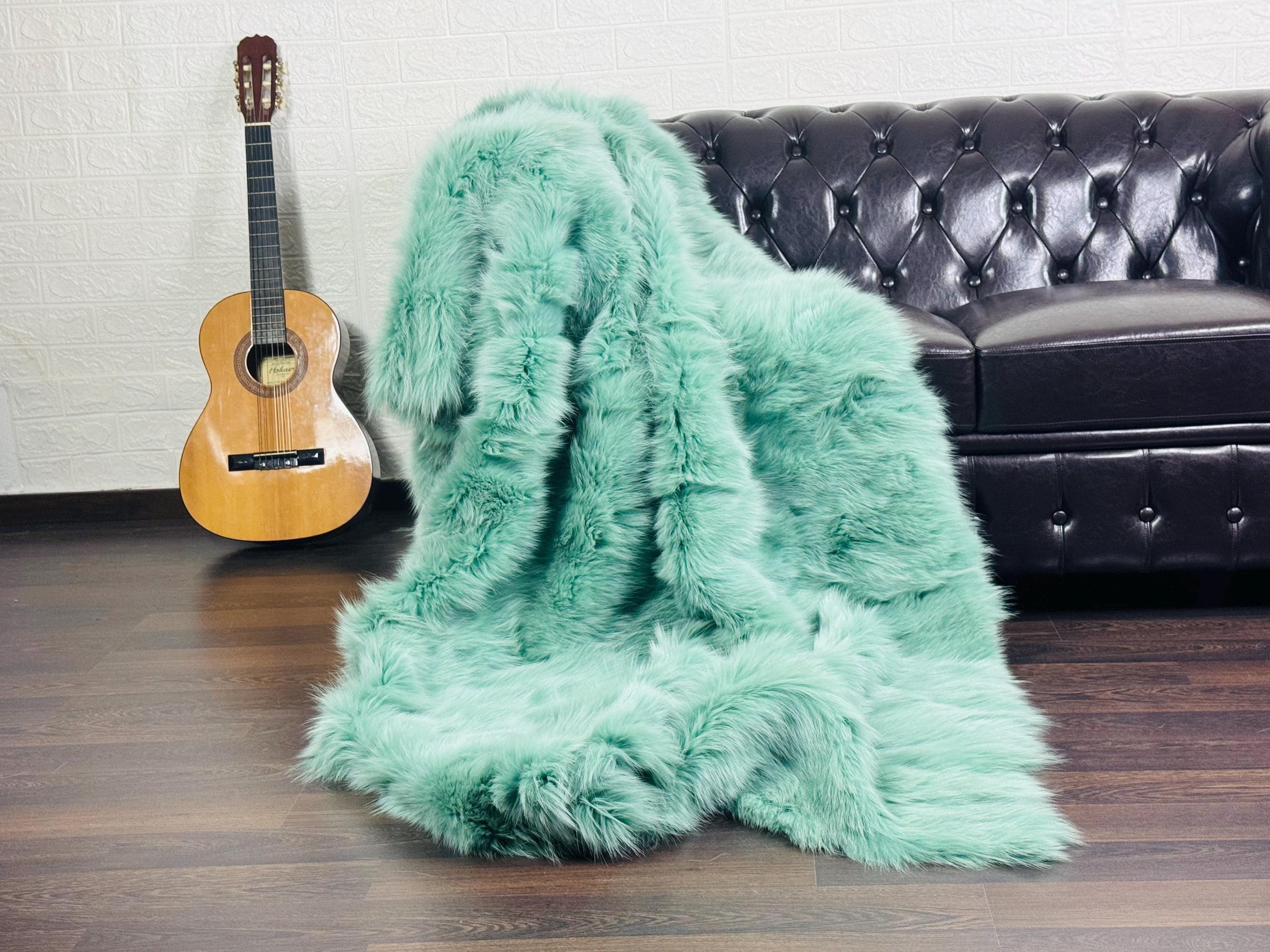 Handmade Real Green Fox Fur Blanket that can be used as a throw as well. Perfect for Bedspread or Sofa Cover.