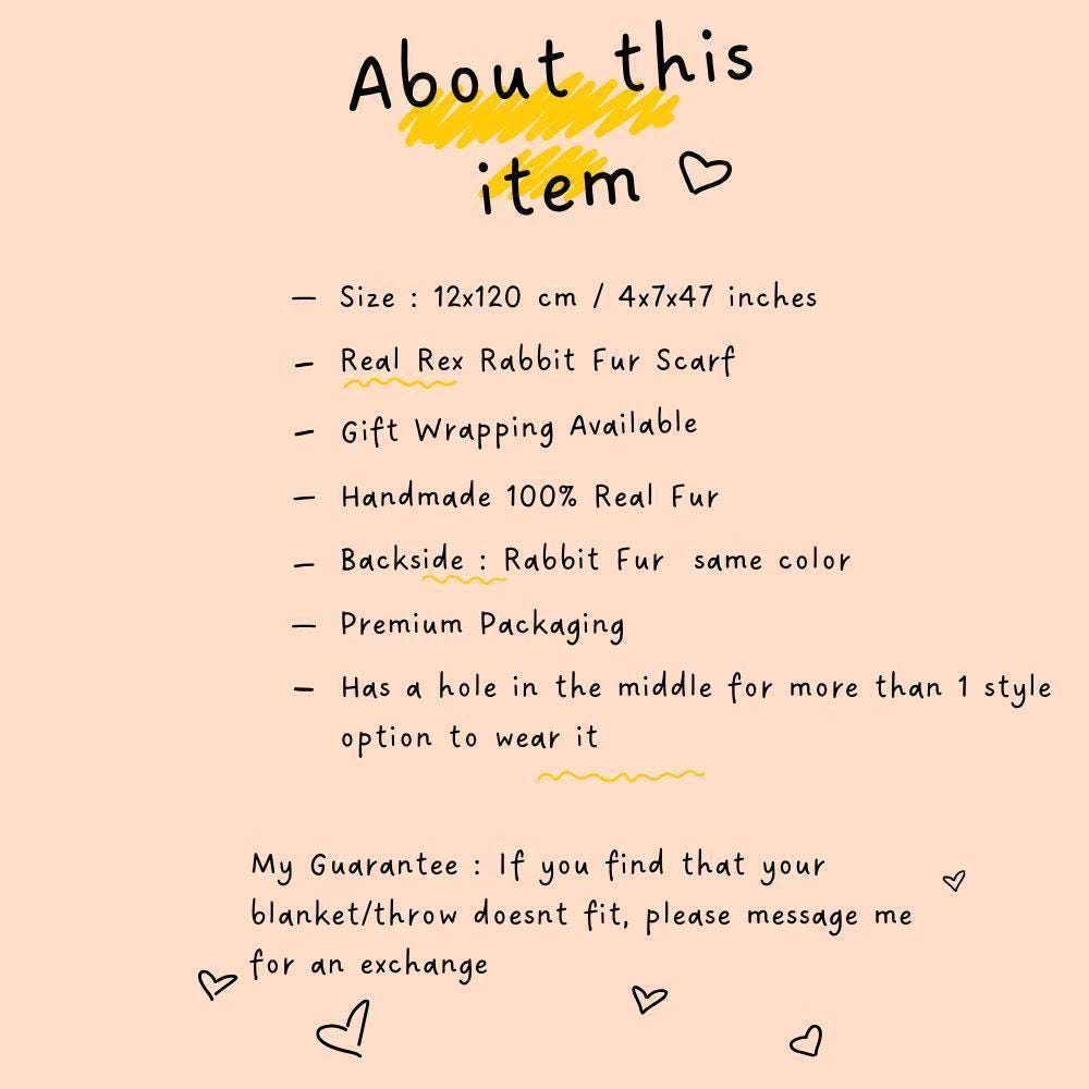 "I absolutely love this rabbit fur scarf! The quality is outstanding—it's incredibly soft, lightweight, and so warm. It feels luxurious and adds a touch of elegance to any outfit. Perfect for both casual and formal occasions. I’ve received so many compliments every time I wear it! Highly recommend for anyone looking for a chic and cozy winter accessory."⭐️⭐️⭐️⭐️⭐️ Stacey P.