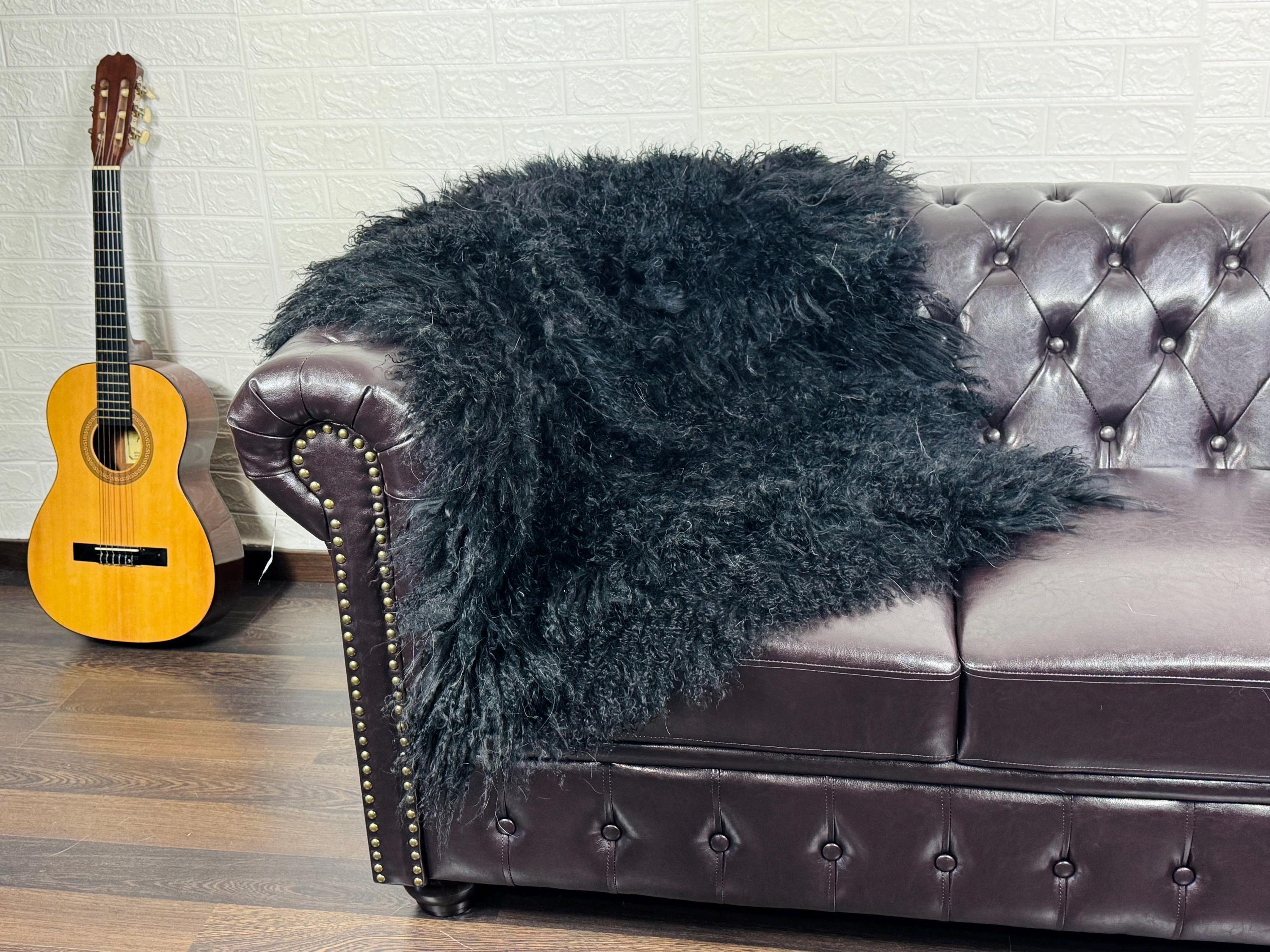 ● 1x Genuine Sheepskin Mongolian Fur Fur Blanket In Black