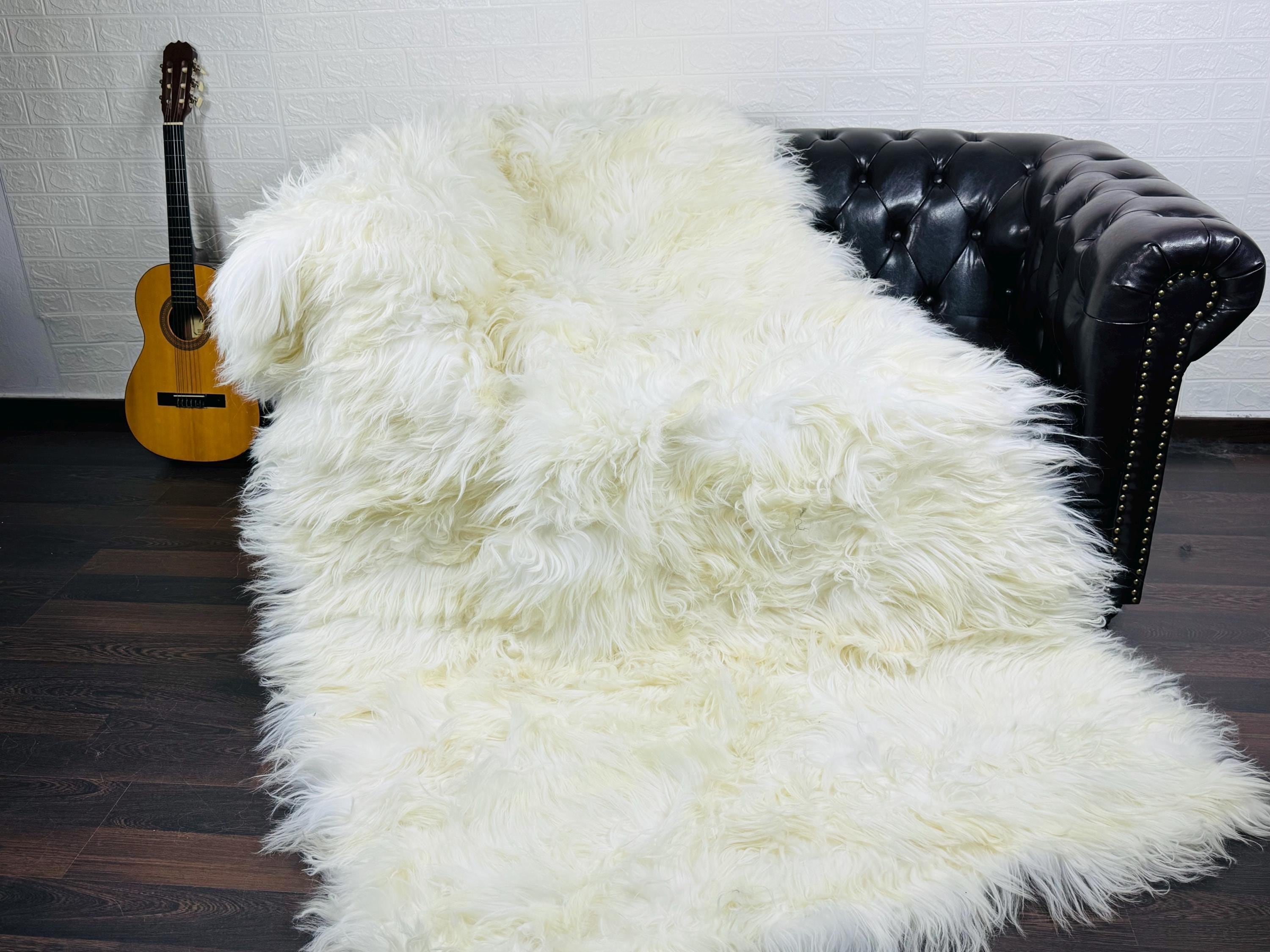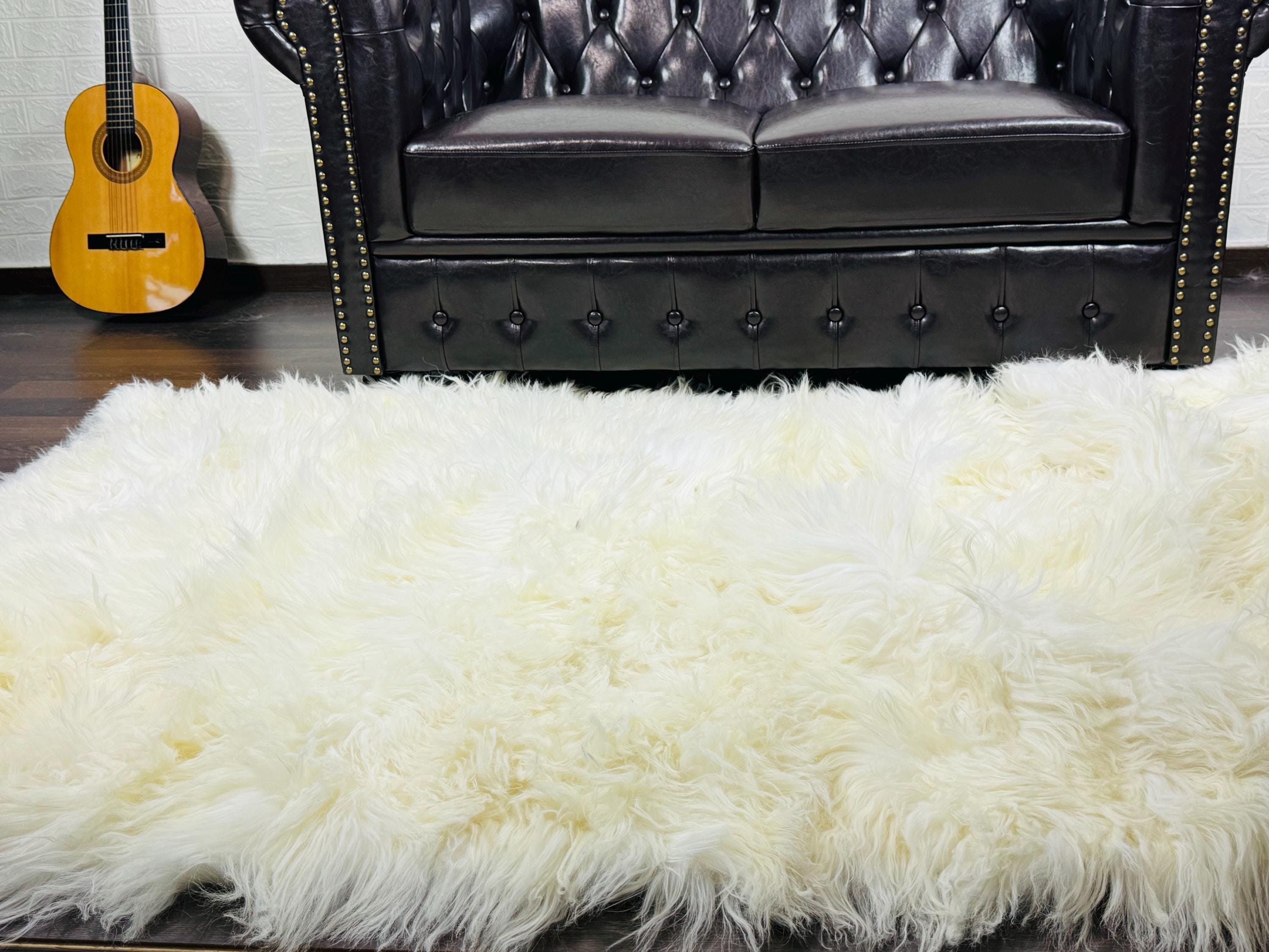 Handmade Real Off White Sheepskin Mongolian Fur Blanket that can be used as a throw as well. Perfect for Bedspread or Sofa Cover.