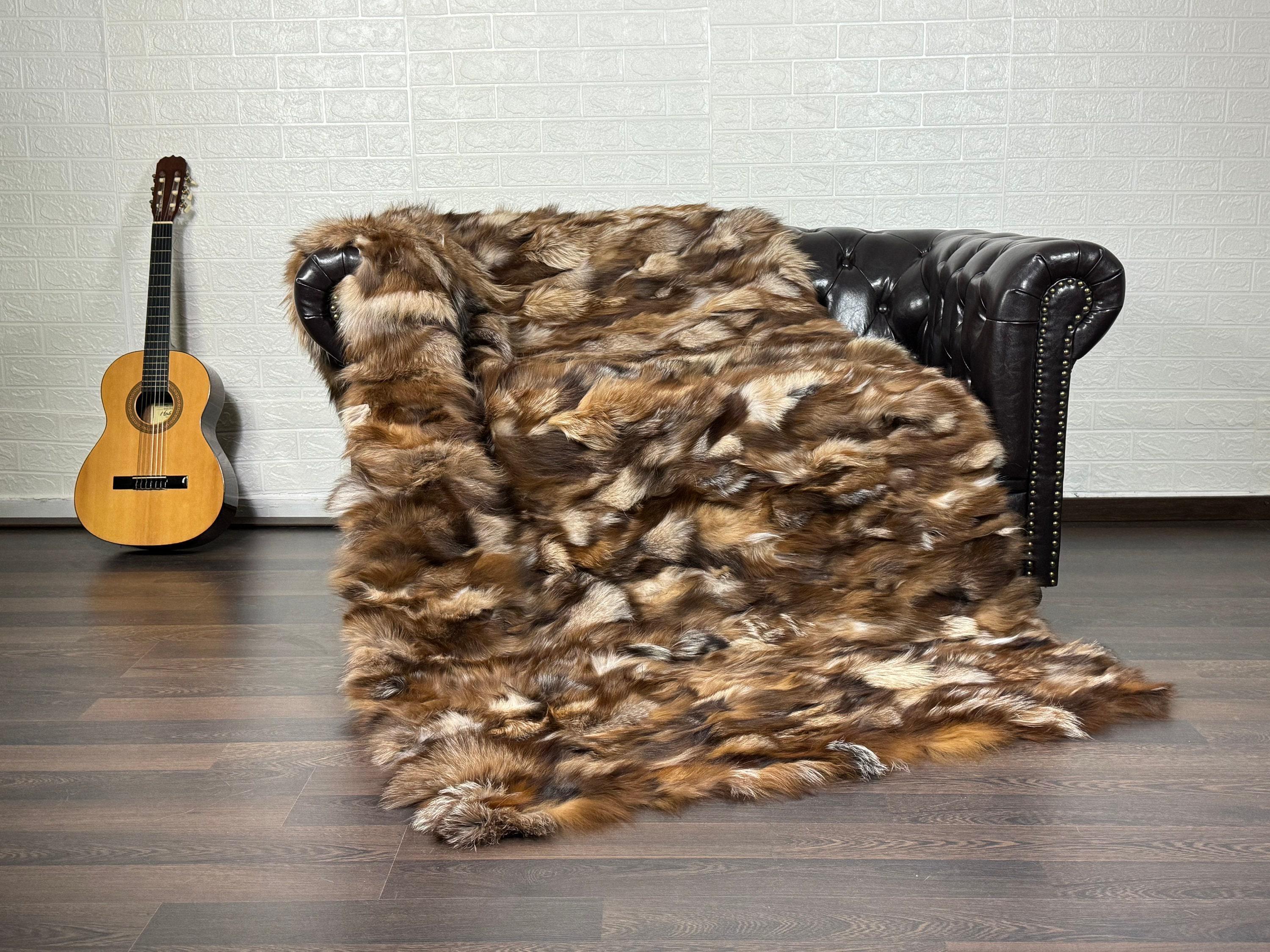 ● 1x Genuine Fox Fur Blanket In Natural Colour