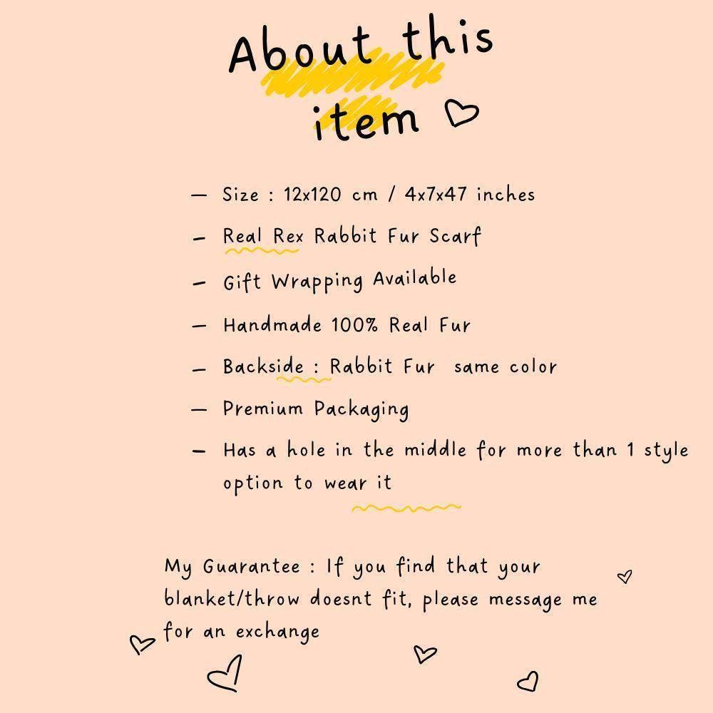 "I absolutely love this rabbit fur scarf! The quality is outstanding—it's incredibly soft, lightweight, and so warm. It feels luxurious and adds a touch of elegance to any outfit. Perfect for both casual and formal occasions. I’ve received so many compliments every time I wear it! Highly recommend for anyone looking for a chic and cozy winter accessory."⭐️⭐️⭐️⭐️⭐️ Stacey P.