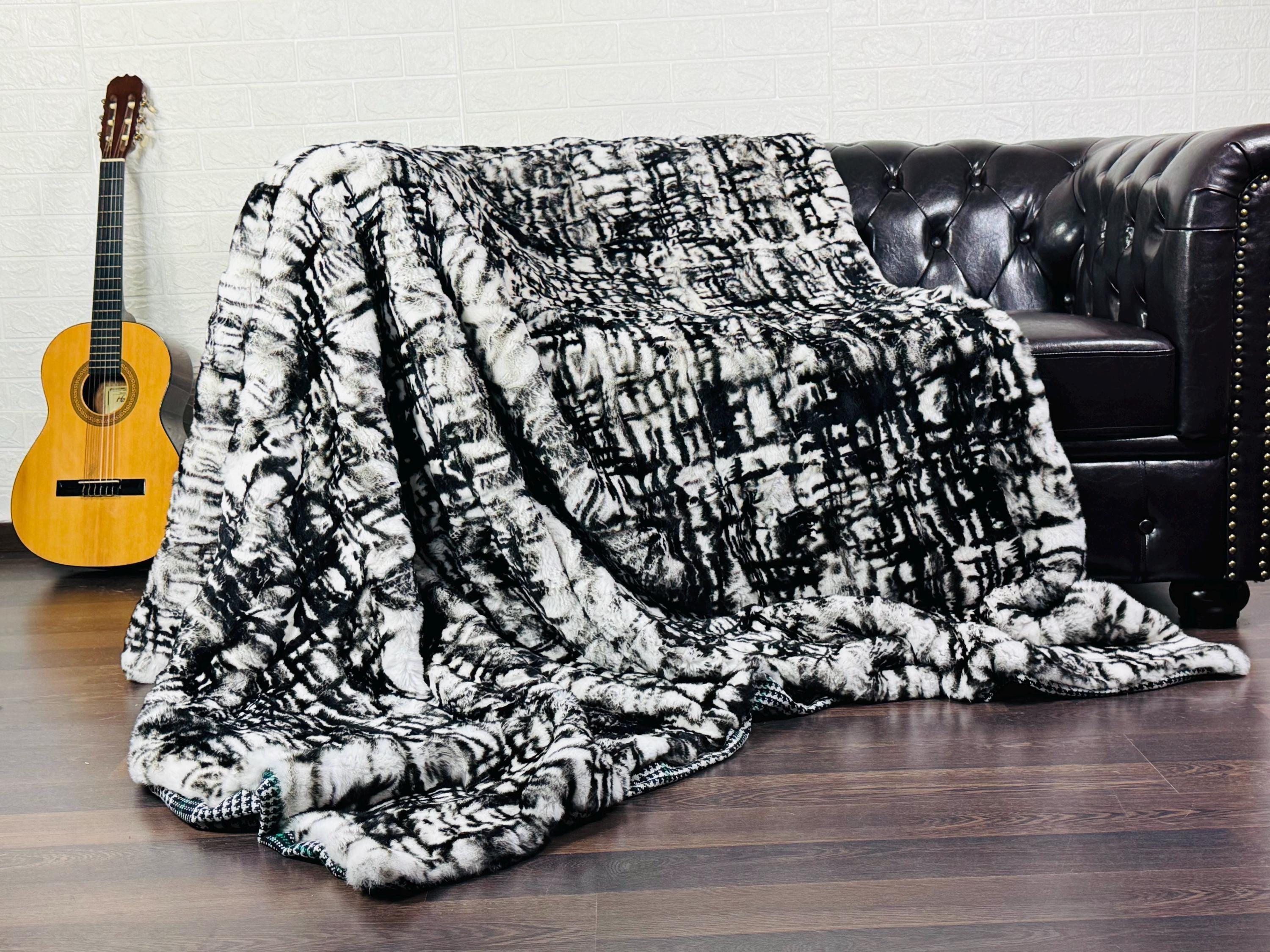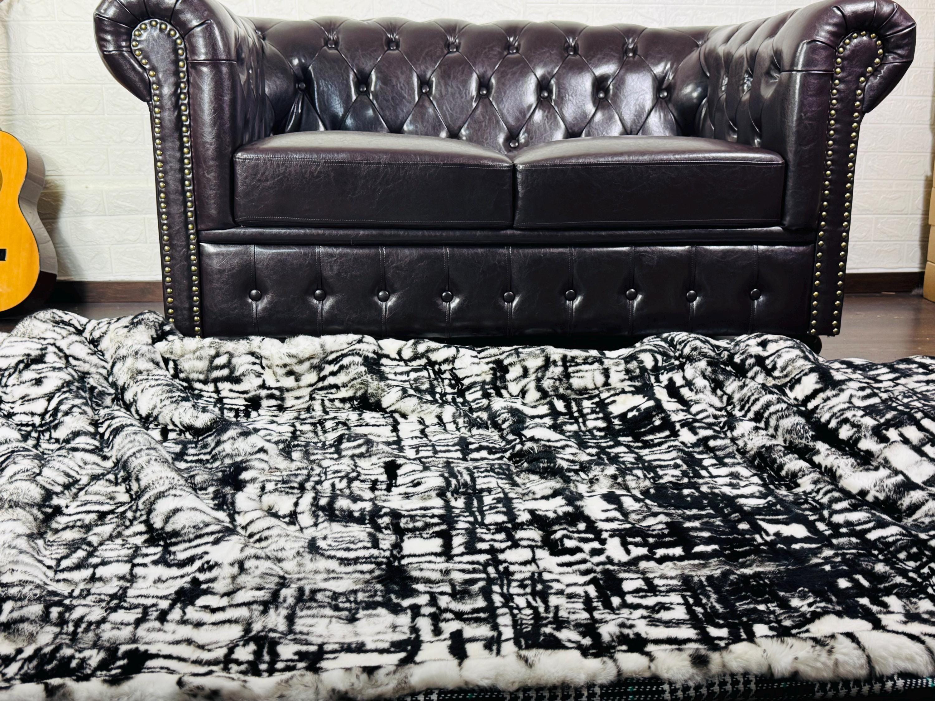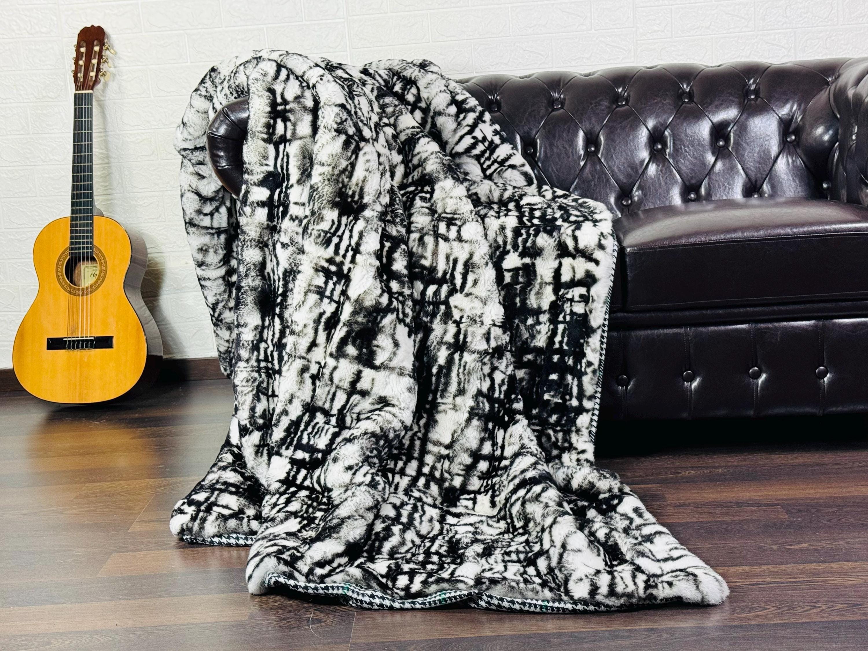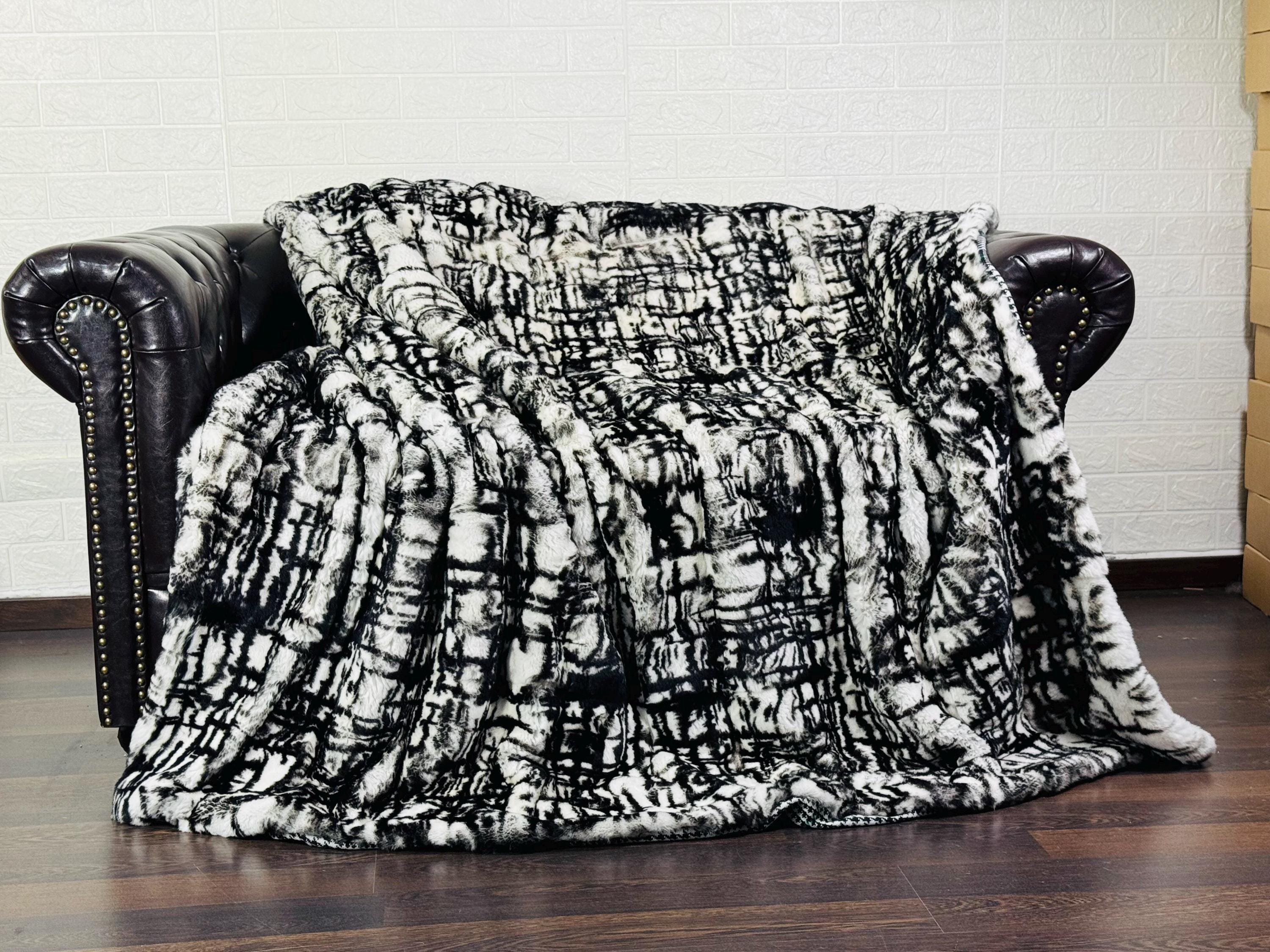 Unique Handmade real leather with the finest quality Rex Rabbit Full Skin color Labyrinth Black & White Fur Blanket can be used as a throw as well. Perfect for Bedspread or Sofa Cover.