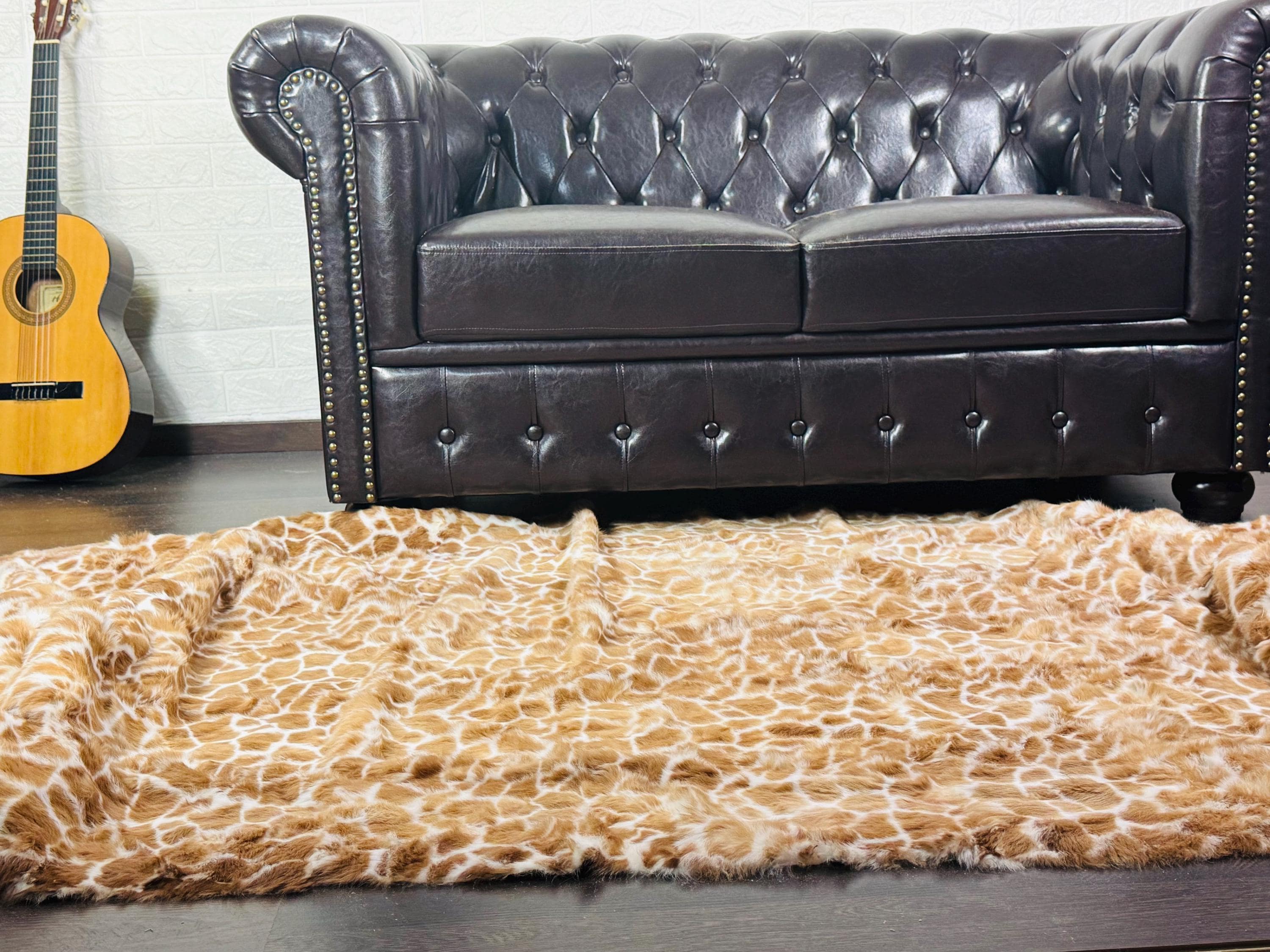 ● 1x Genuine Pelt Rabbit Fur Blanket In Camel White Brown Print