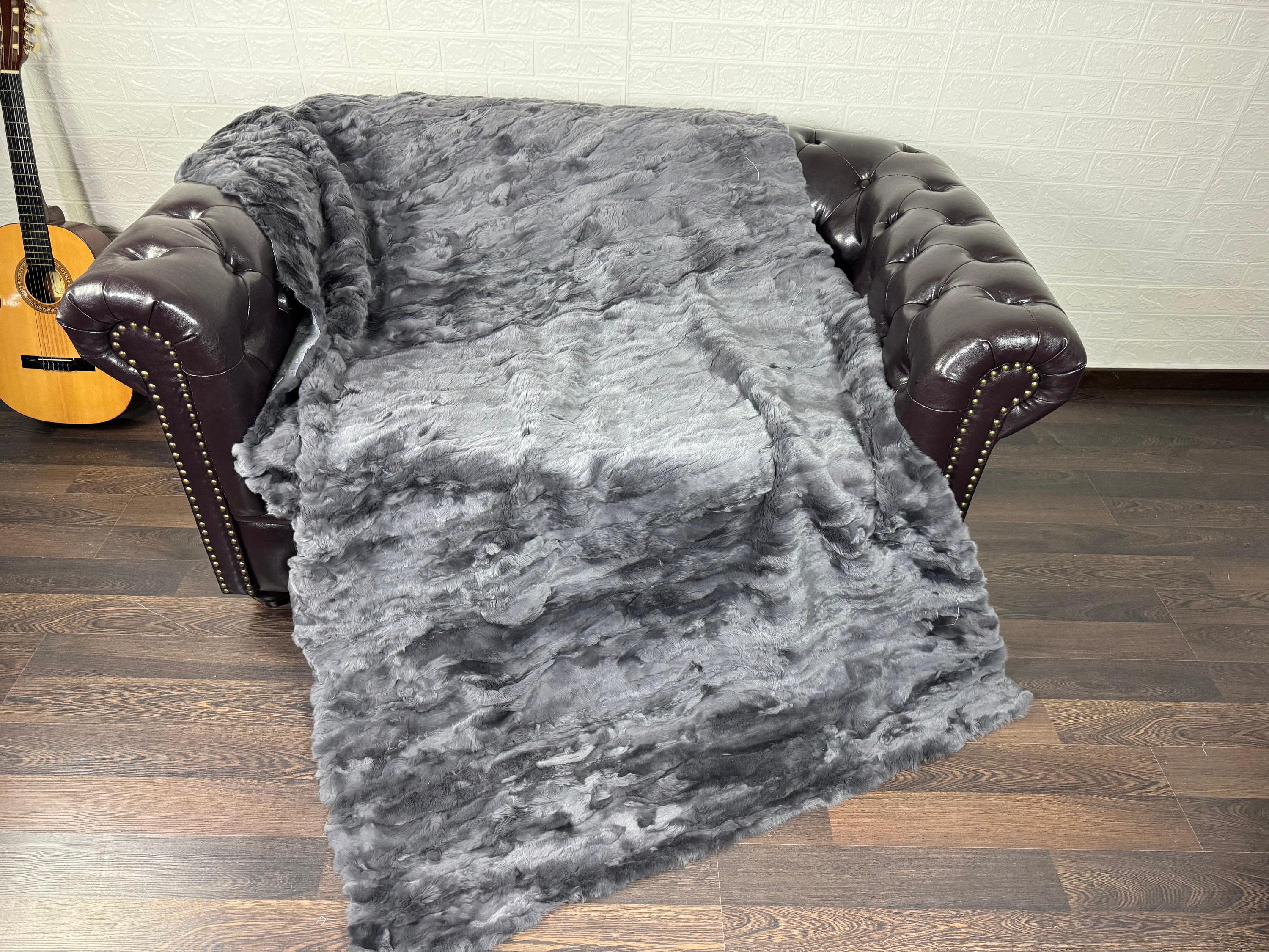 Lovingly crafted by hand, this silver real rex rabbit fur blanket throw was created with chilly days in mind.
