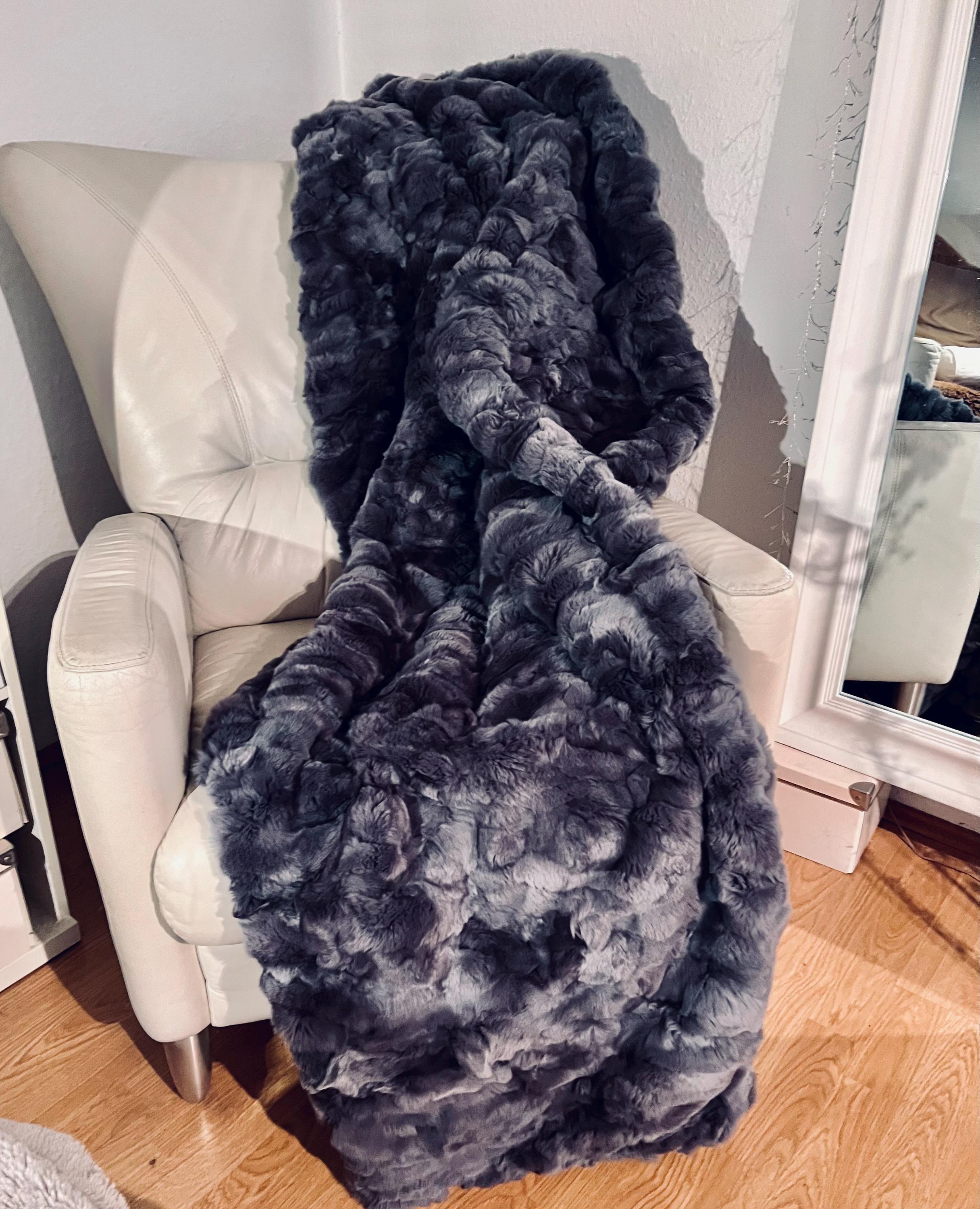 ● 1x Genuine Rex Rabbit Fur Blanket In Grey Colour