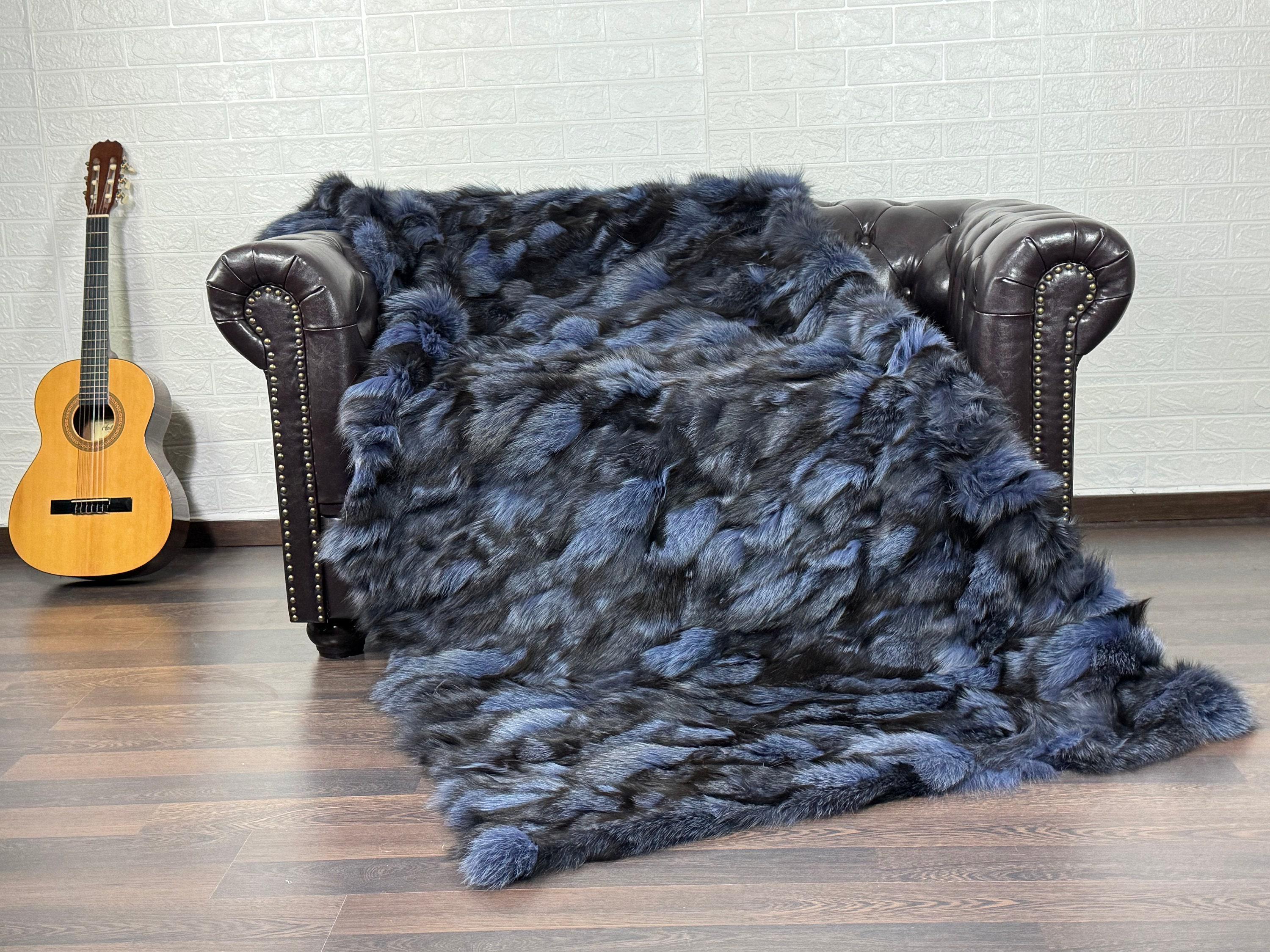 ● 1x Genuine Fox Fur Fur Blanket In Blue Black Color