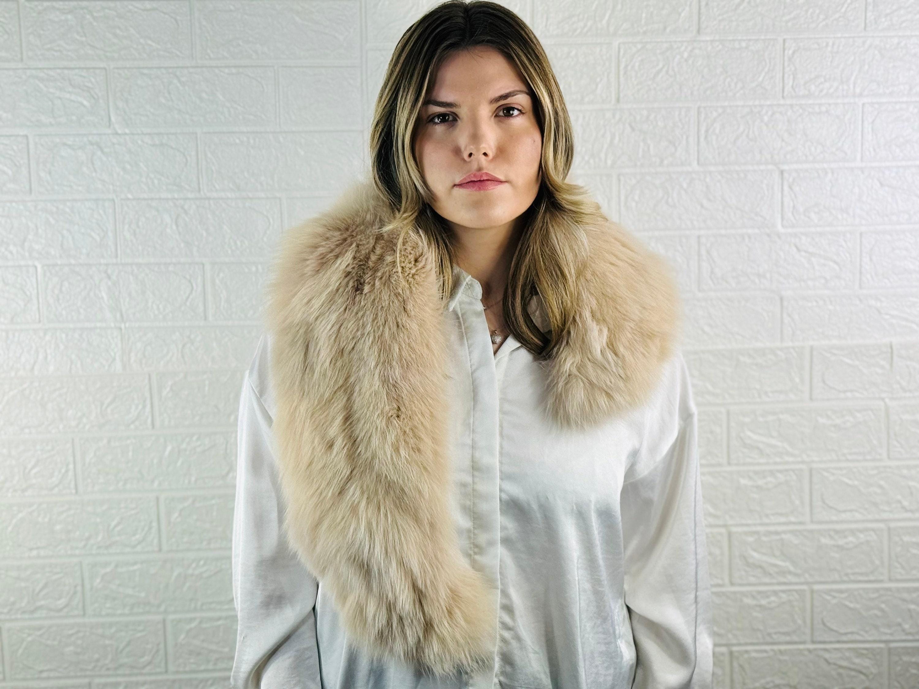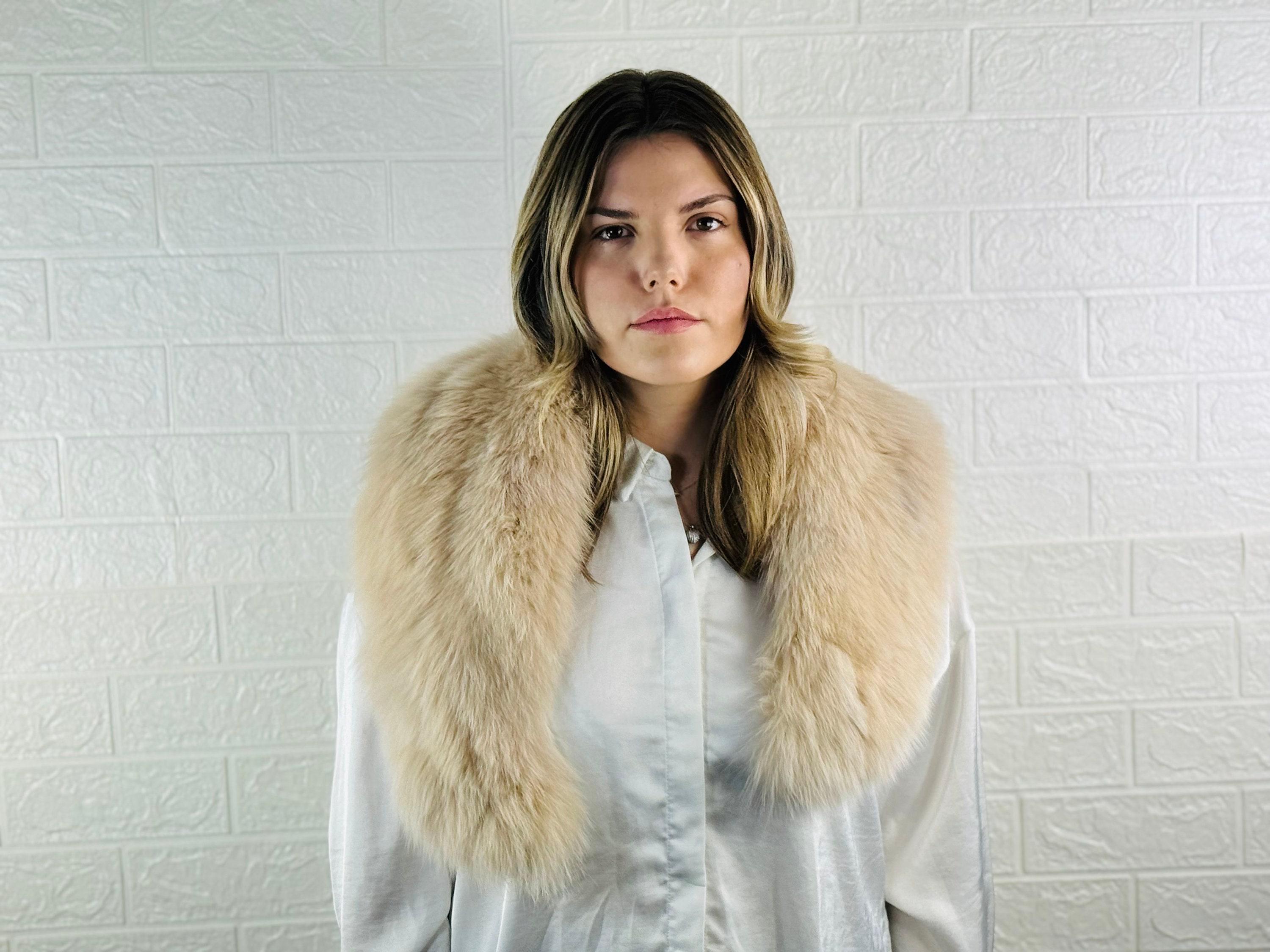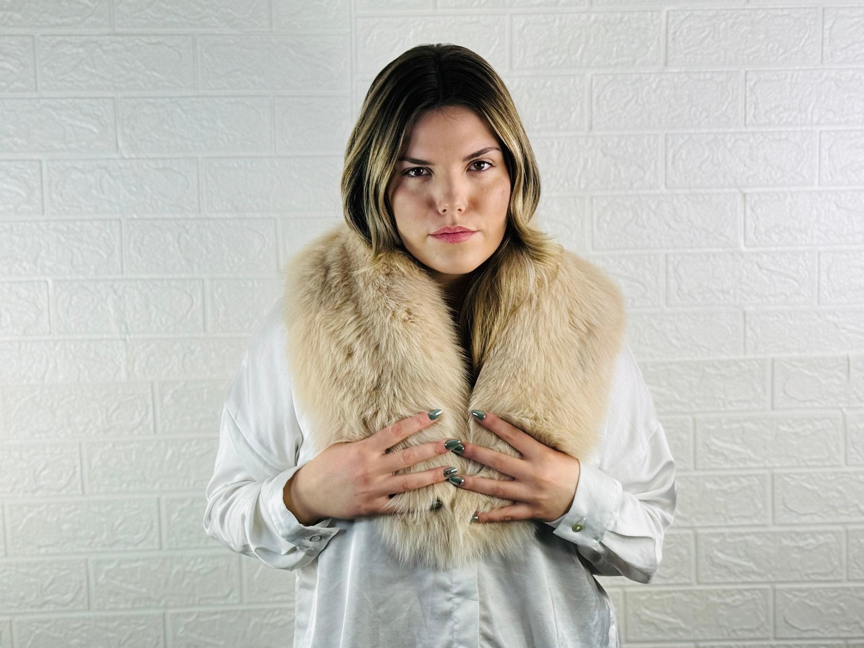 Crafted with meticulous attention to detail, this collar is made from high-quality fox fur. Its plush texture and warm design are perfect for elevating your winter wardrobe. Whether you’re attending a festive event, a cozy winter wedding, or simply looking to add flair to your everyday look, this piece is a versatile must-have.