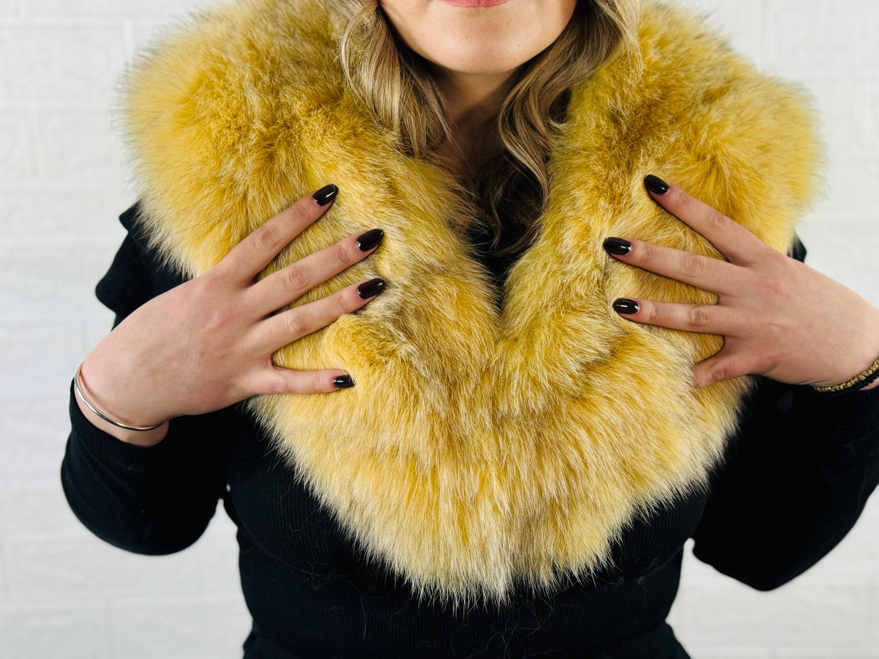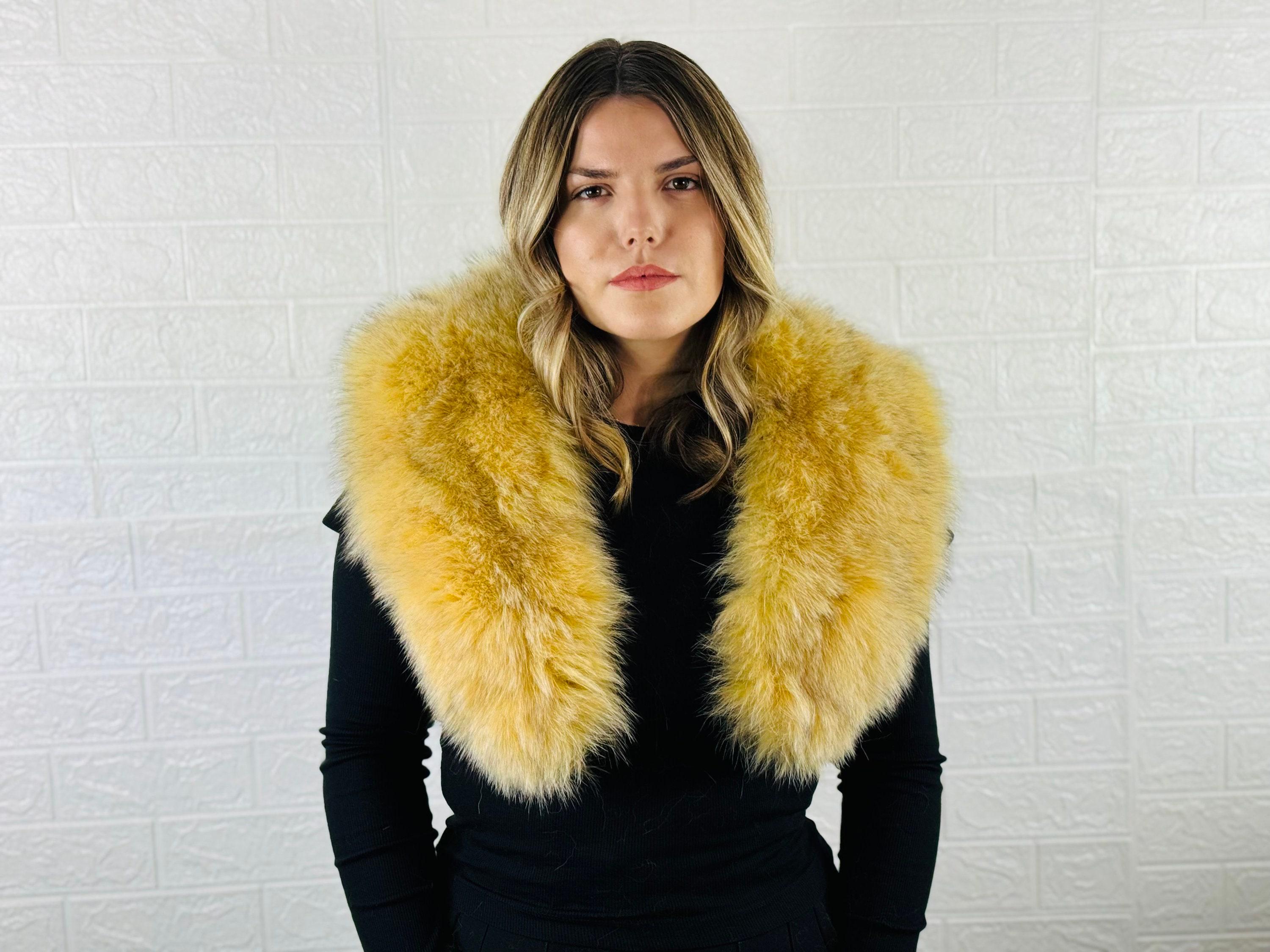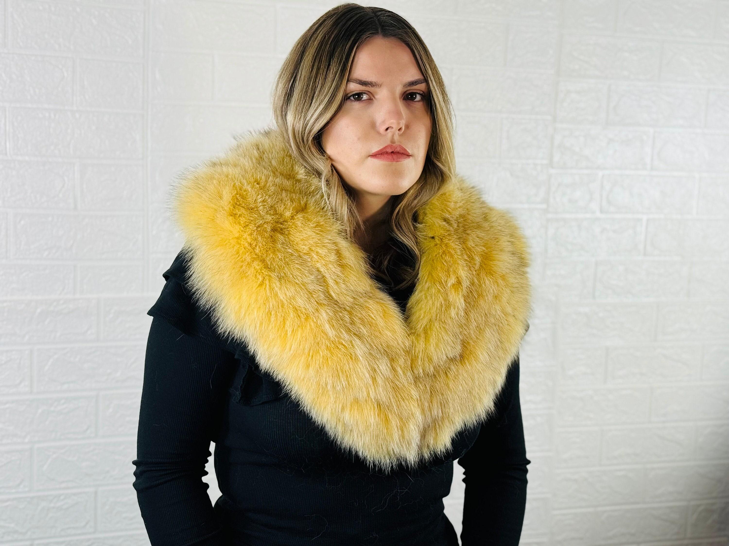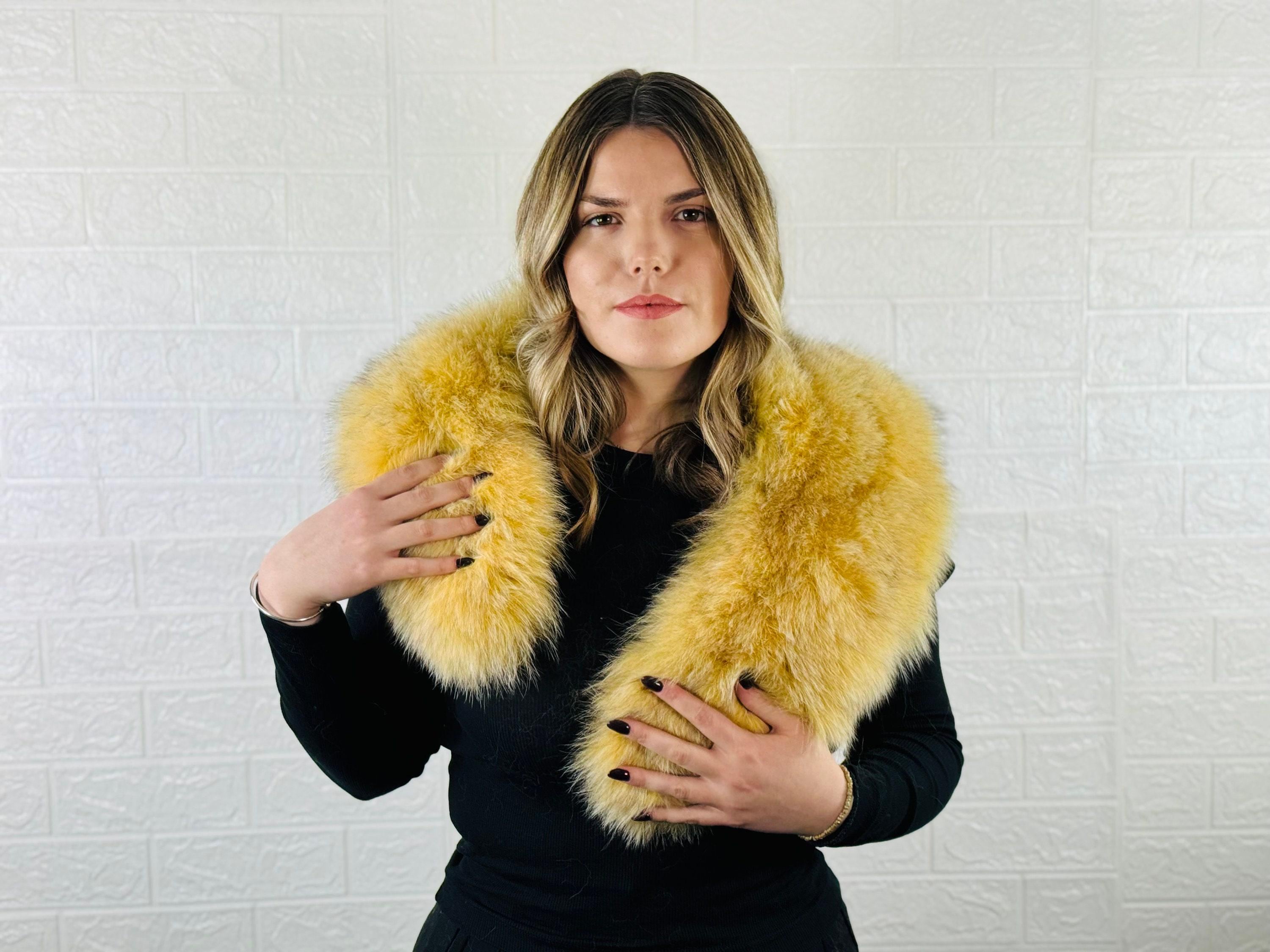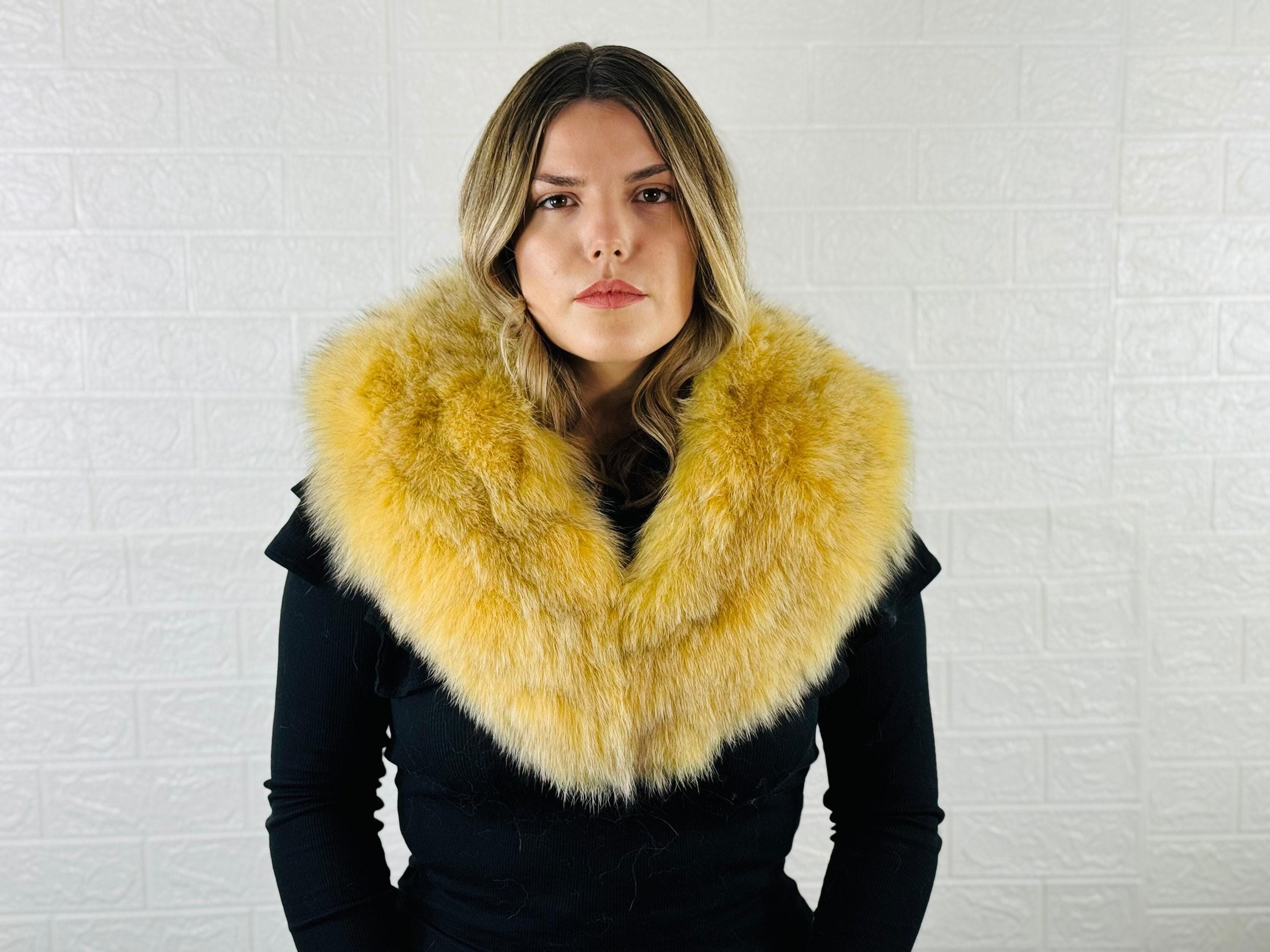 This yellow fox fur collar scarf is detachable, fluffy, and versatile, perfect for both men and women. Wear it as a neckwarmer, wrap, or stole to keep warm and stylish. A perfect gift for her!