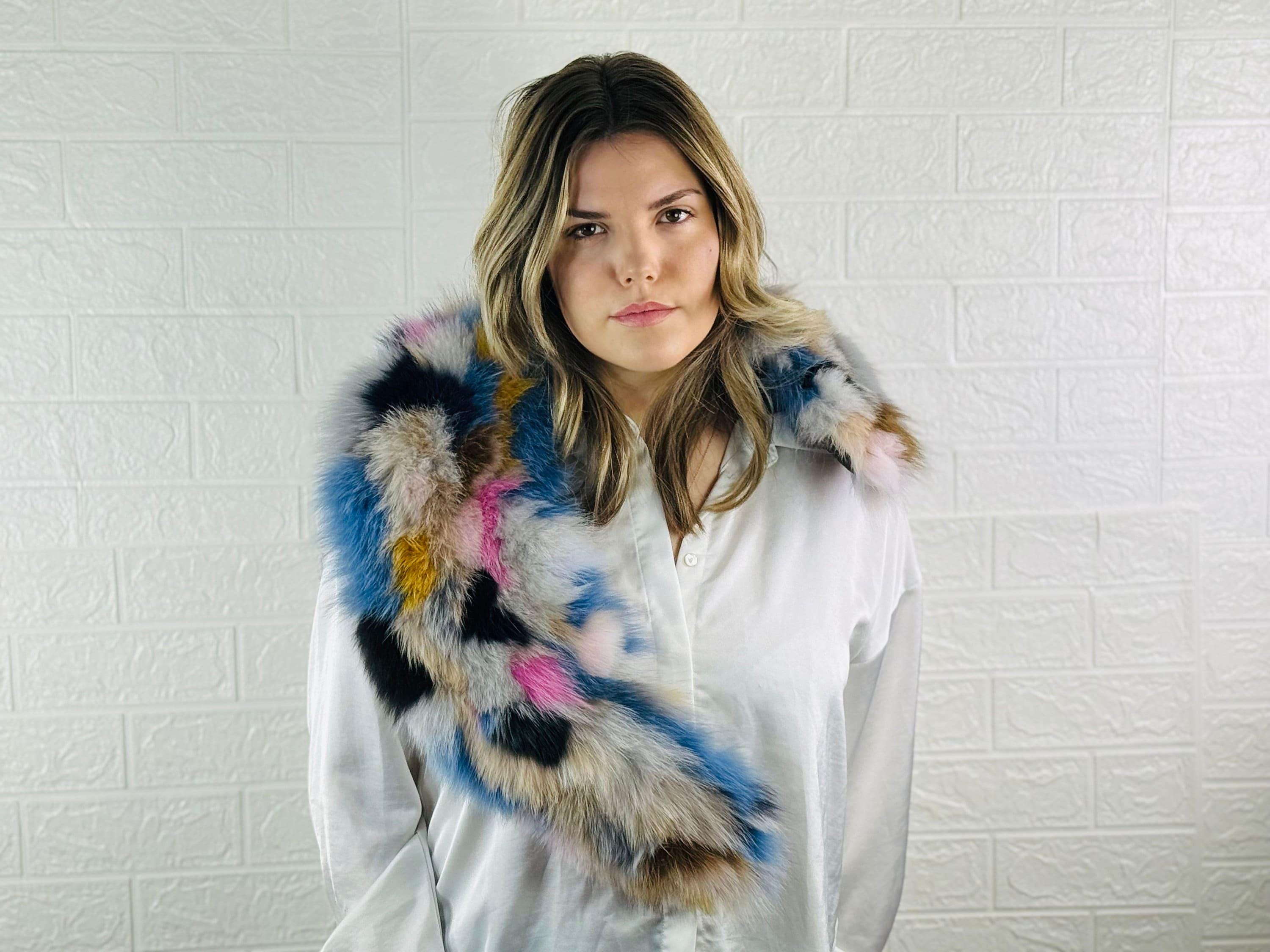 Made with multicolor fox fur, this detachable and fluffy collar scarf is versatile and stylish. It can be worn as a neckwarmer, wrap, or stole—keeping you both cozy and fashionable all winter long. The perfect gift for her!