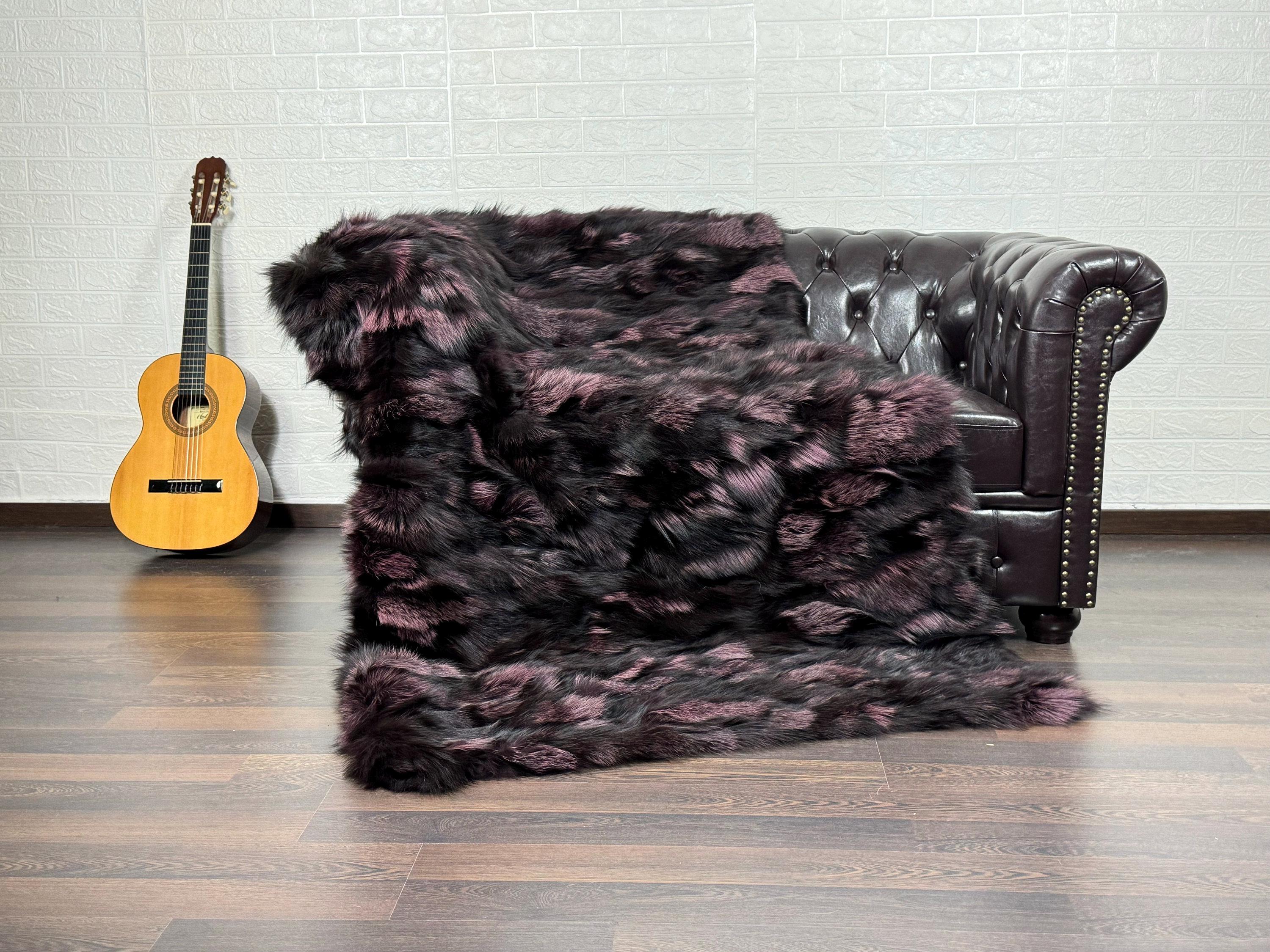 Handmade Real Purple Black Fox Fur Blanket that can be used as a throw as well. Perfect for Bedspread or Sofa Cover. 100% RISK FREE WITH MONEY BACK GUARANTEE WITHIN 14 DAYS
