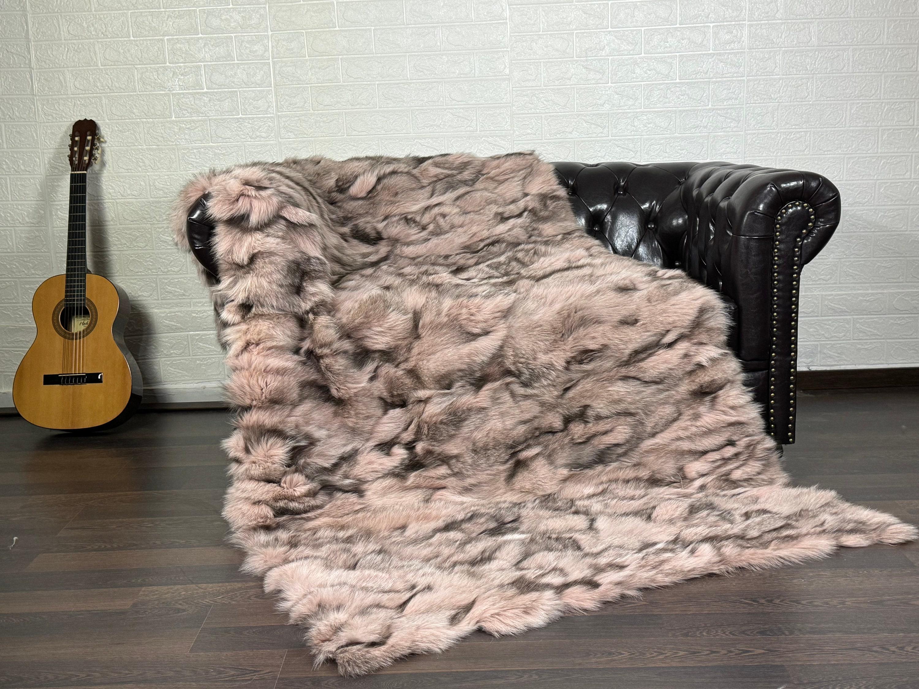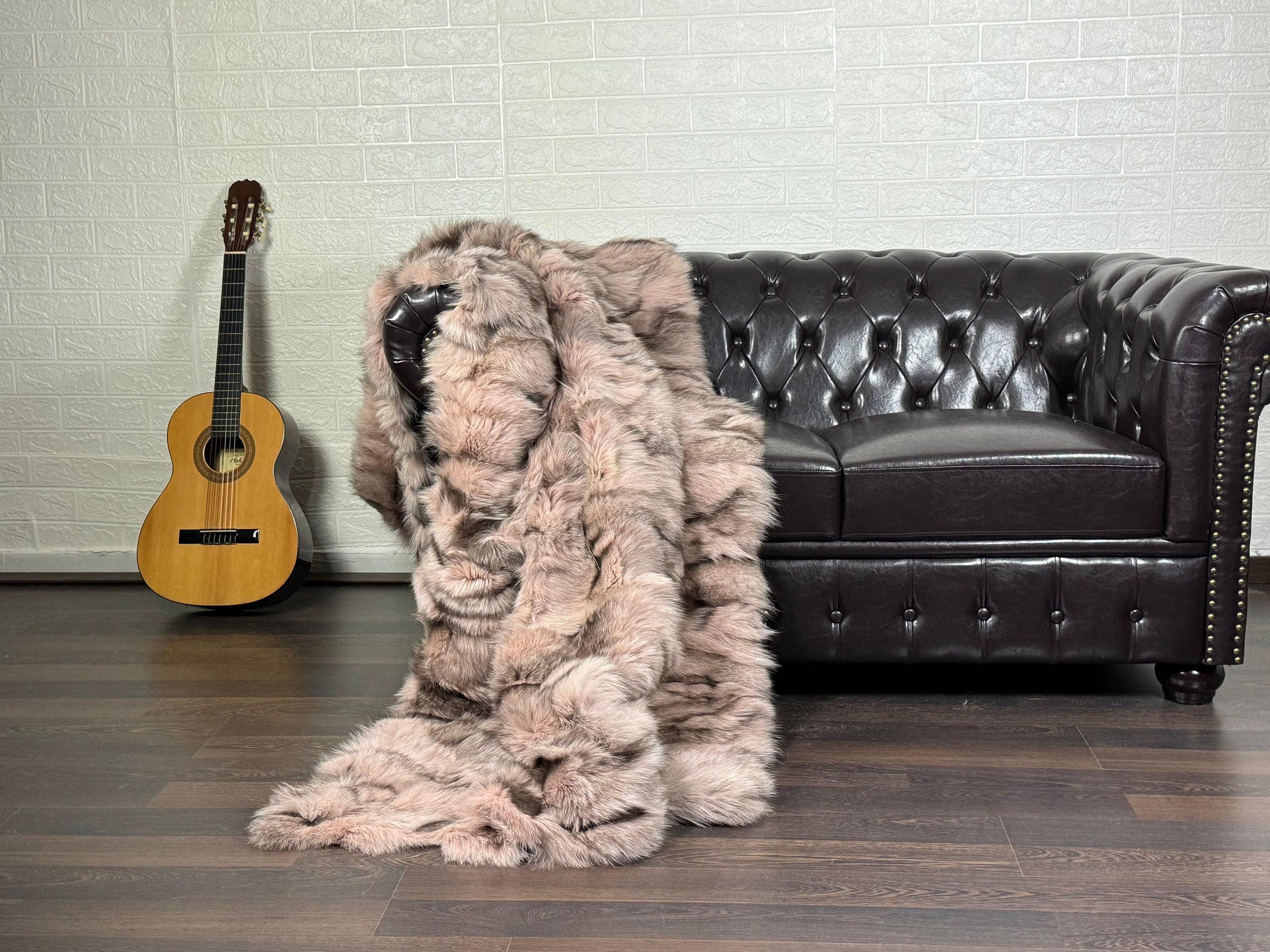 Lovingly crafted by hand, this real fox fur fur blanket throw was created with chilly days in mind.