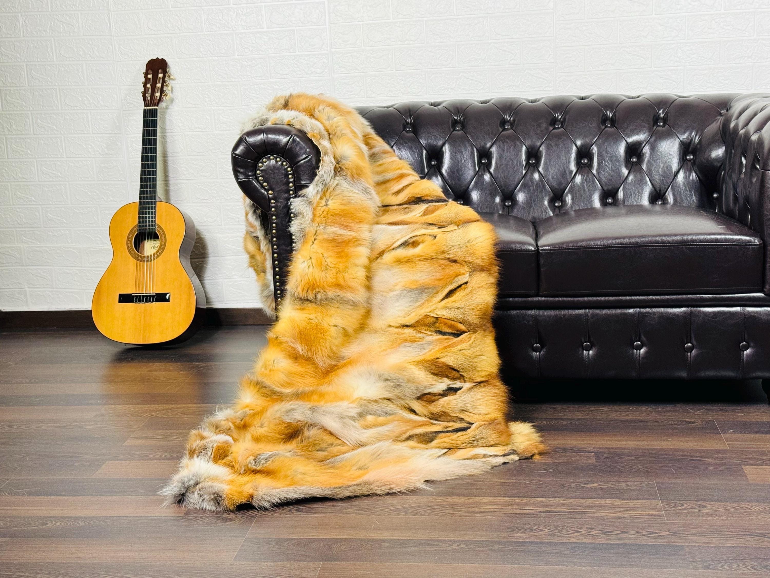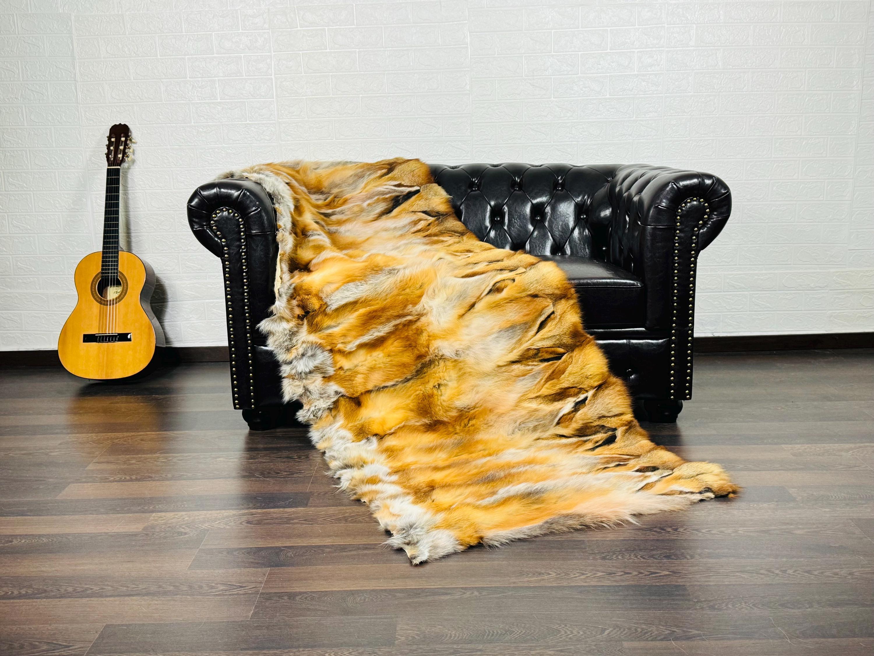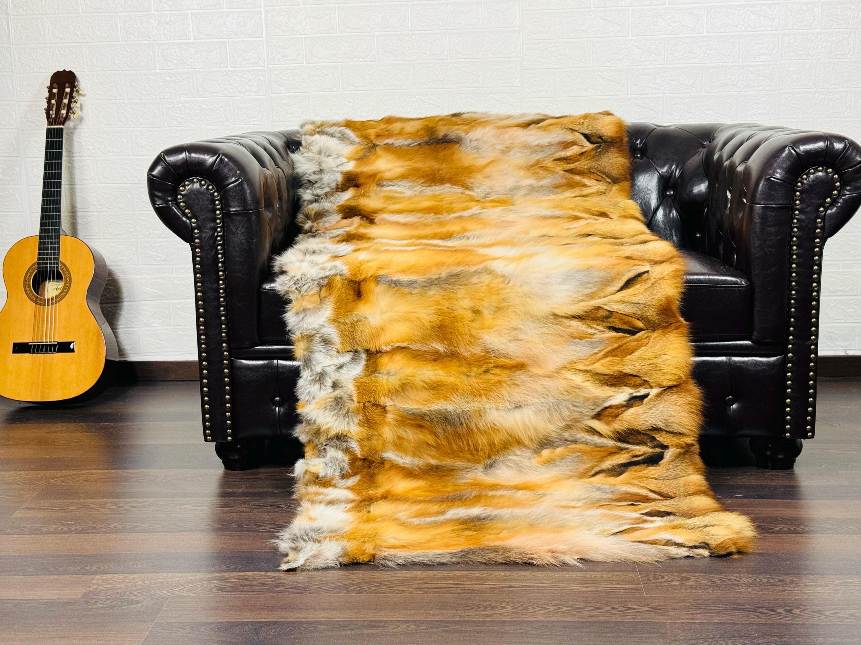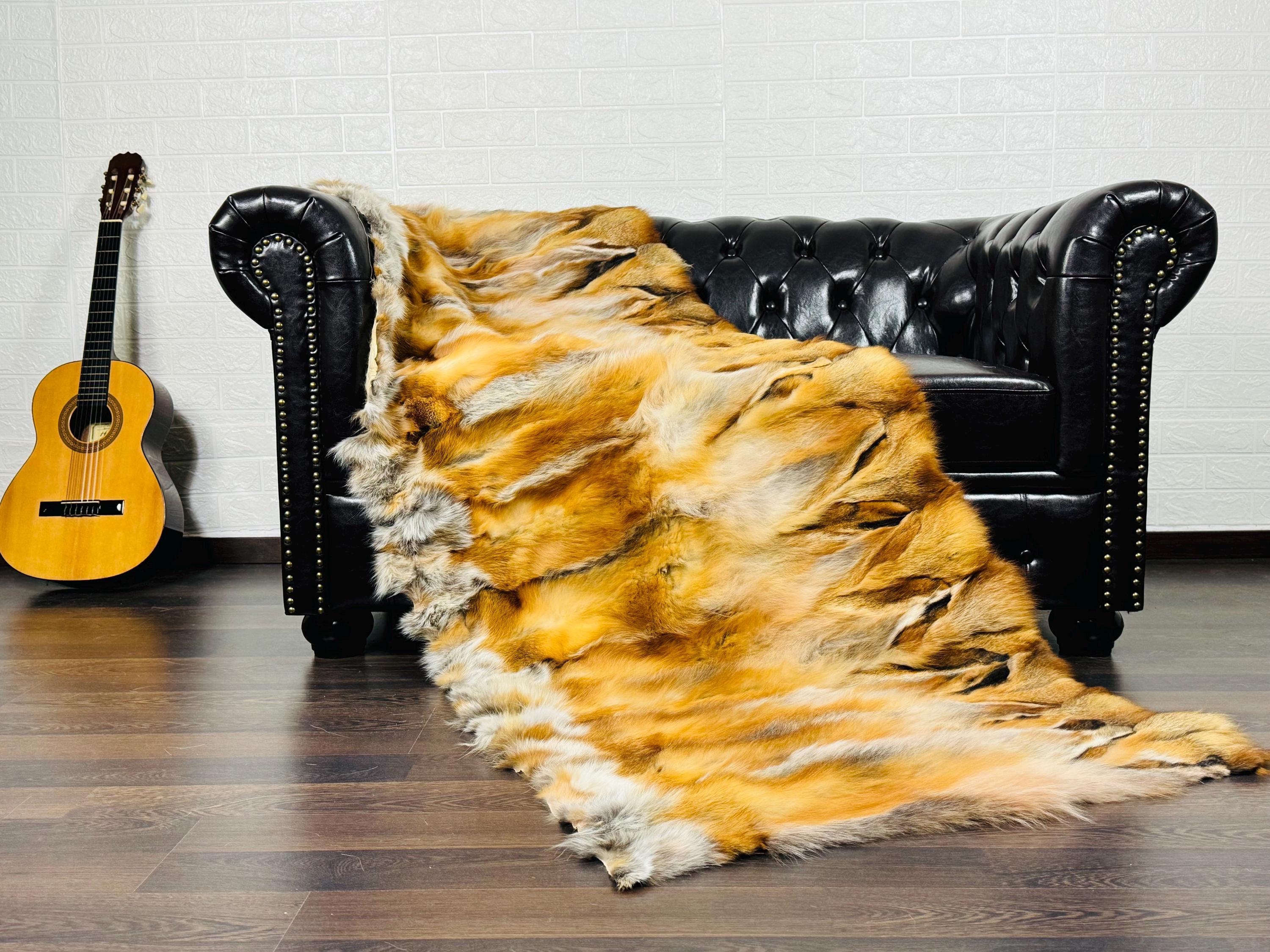 ● 1x Genuine Fox Fur Fur Blanket In Natural color Red Canadian Pattern Design