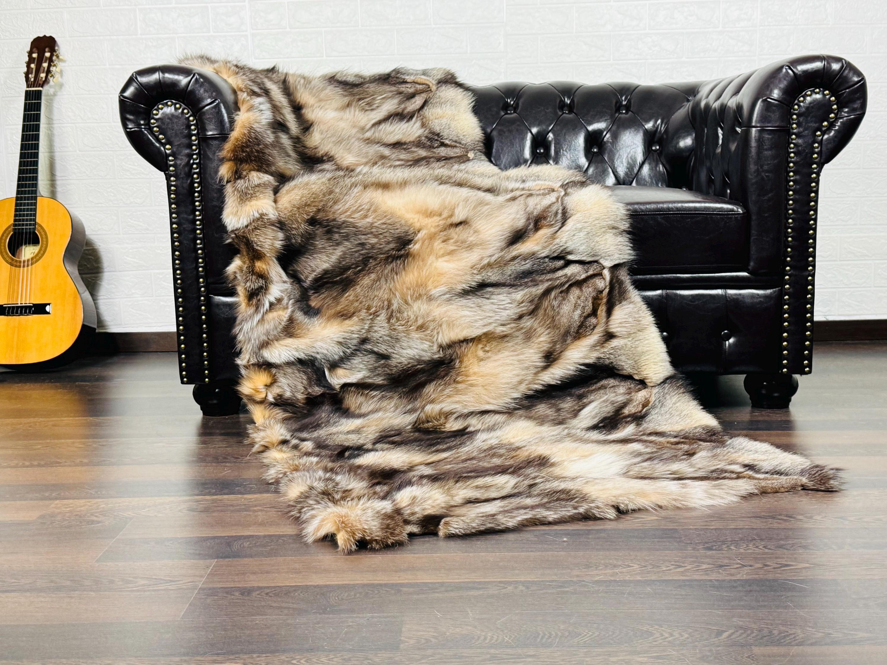 Lovingly crafted by hand, this silver real fox fur fur blanket throw was created with chilly days in mind.