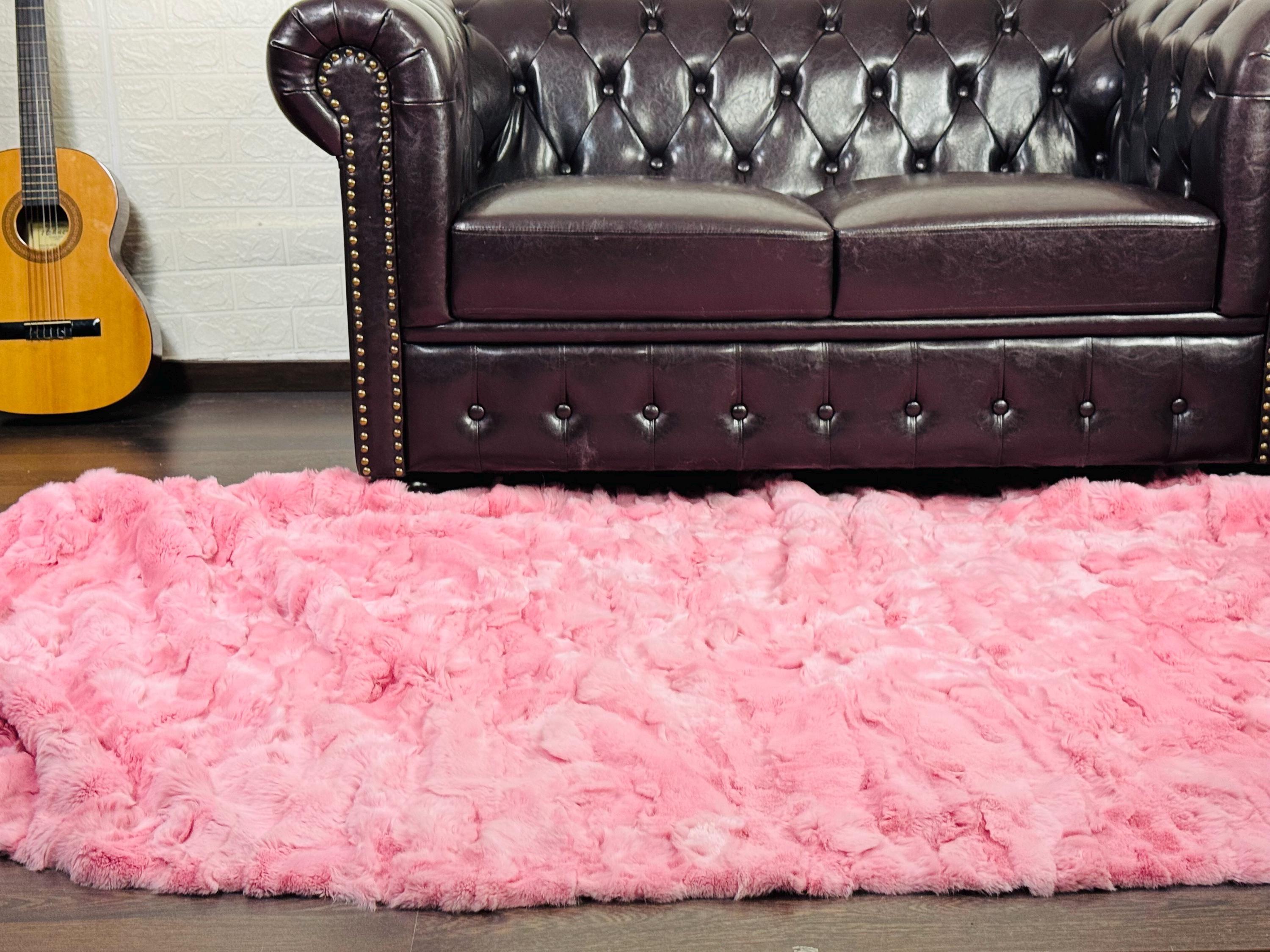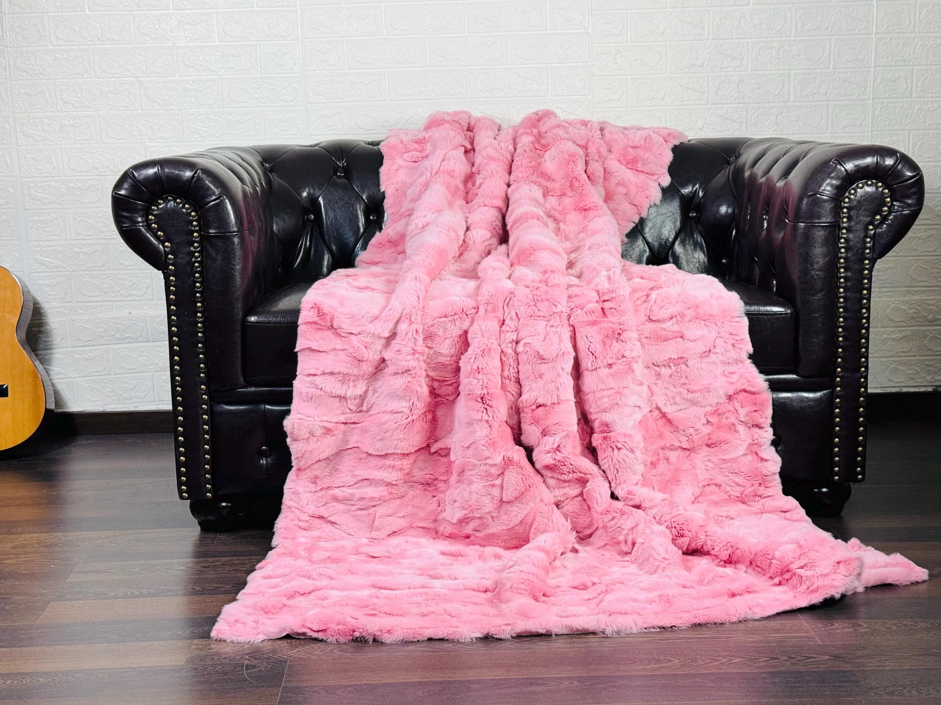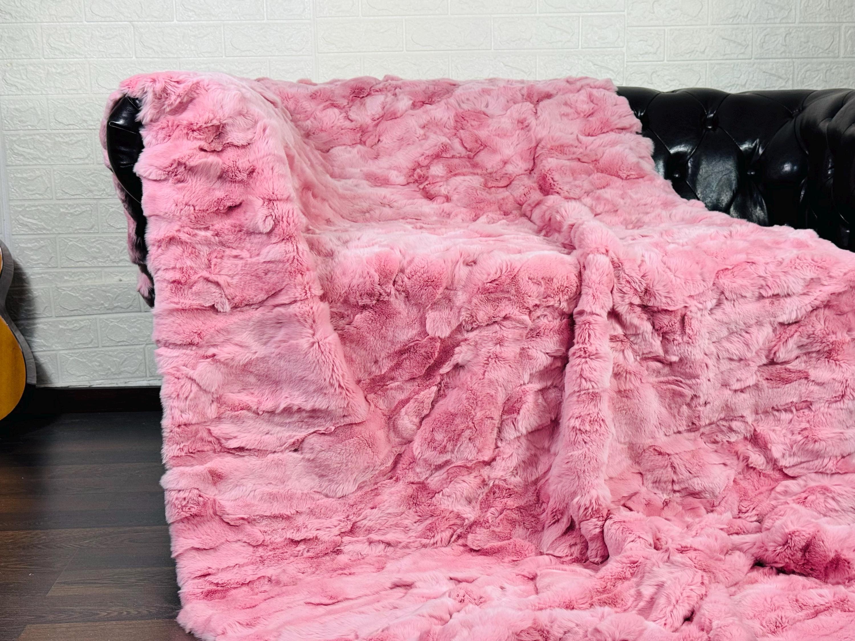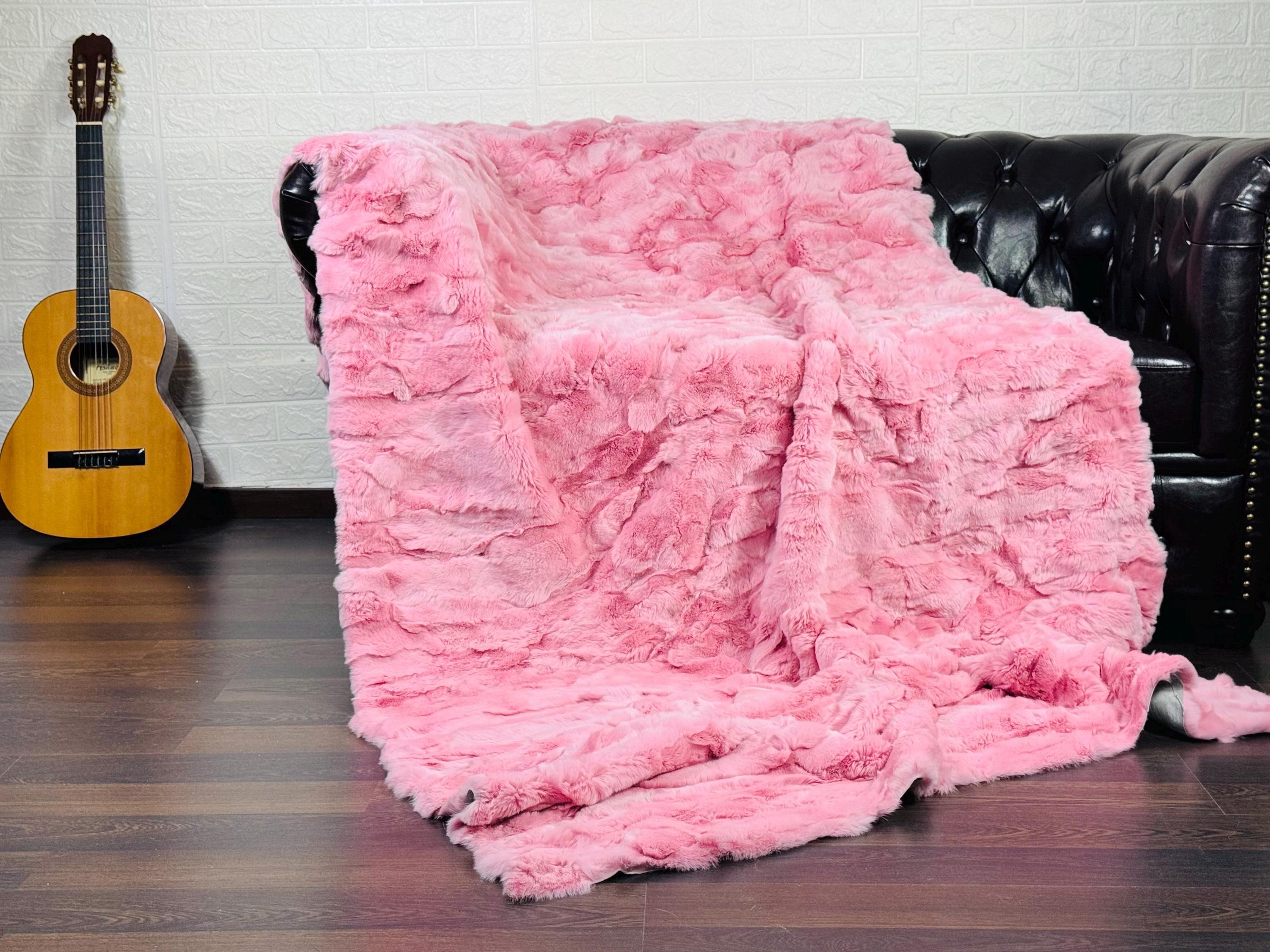 Handmade Real Pink Color Rex Rabbit Fur Blanket that can be used as a throw as well. Perfect for Bedspread or Sofa Cover.