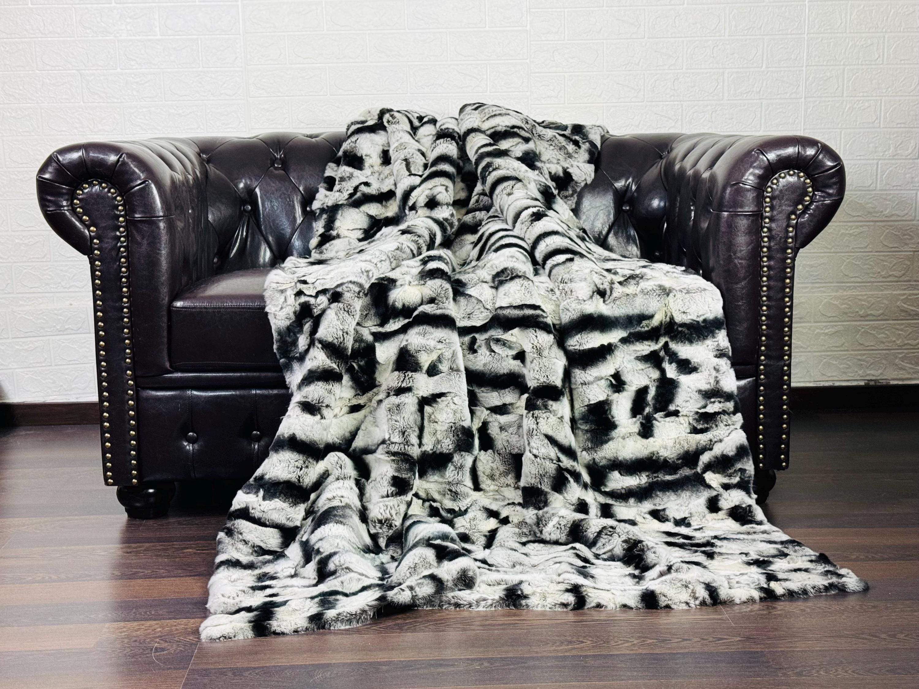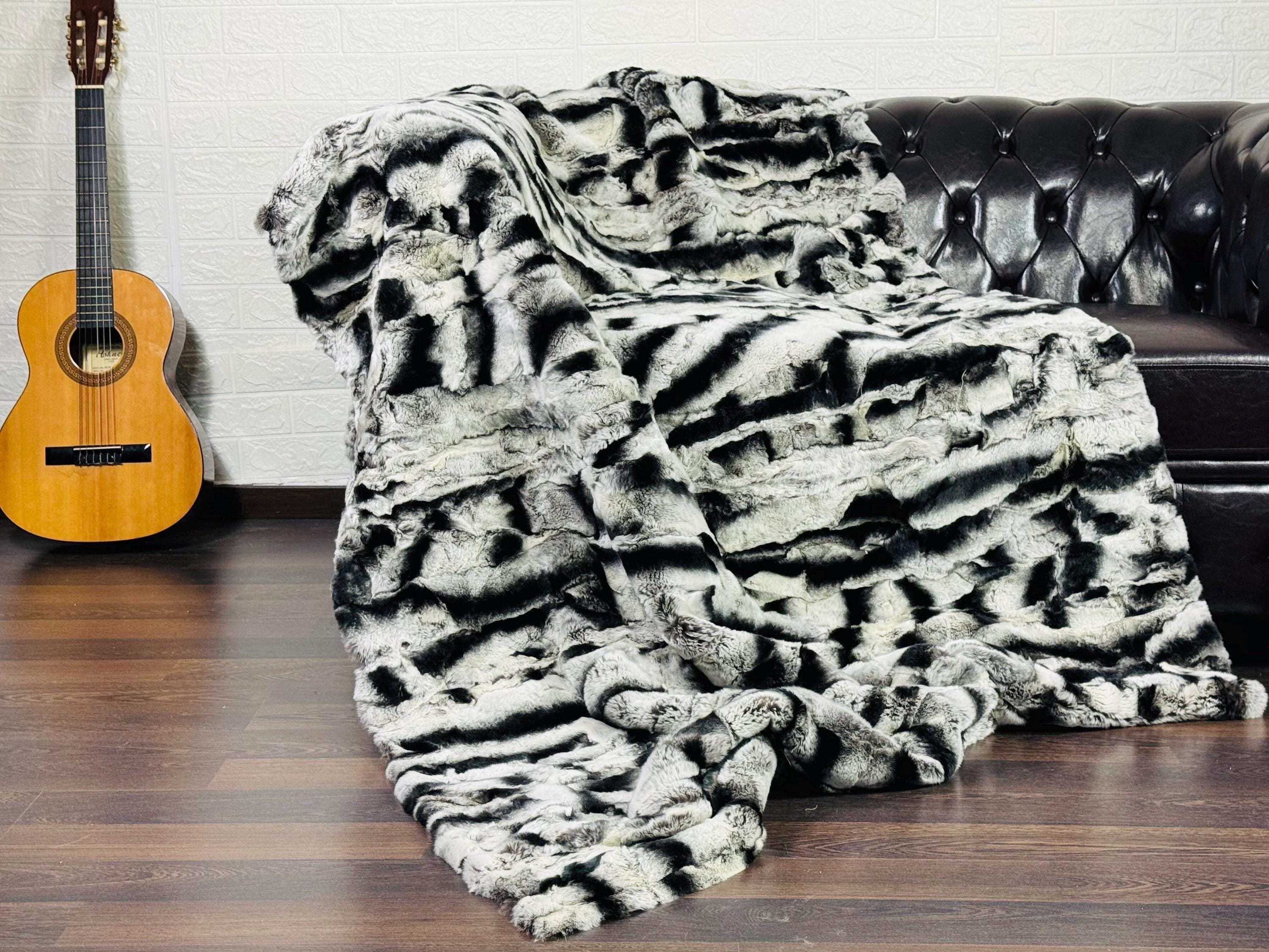 ● 1x Genuine Rex Rabbit Fur Fur Blanket In Chinchilla Print Color