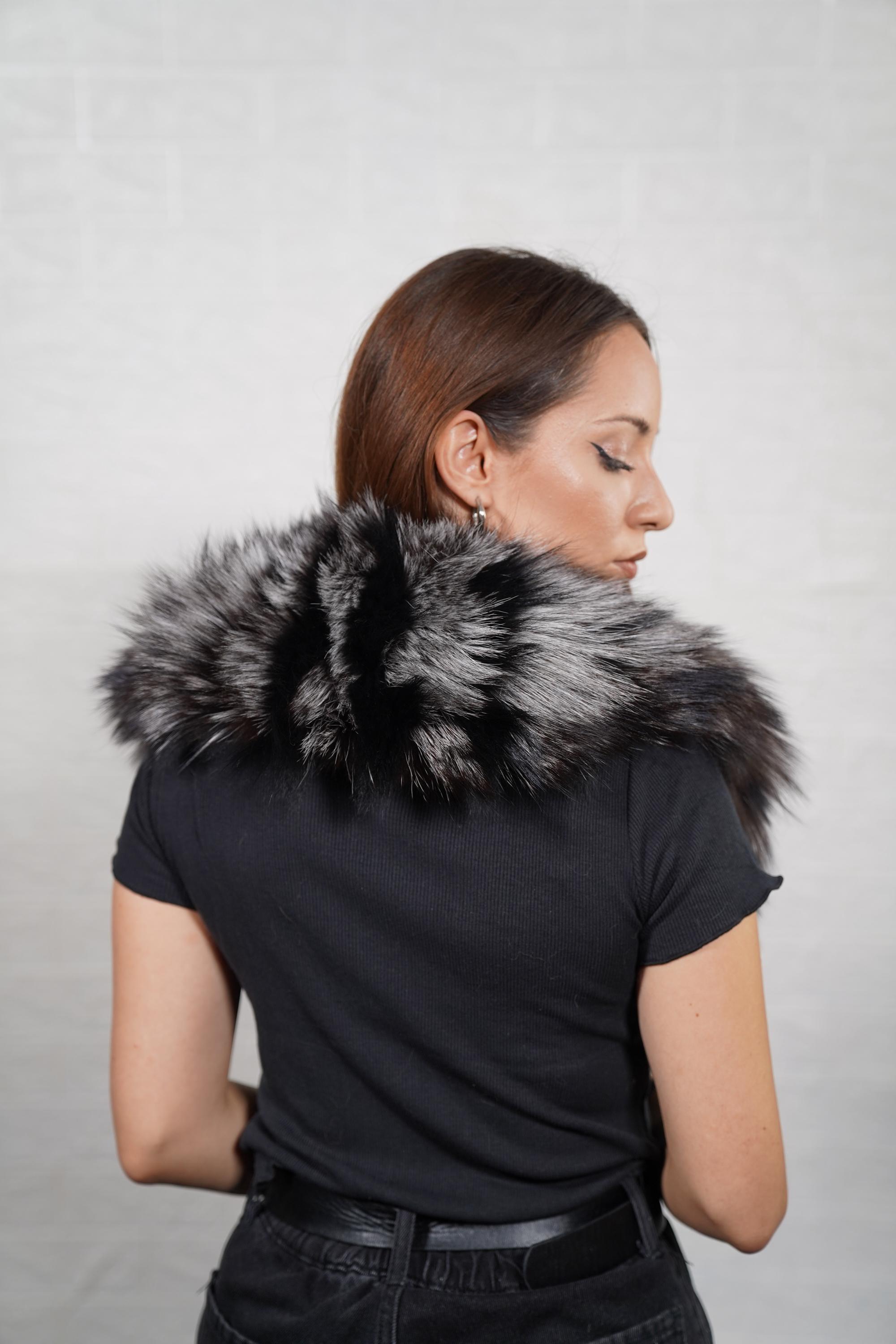 This silver black fox fur collar scarf is fluffy, detachable, and versatile. Wear it as a neckwarmer, wrap, or stole to stay warm and chic this winter. A perfect gift for her!