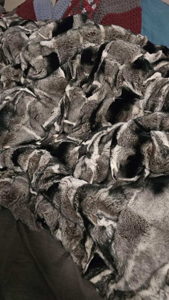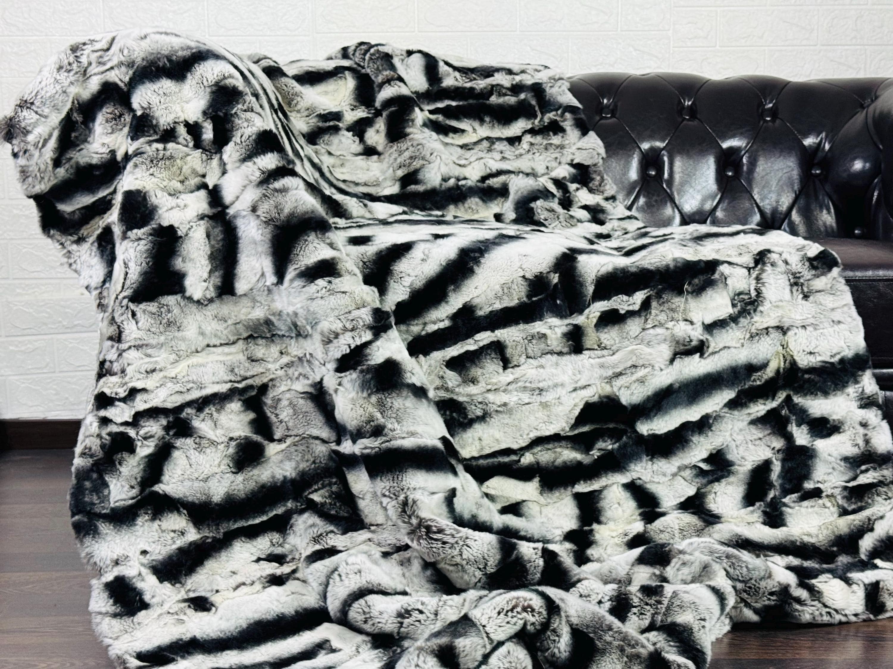 Handmade Real Chinchilla Print Color Rex Rabbit Fur Blanket that can be used as a throw as well. Perfect for Bedspread or Sofa Cover.