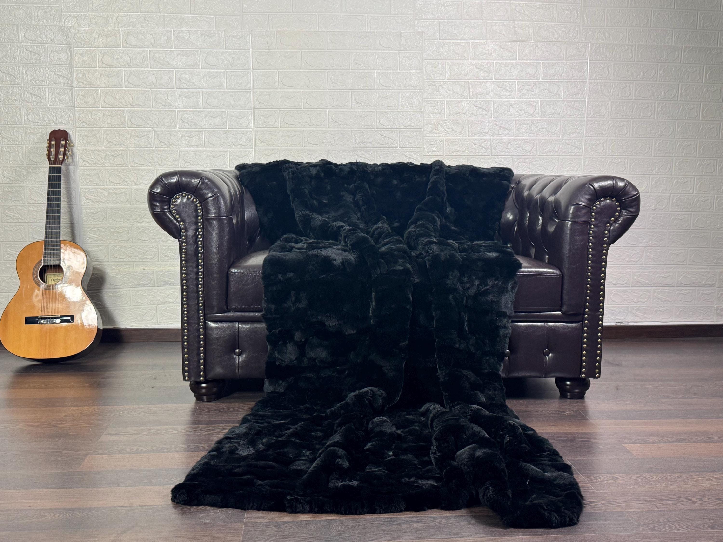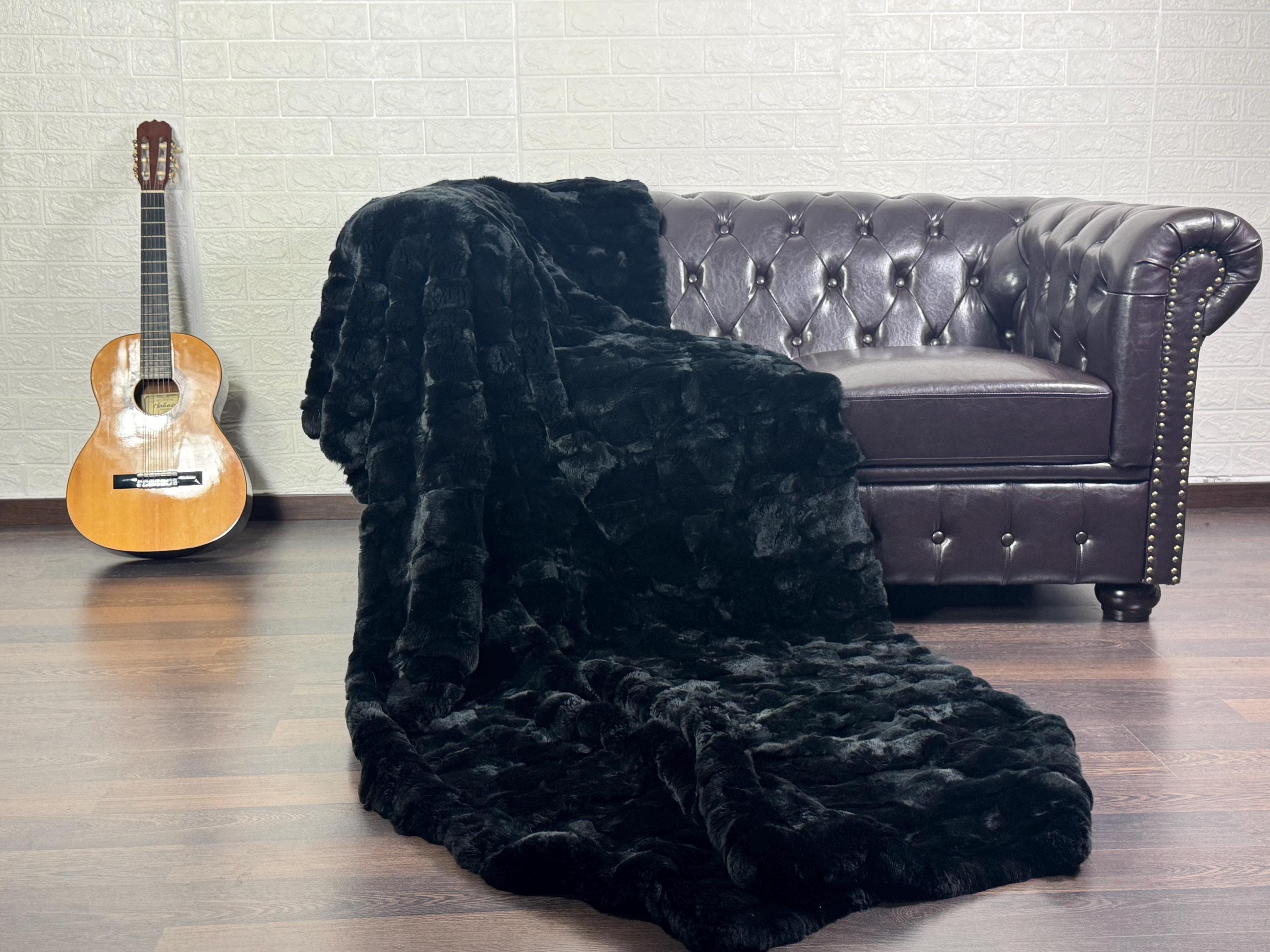 ● 1x Genuine Rex Rabbit Fur Fur Blanket In Black