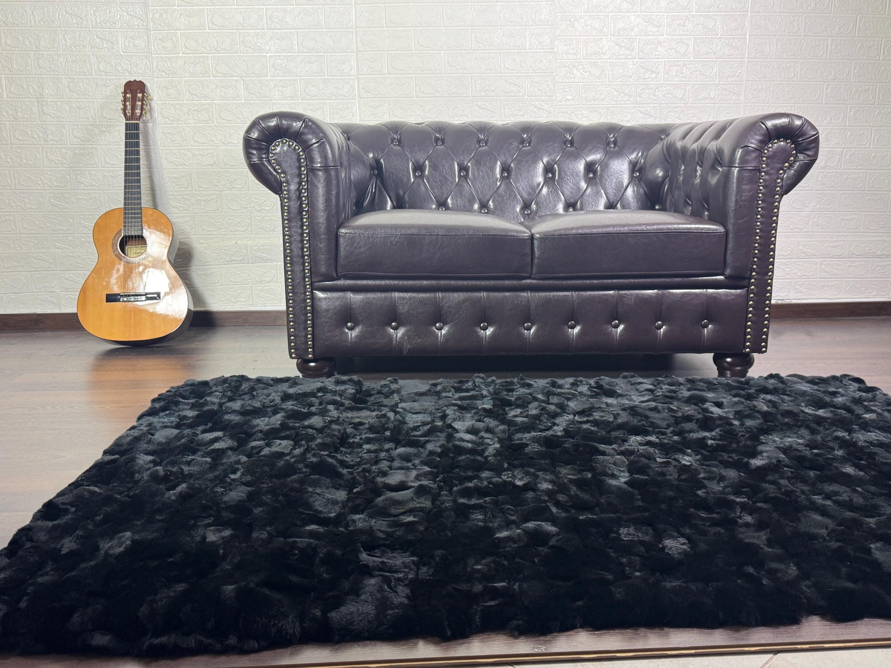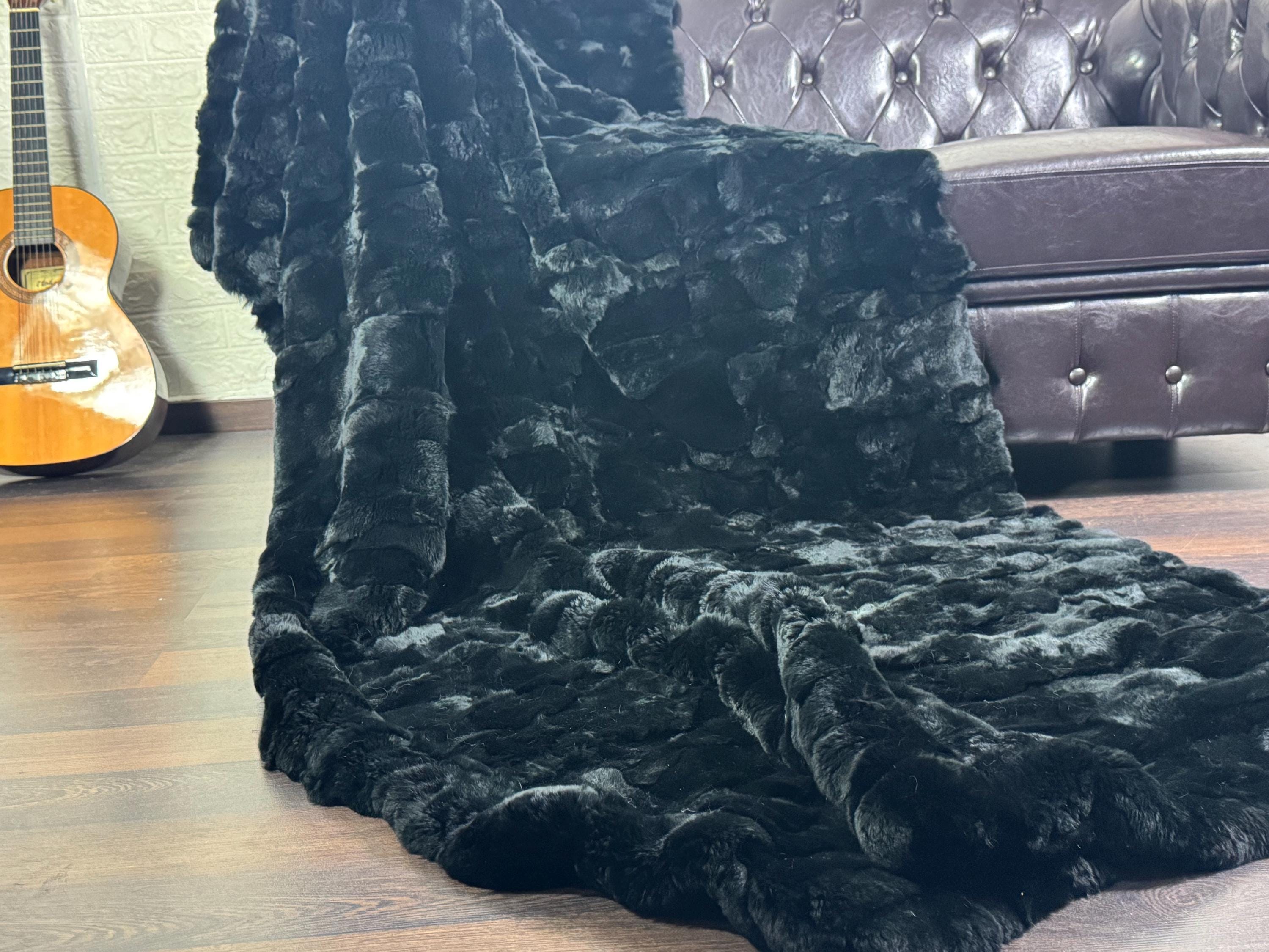 Handmade Real Black Color Rex Rabbit Fur Blanket that can be used as a throw as well. Perfect for Bedspread or Sofa Cover.