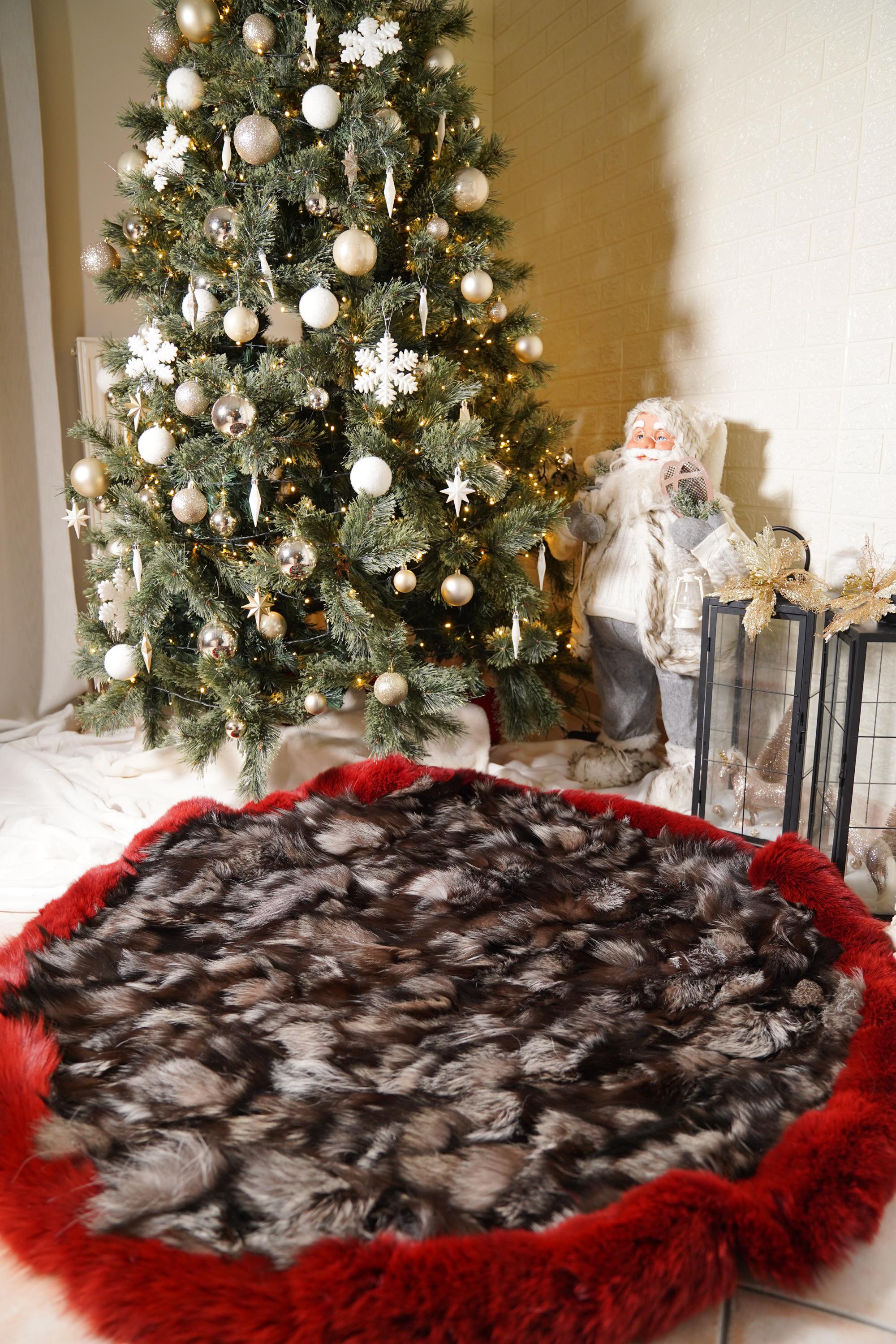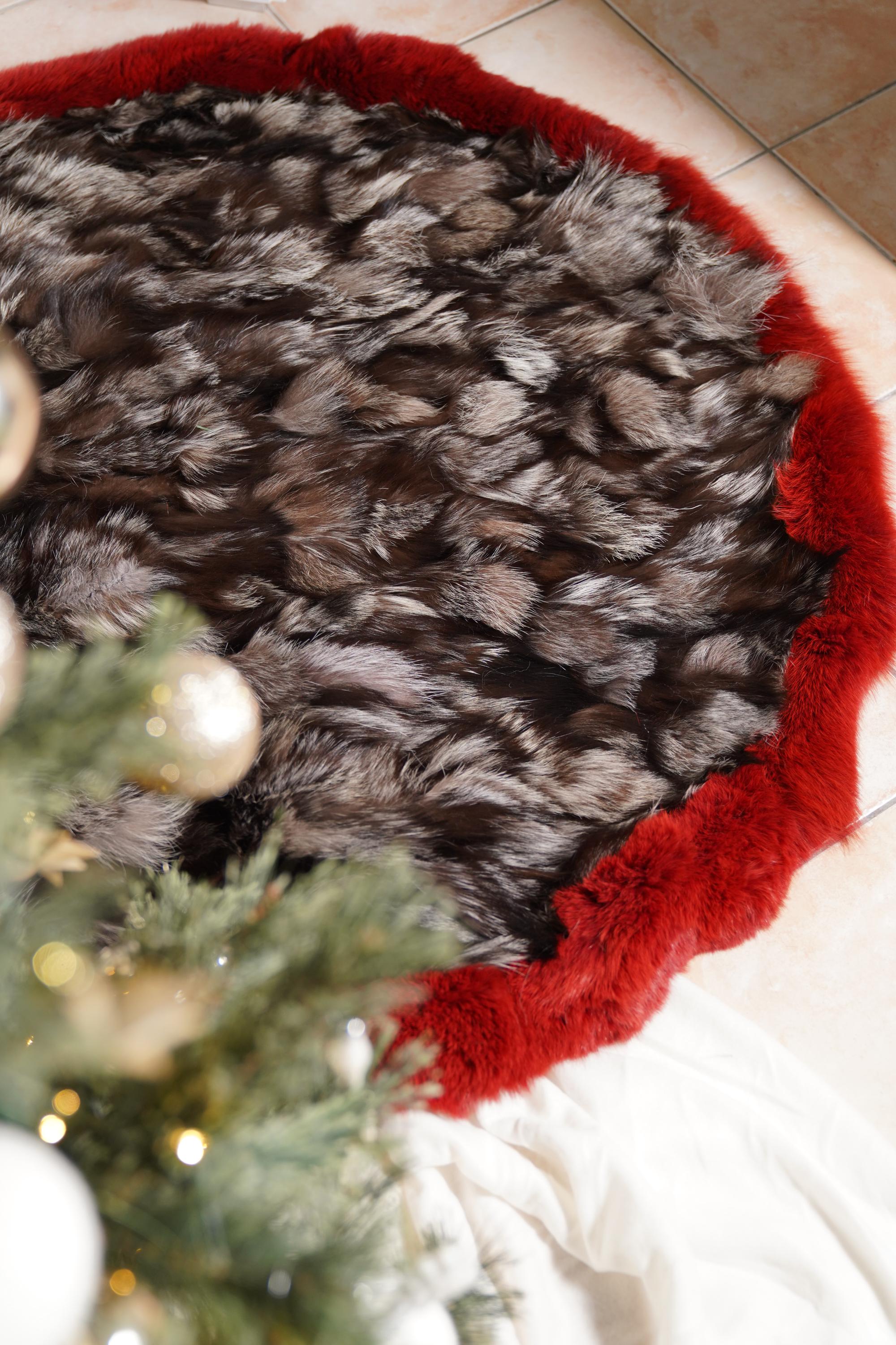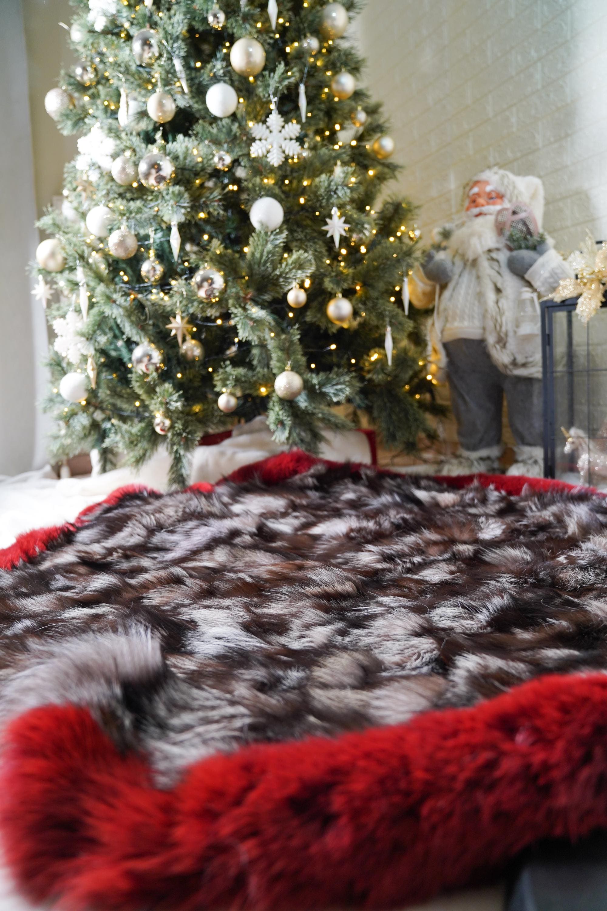 A round silver fox fur rug with striking red detailing adds the perfect blend of luxury and Christmas charm. ✨❄️
