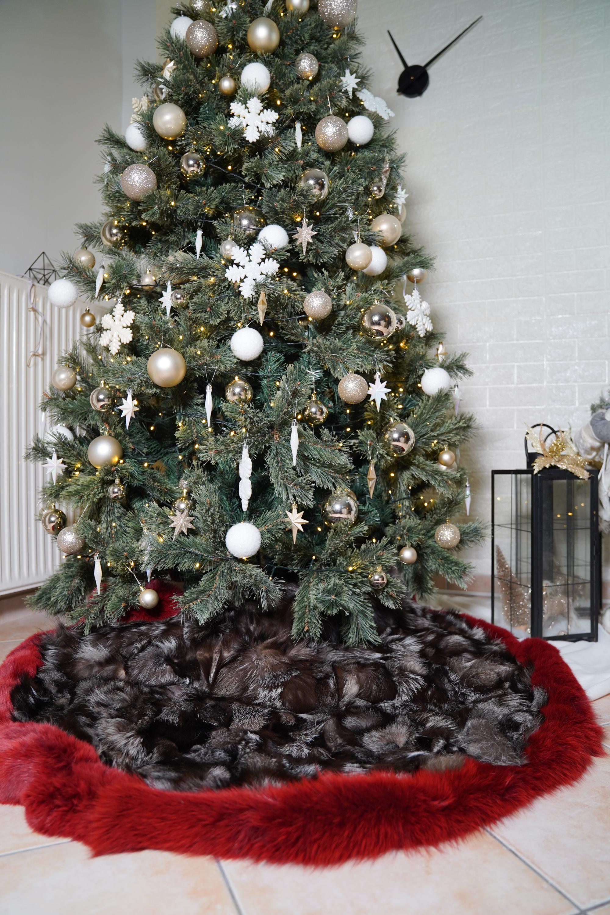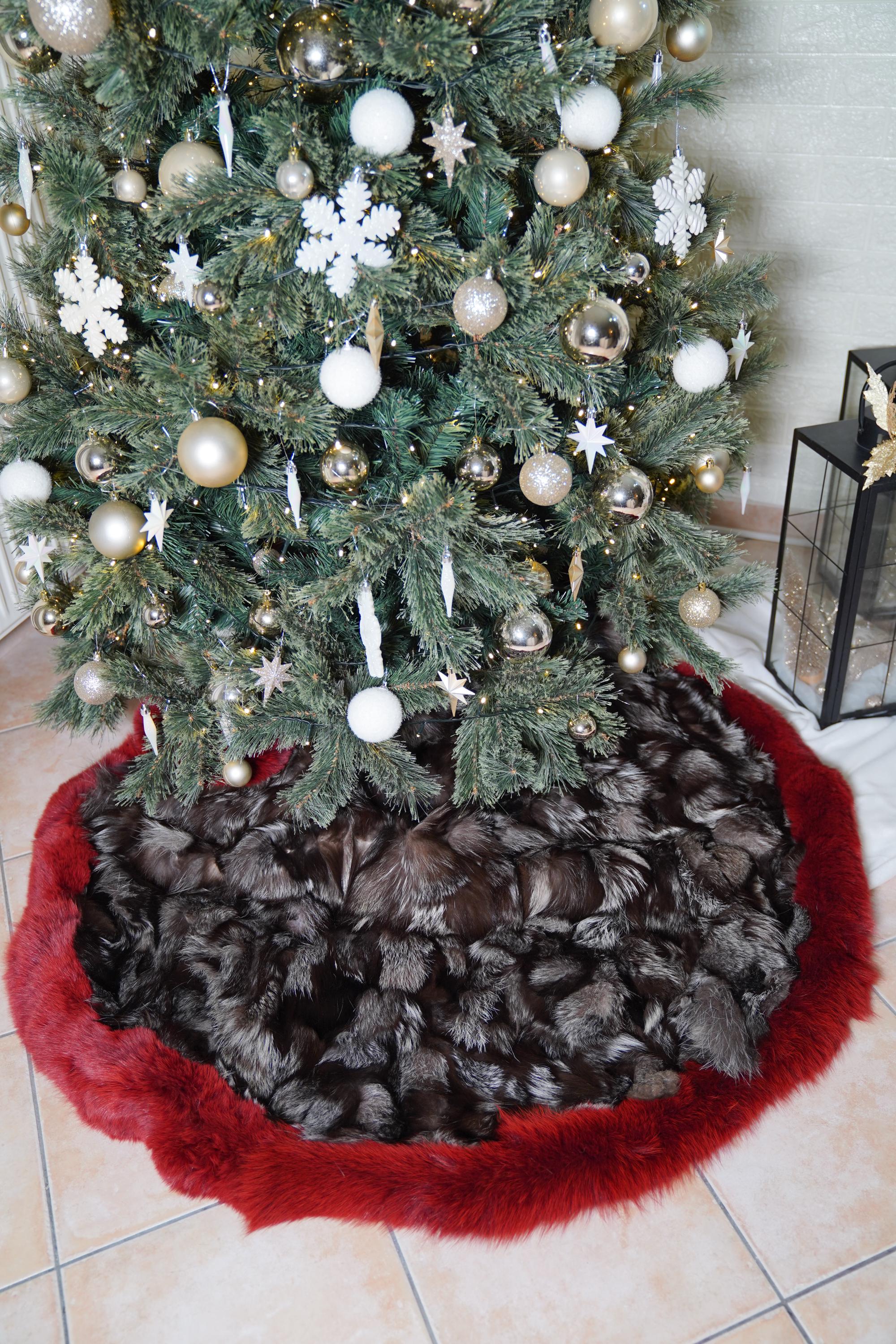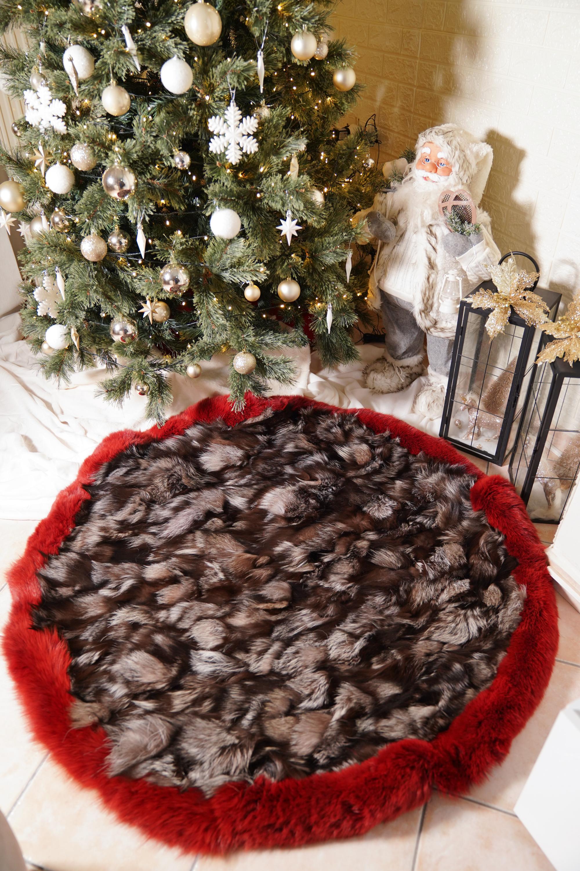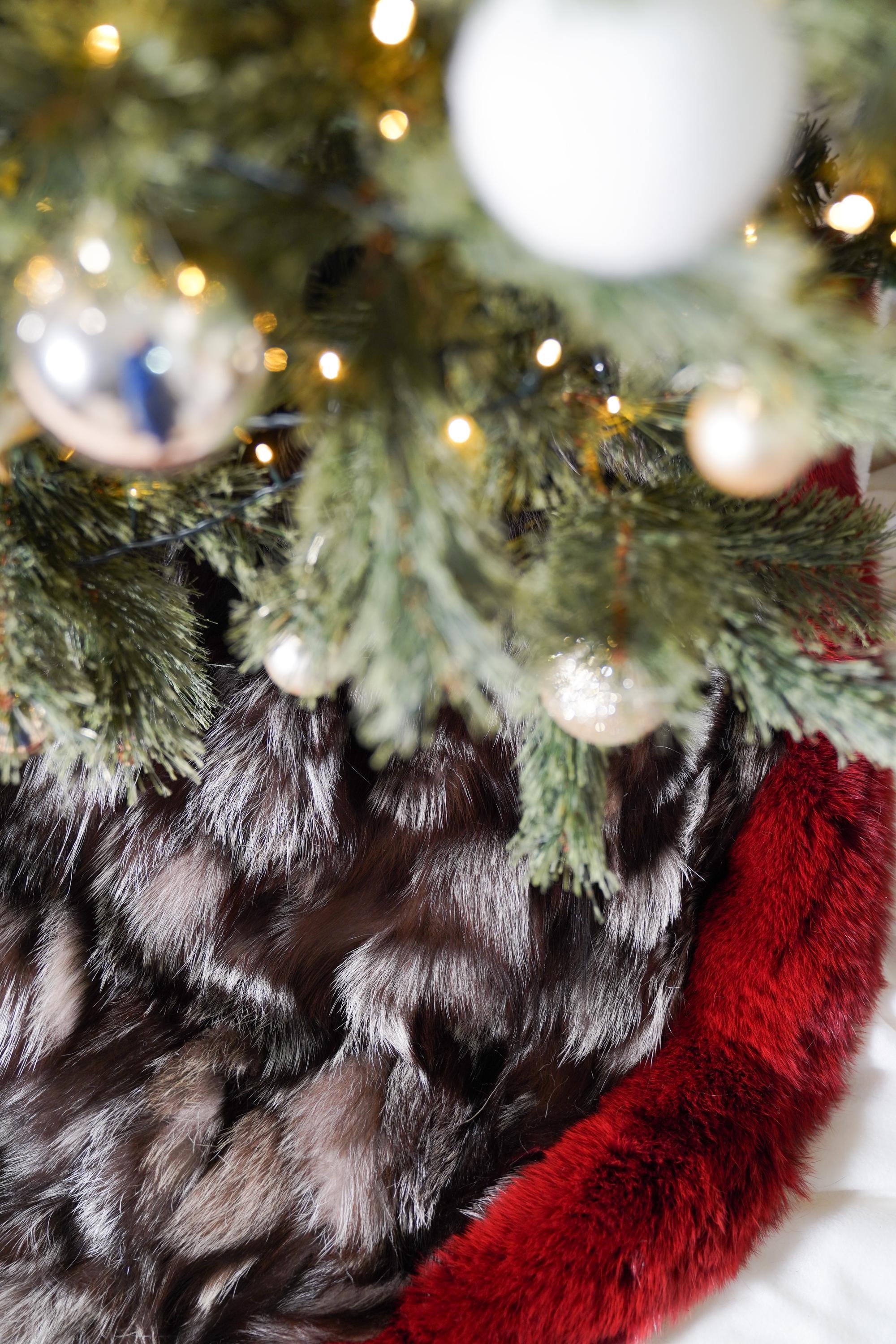 A round silver fox fur rug with striking red detailing adds the perfect blend of luxury and Christmas charm. ✨❄️