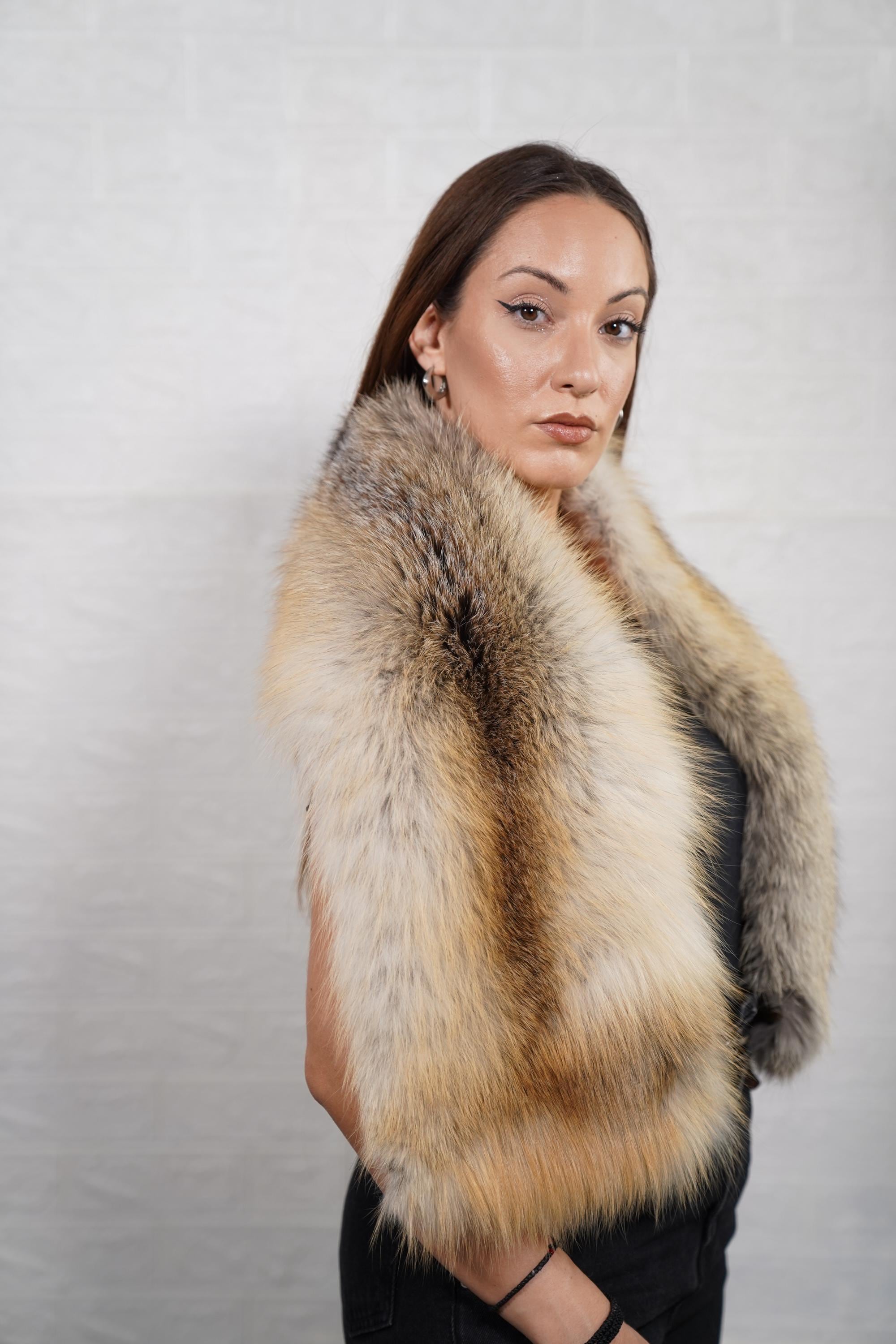 Fox Fur Collar Scarf Shawl Natural GoldenFull Skin Pelts of the highest Quality