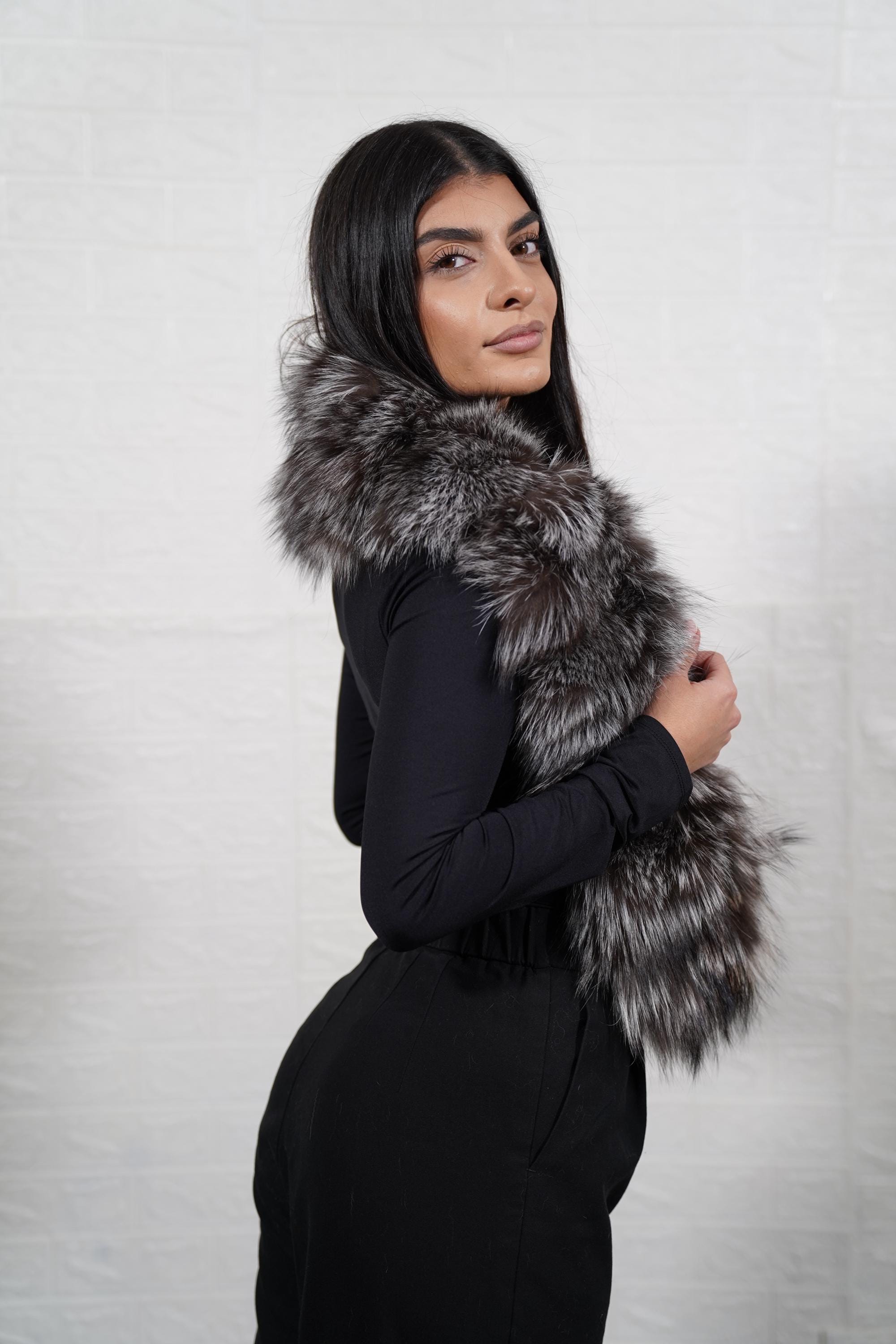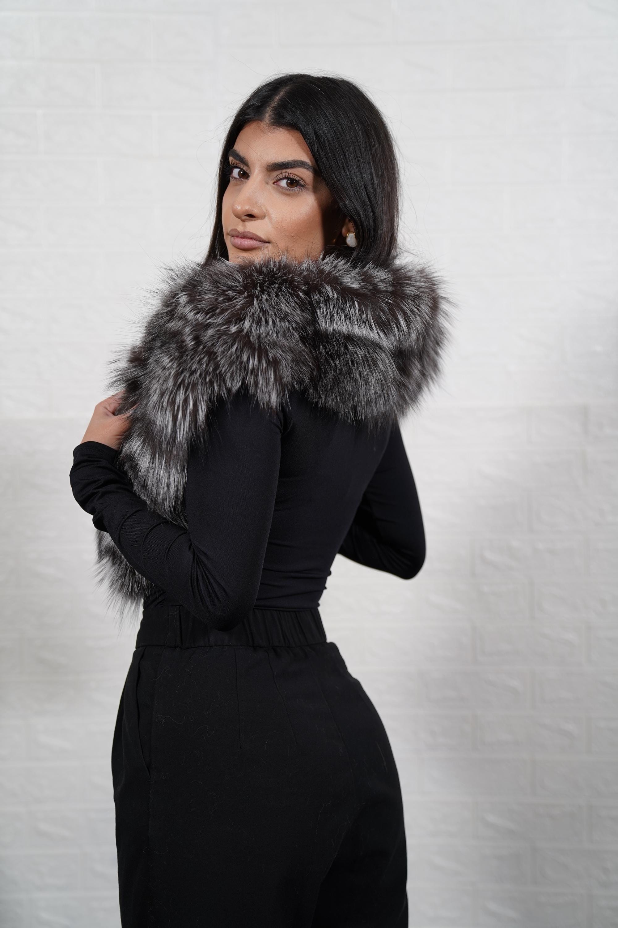 Made with Silver natural fox fur, this detachable and fluffy collar scarf is versatile and stylish. It can be worn as a neckwarmer, wrap, or stole—keeping you both cozy and fashionable all winter long. The perfect gift for her!