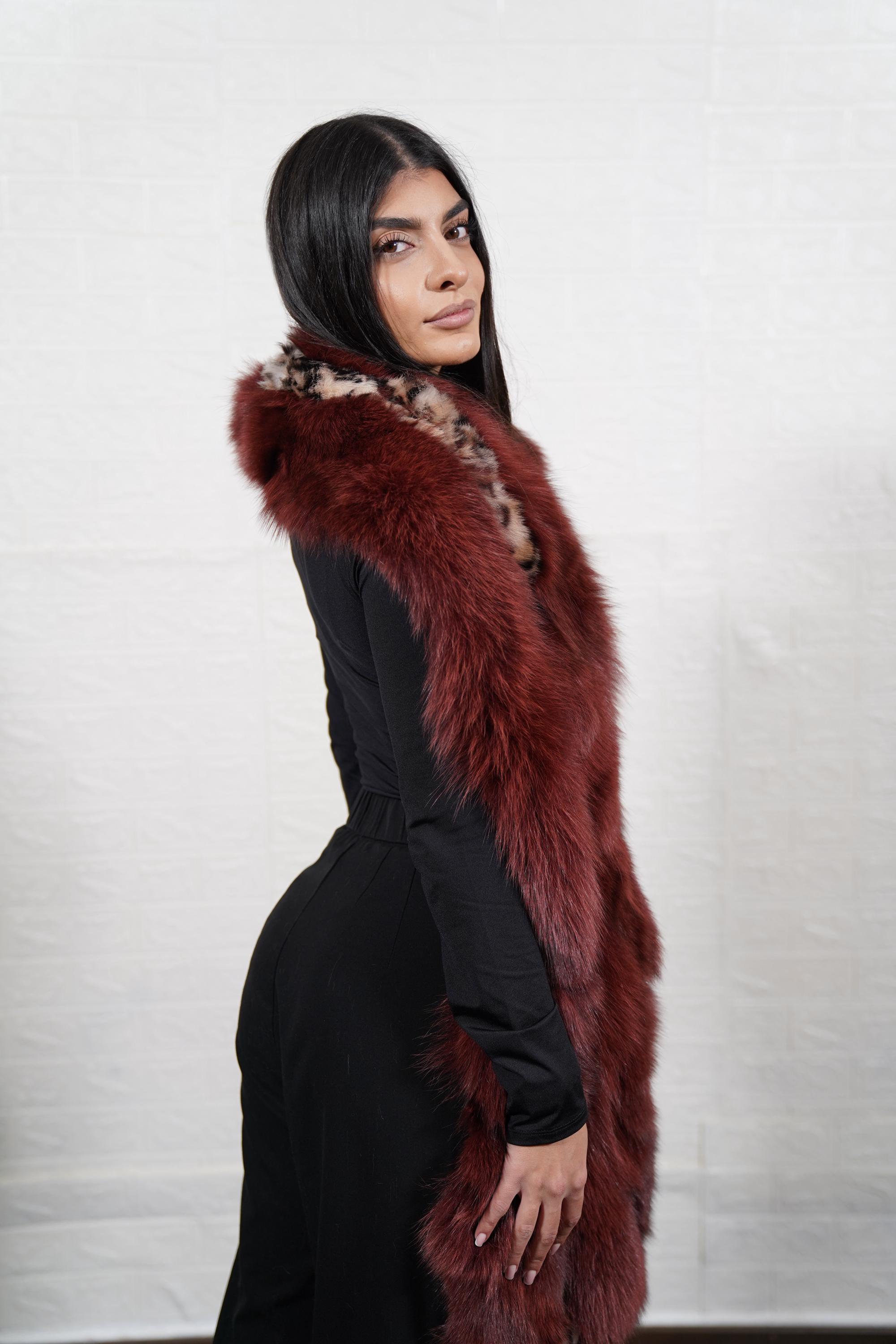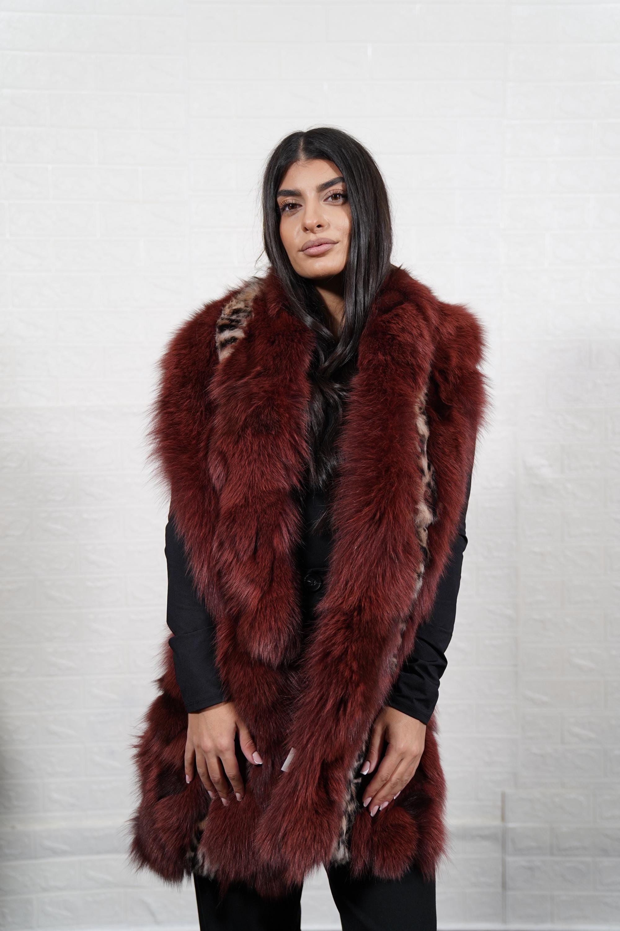 ●Color : Fox Fur Red with leopard line in the middle rabbit fur