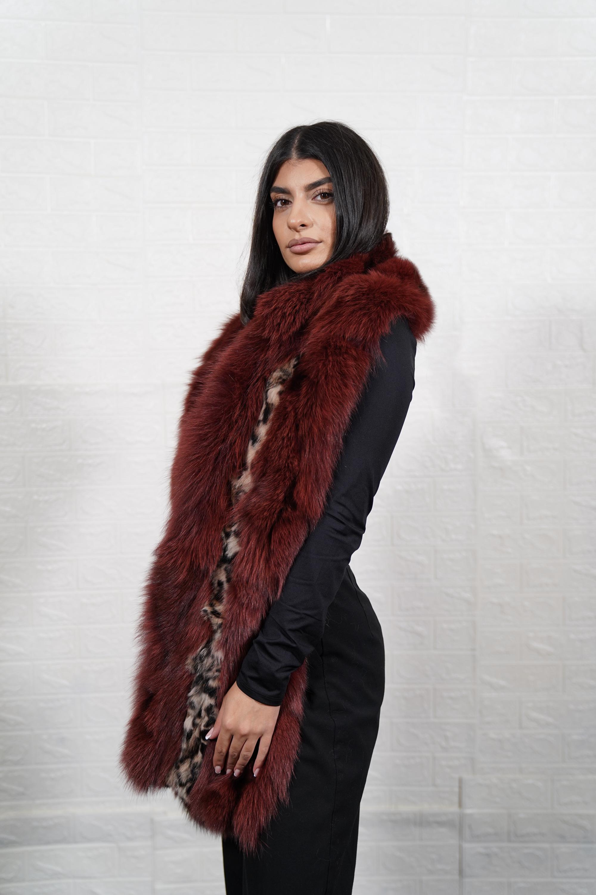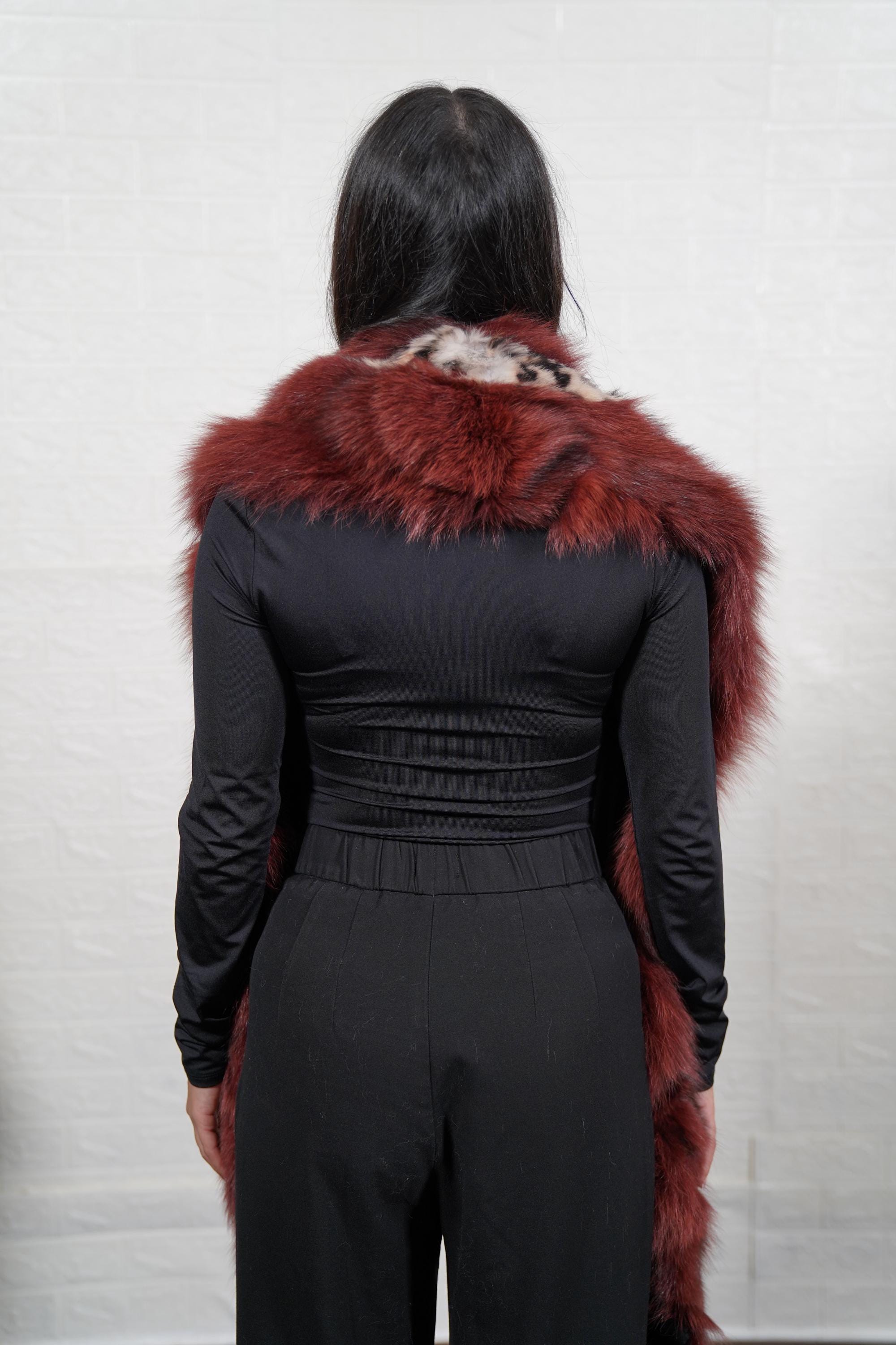 Made with Red fox fur with leopard rabbit line in middle , this detachable and fluffy collar scarf is versatile and stylish. It can be worn as a neckwarmer, wrap, or stole—keeping you both cozy and fashionable all winter long. The perfect gift for her!